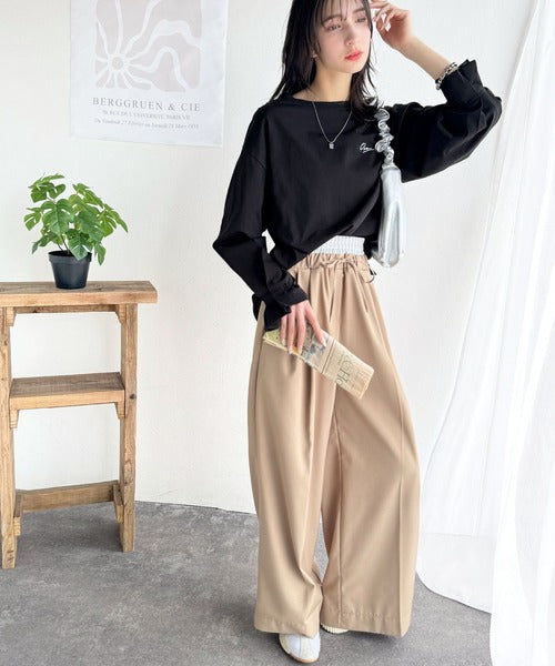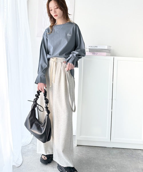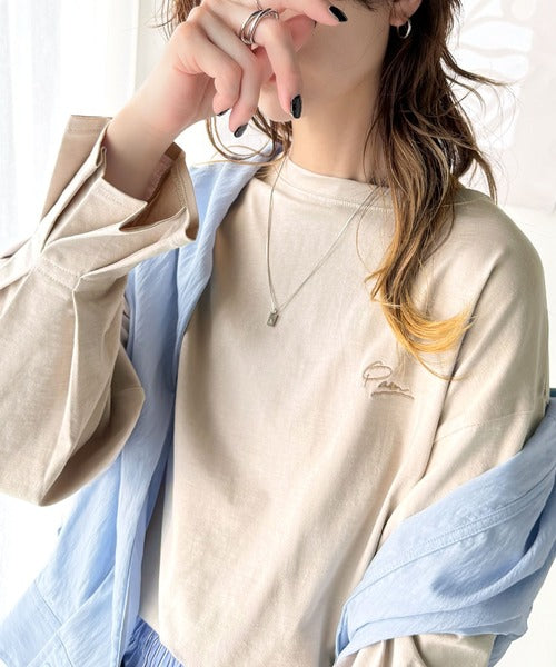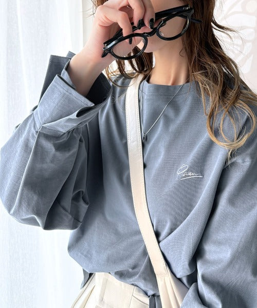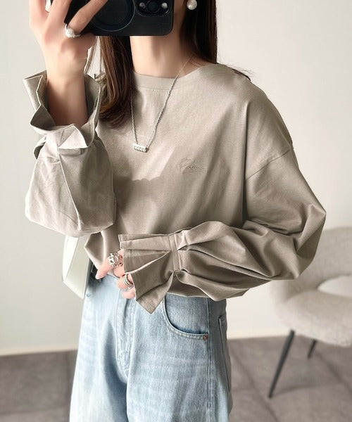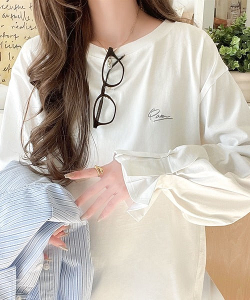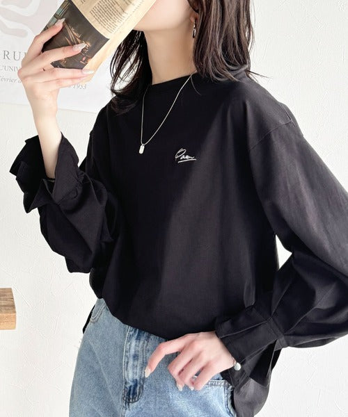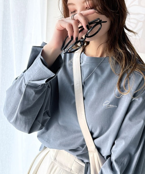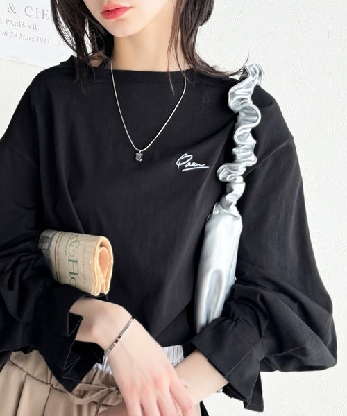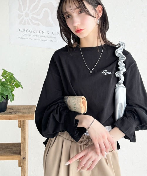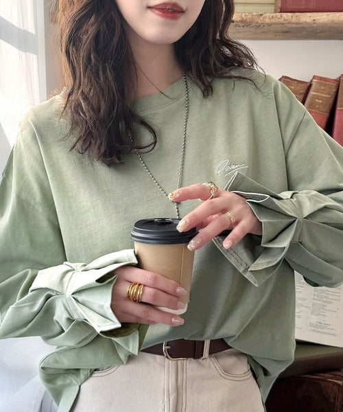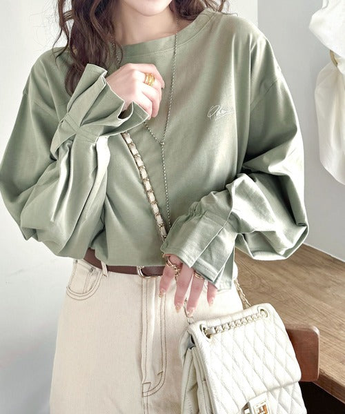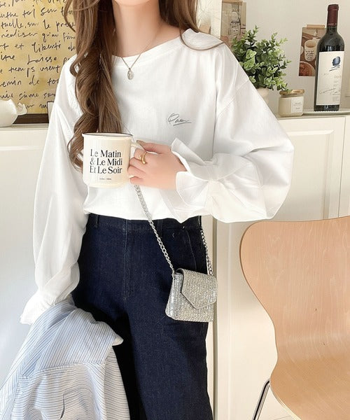 愛らしさを纏った。綿100%英字胸刺繍キャンディースリーブシルケットカットソー(長袖) ce1260394