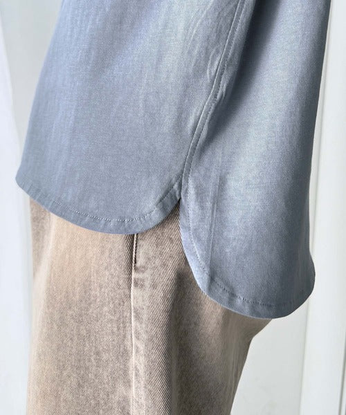 タックインアウトしやすいカーブのついた裾デザインは、スカートやパンツとも相性抜群で、