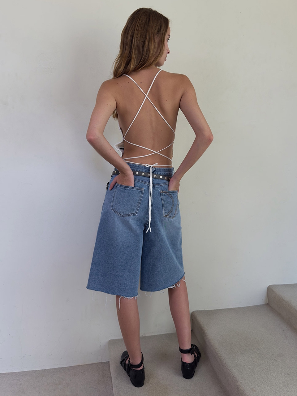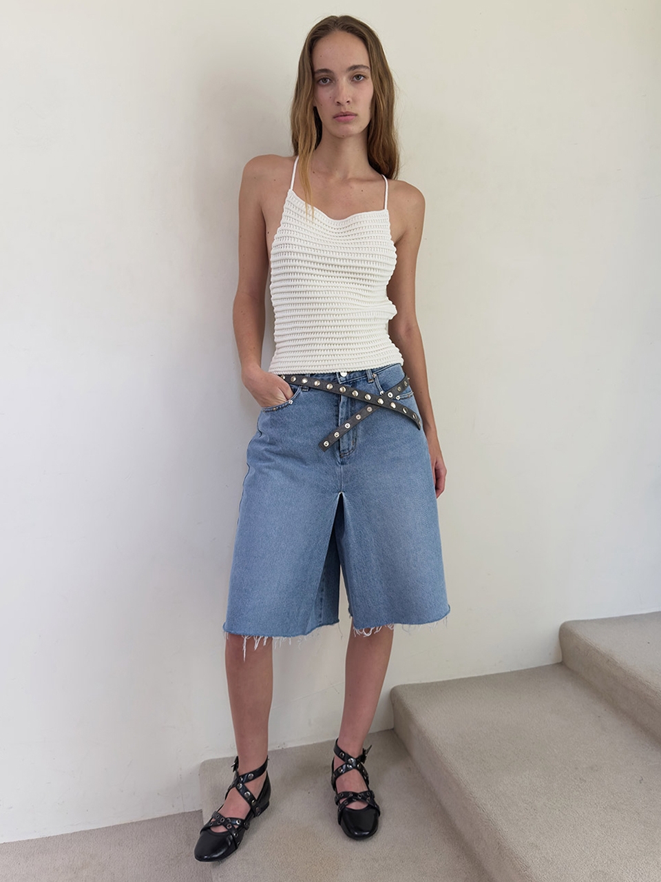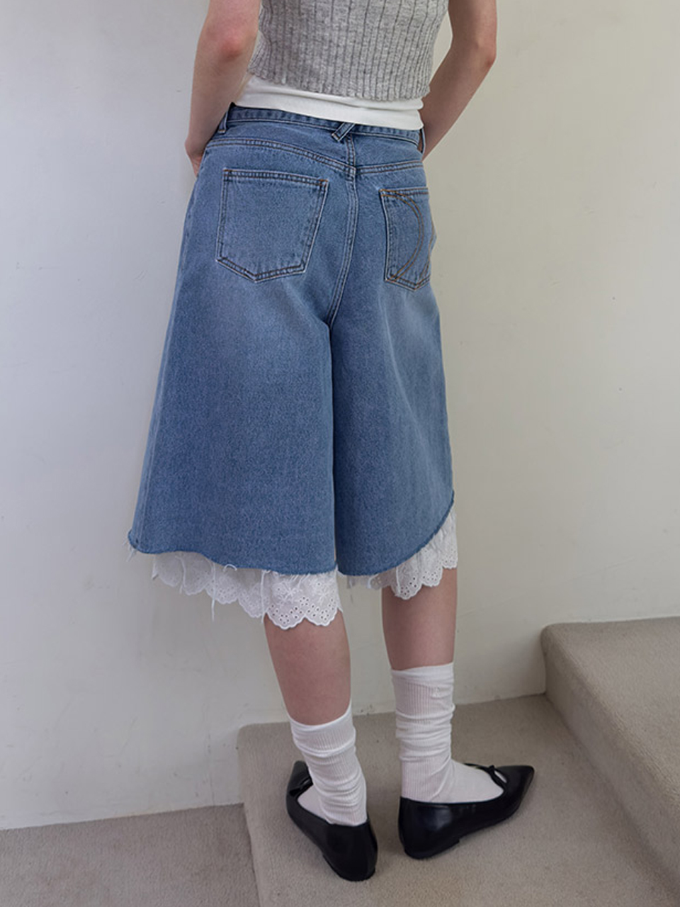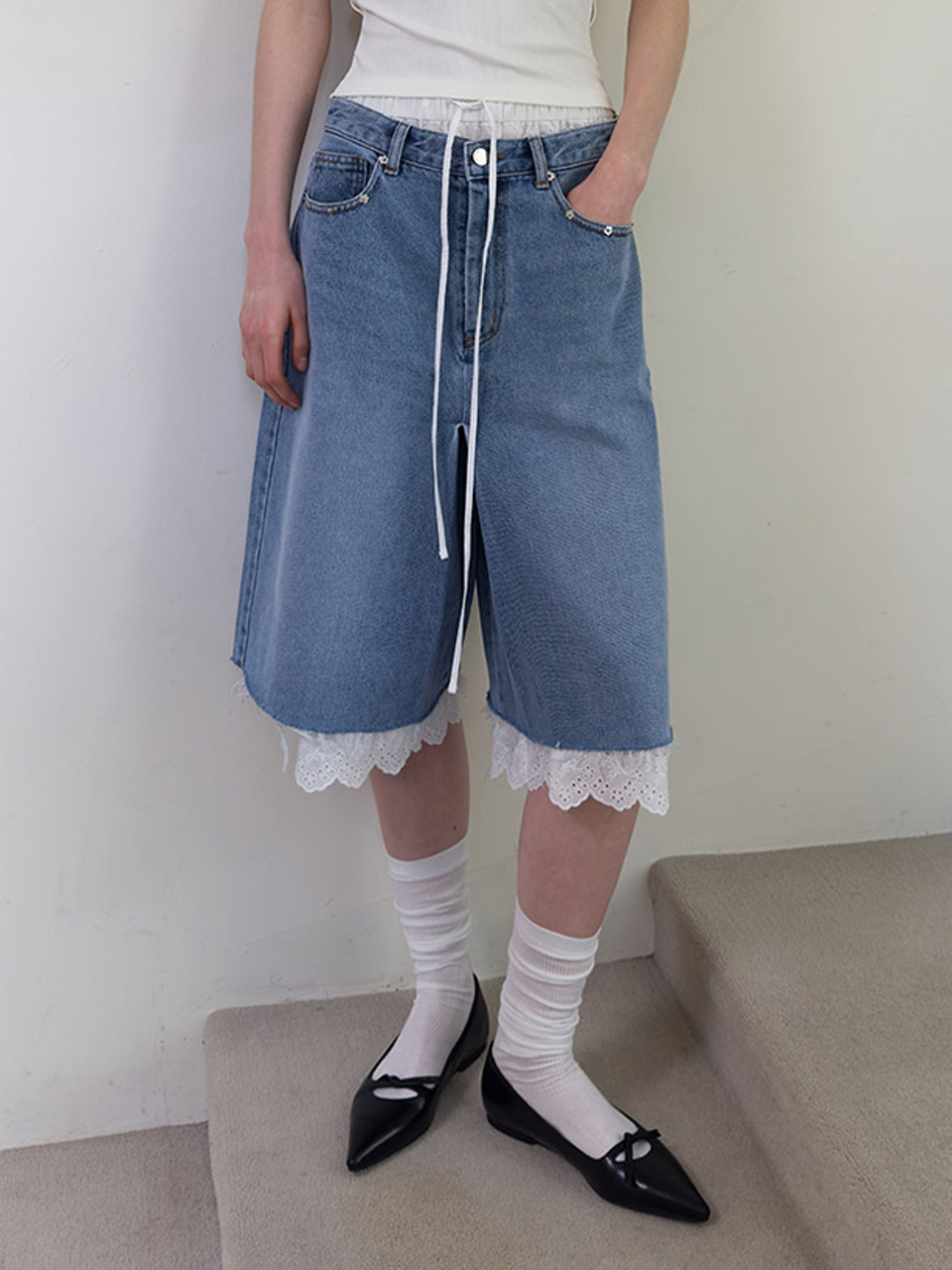 DENIM WRAP SKIRT SHORTS (blue)
