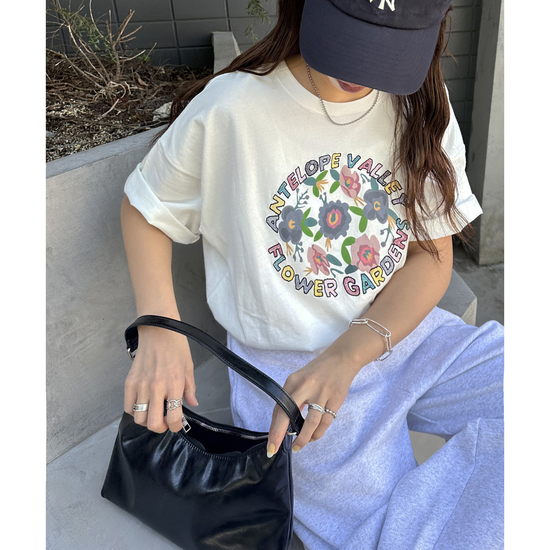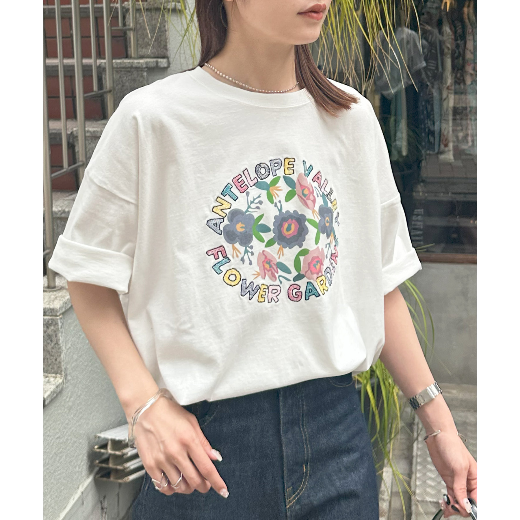 一枚で着映えするフラワーモチーフTシャツ