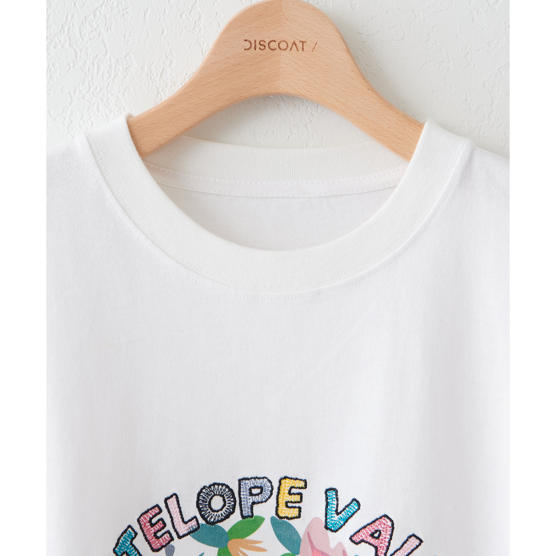 【ユニセックス】フラワーモチーフ刺繍ロゴTシャツ