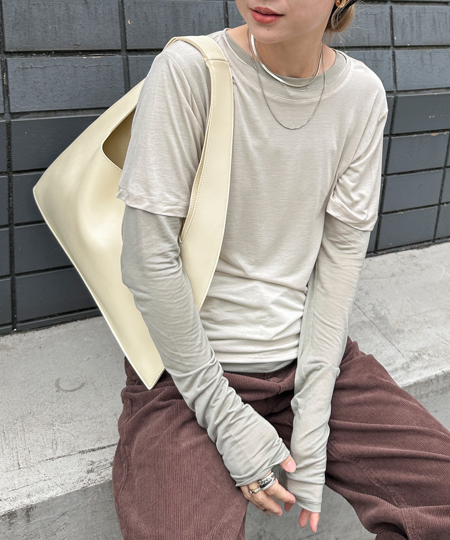 ニュアンス感のある配色で一枚でお洒落なスタイリングが完成します。