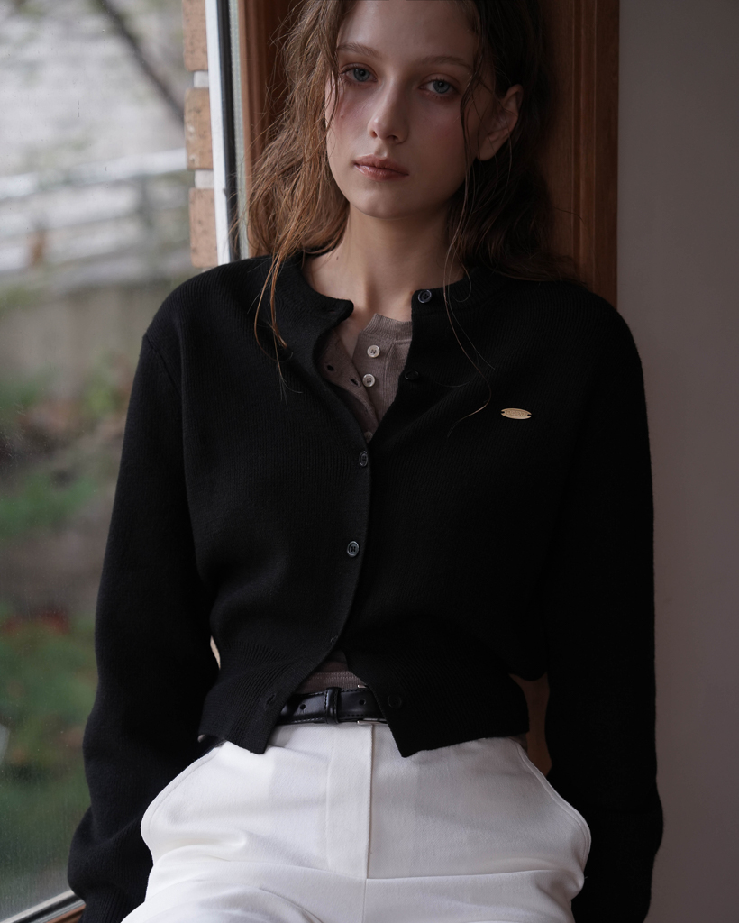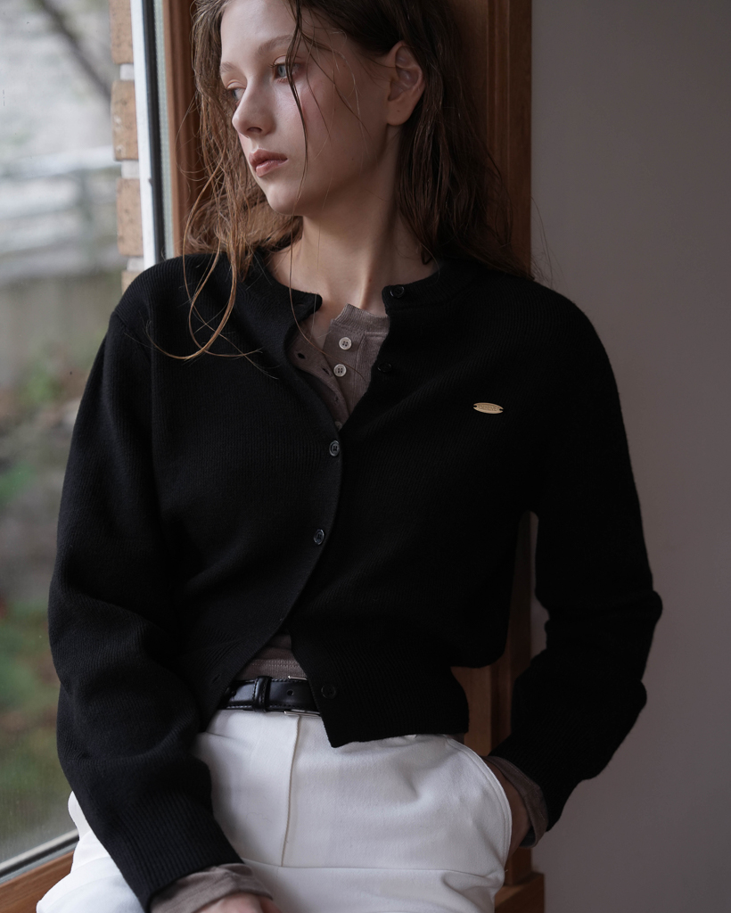 Basic Round Knit Cardigan [Black]