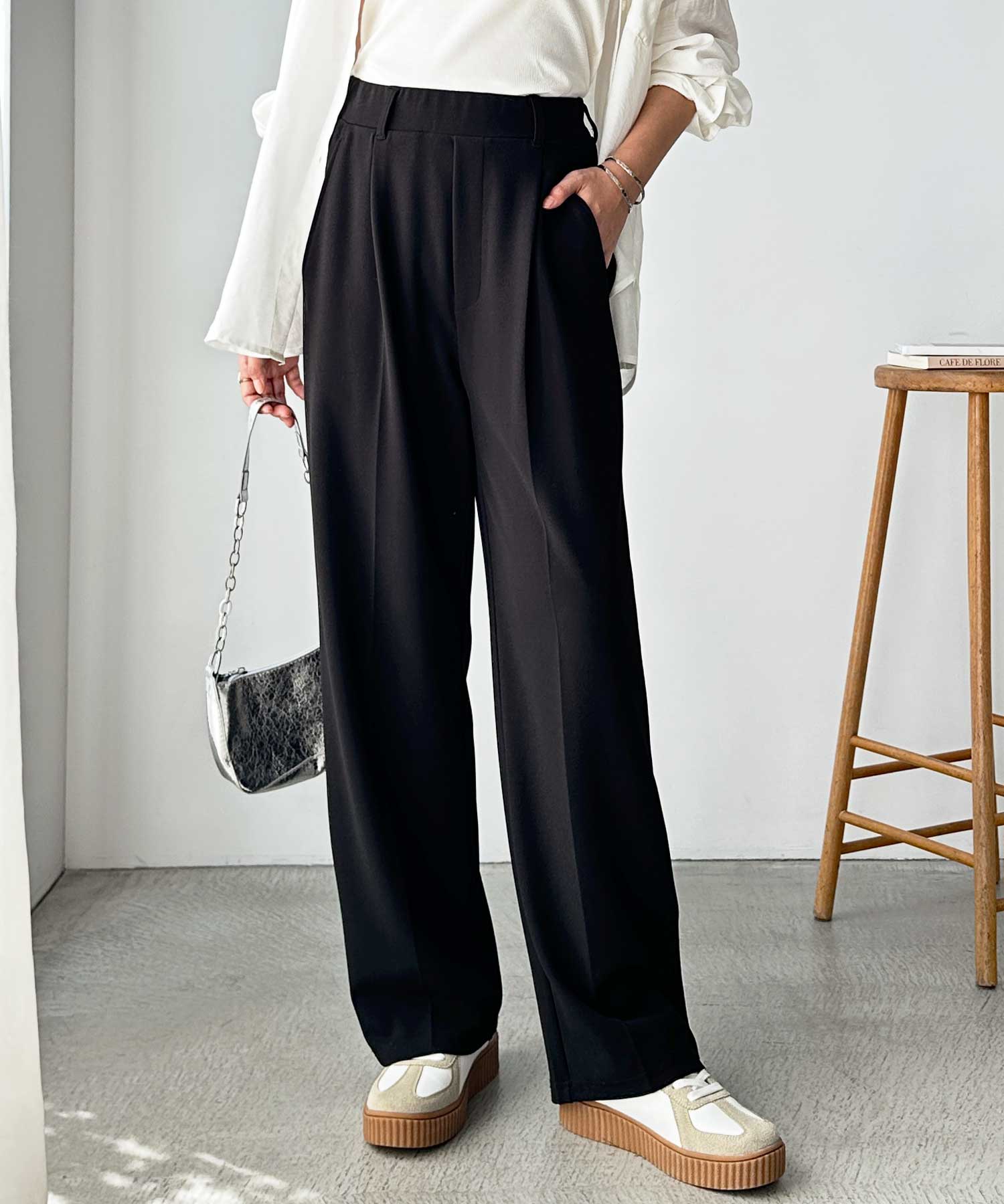 ベーシックながらも穿くだけで美脚見せを叶えるスラックス。