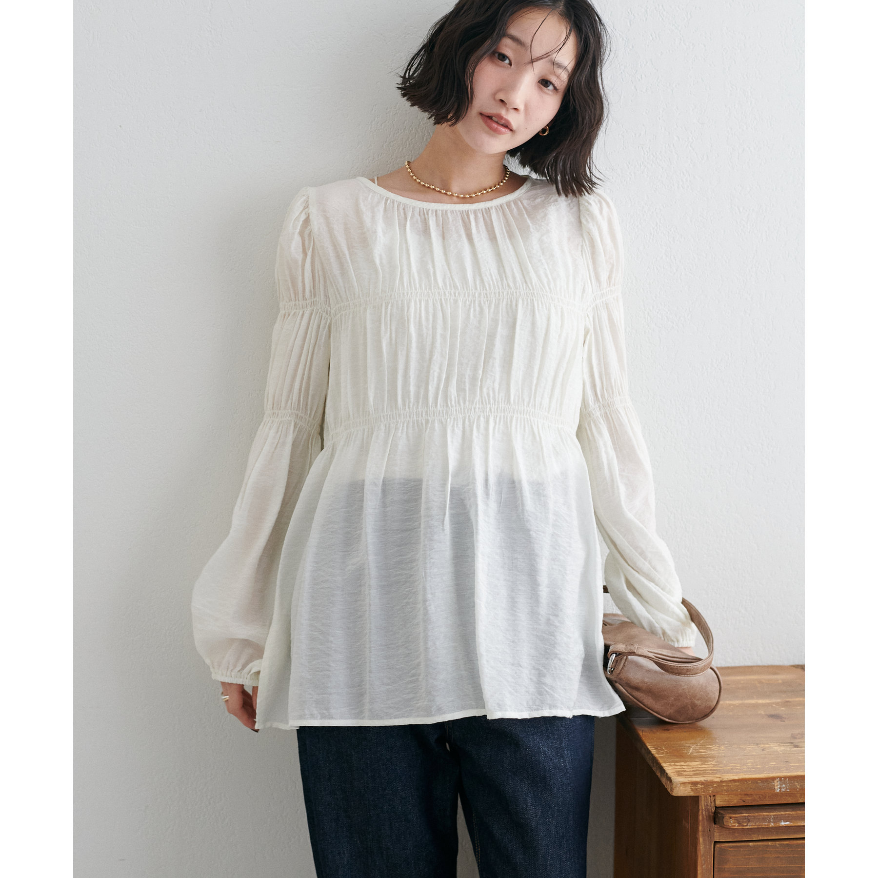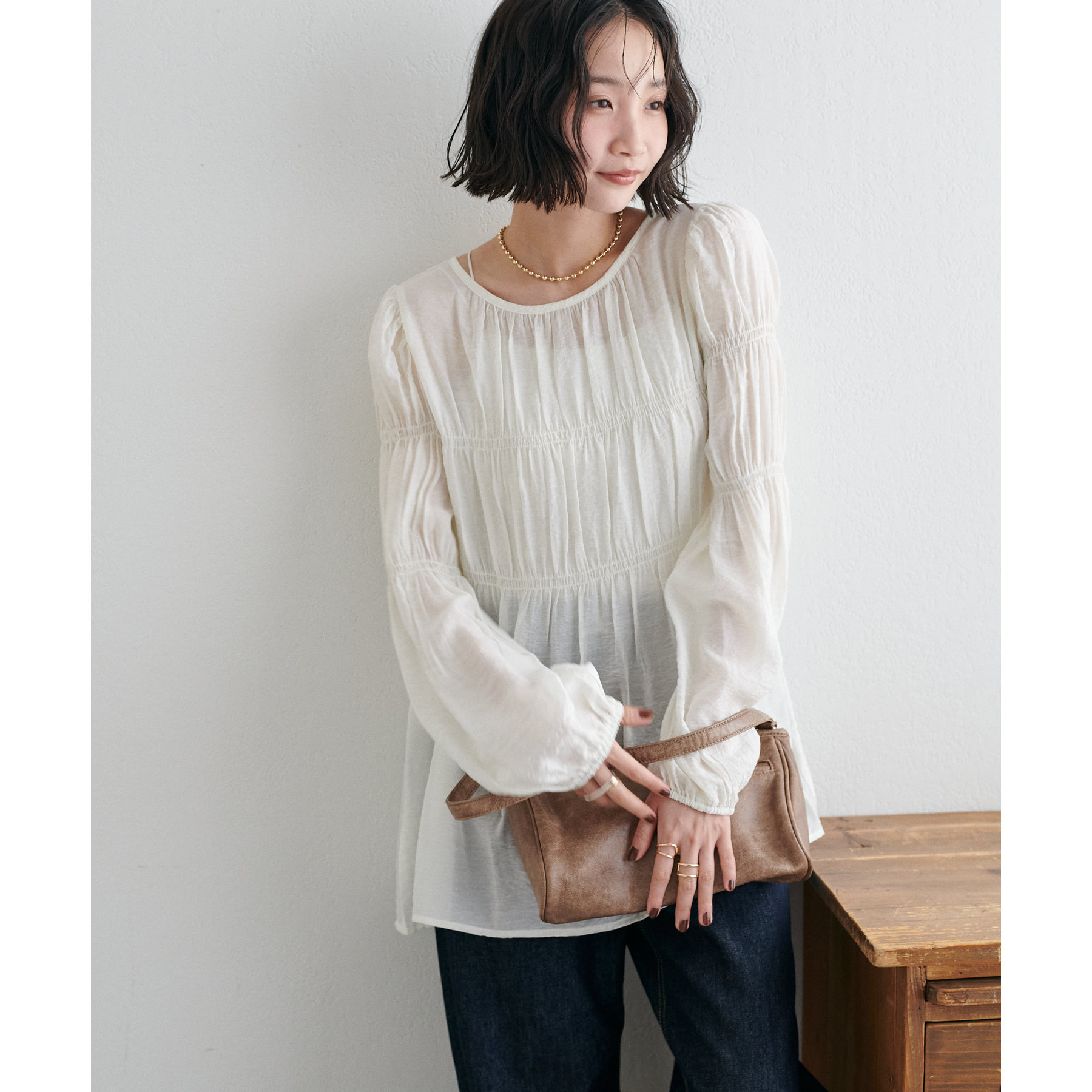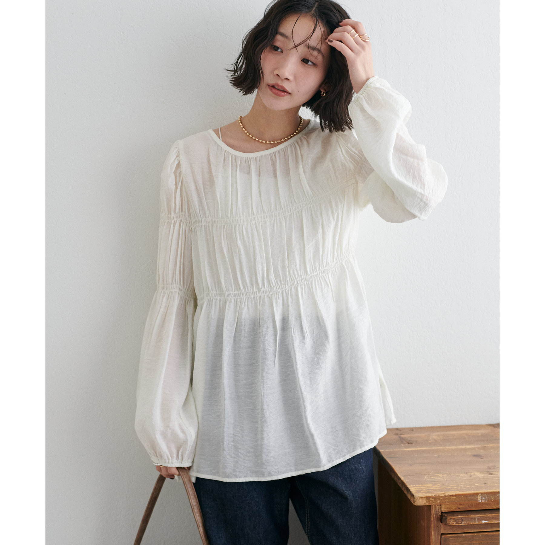 ・程よいシアー感で清涼感があり、春夏にぴったりのブラウス