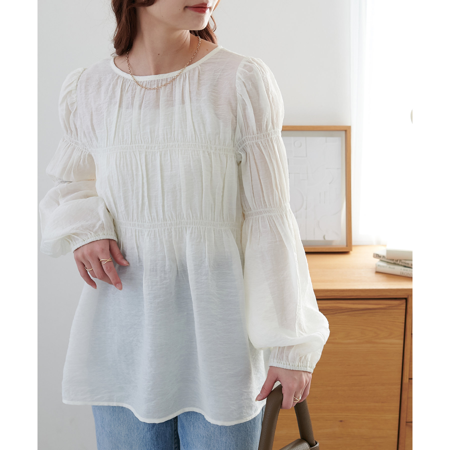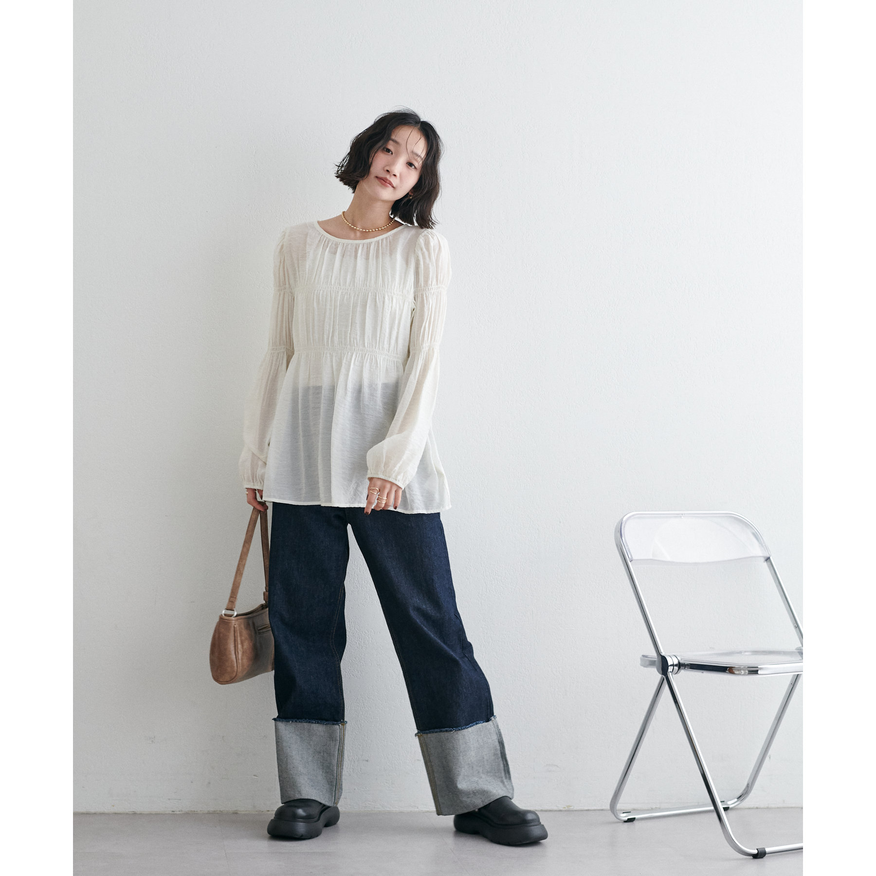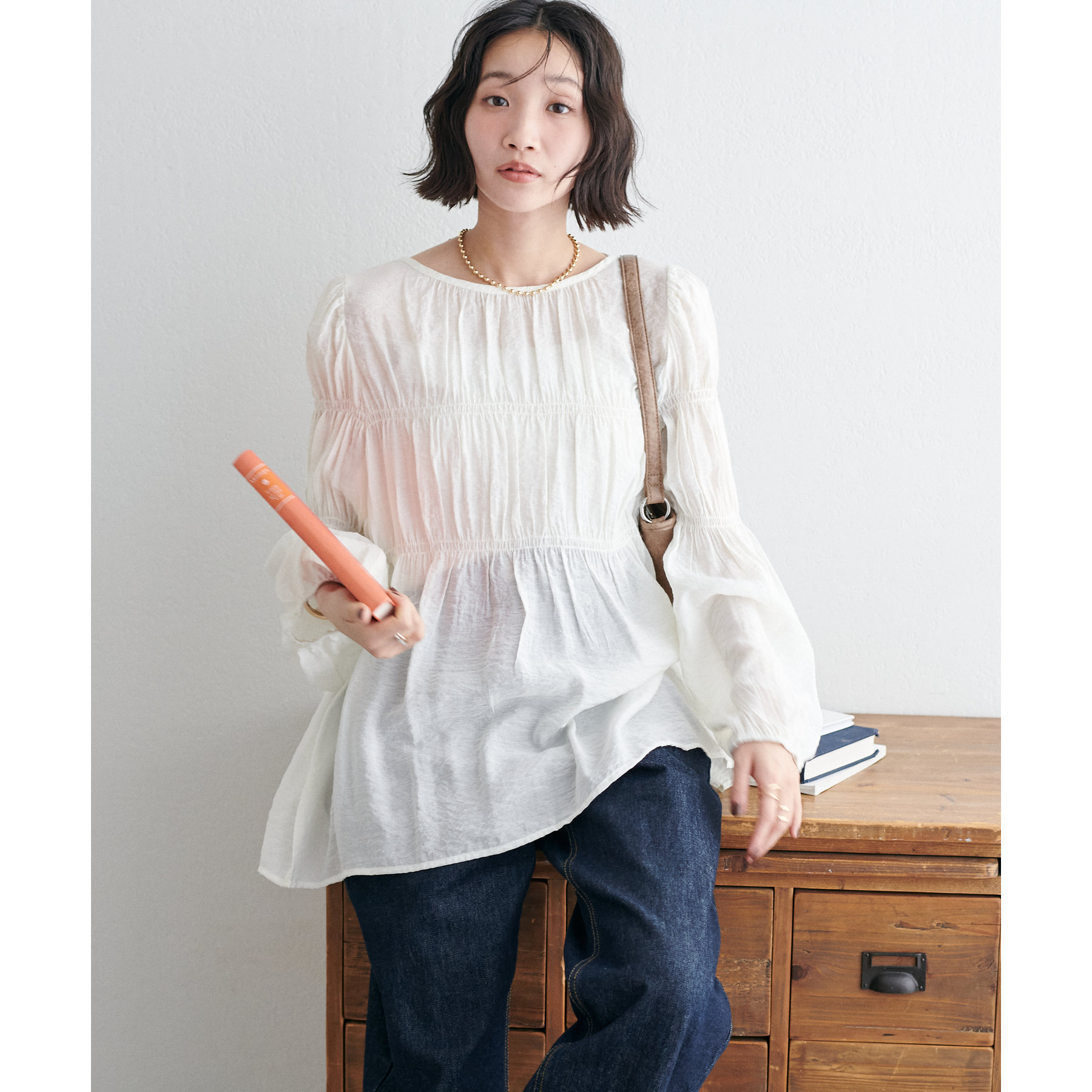 ・程よいシアー感で清涼感があり、春夏にぴったりのブラウス