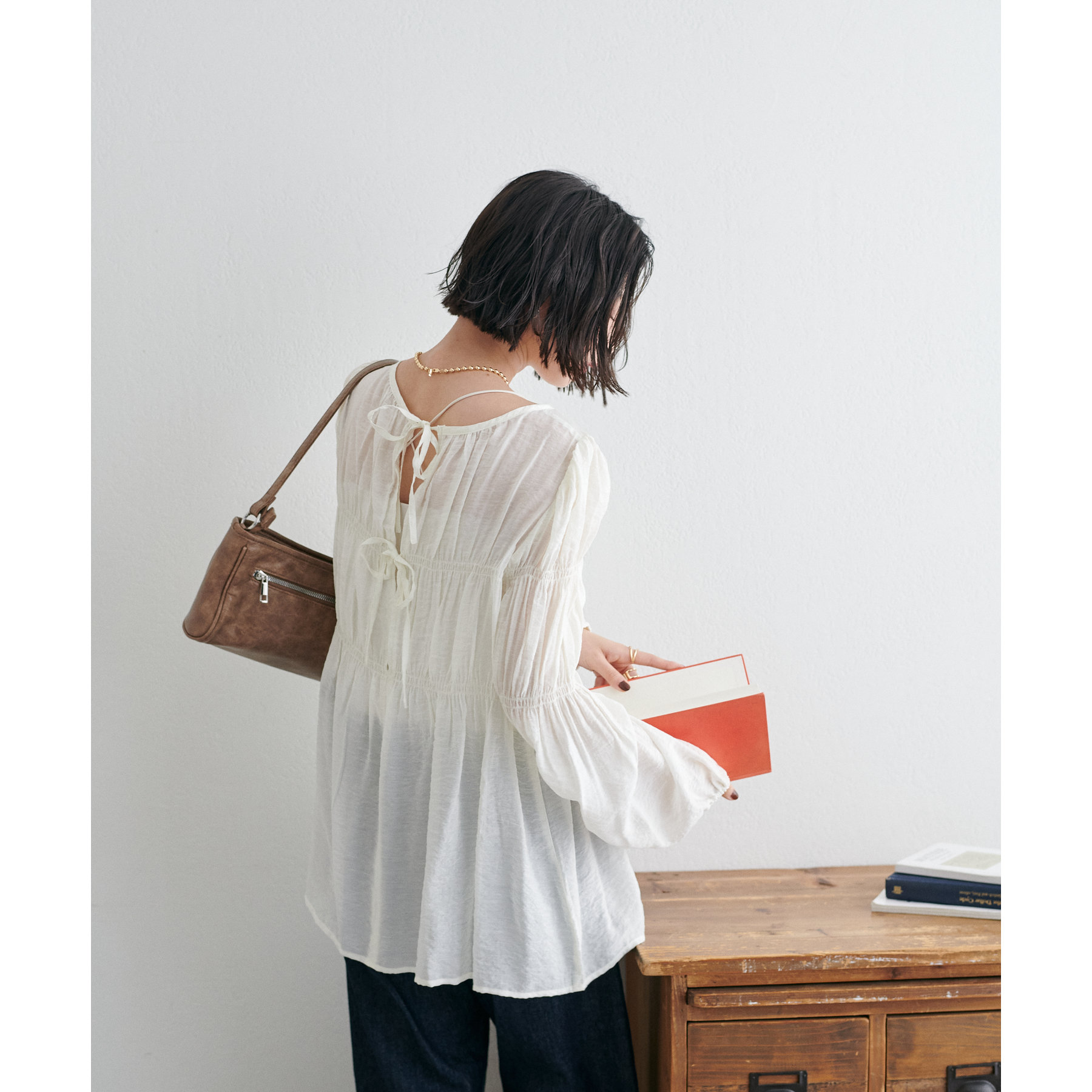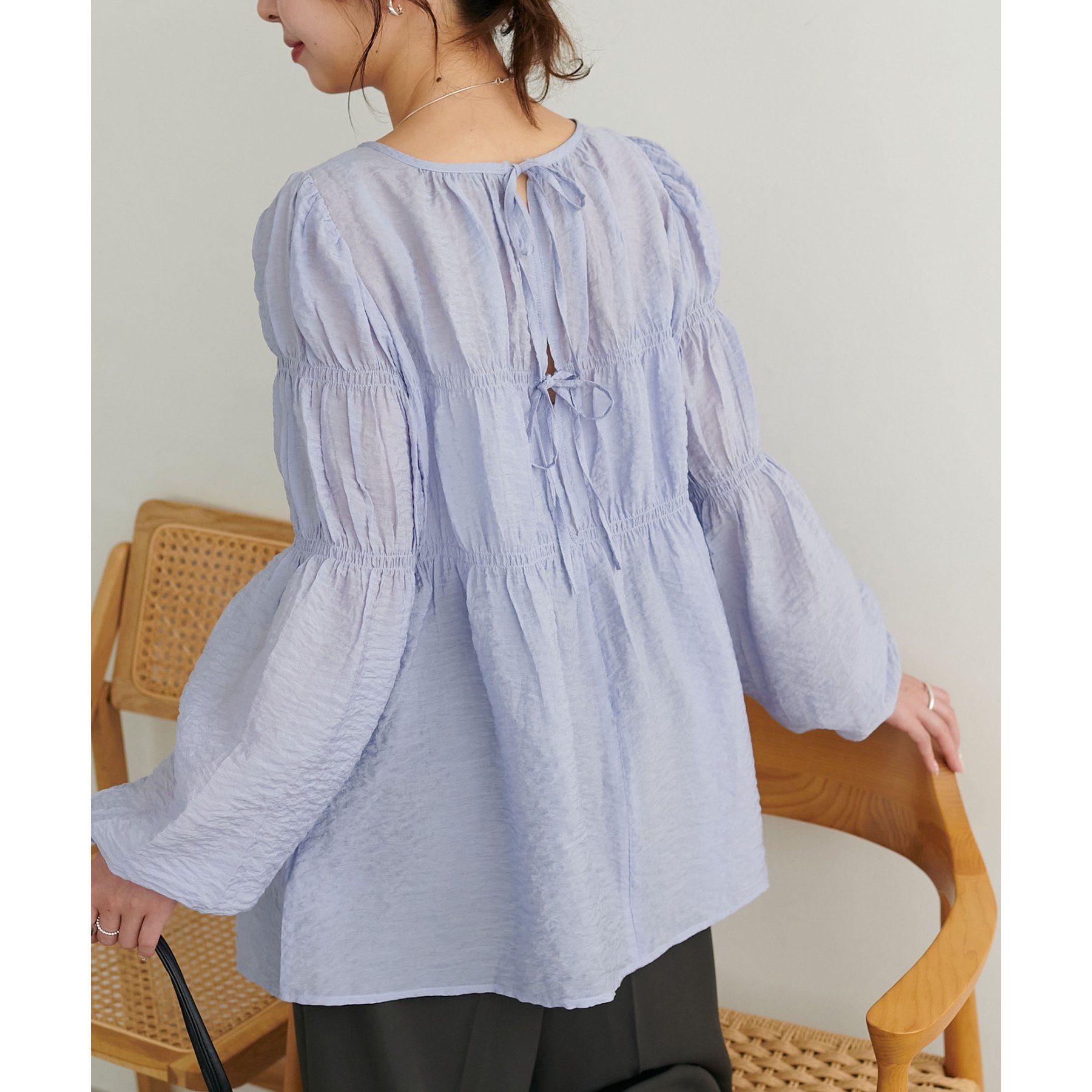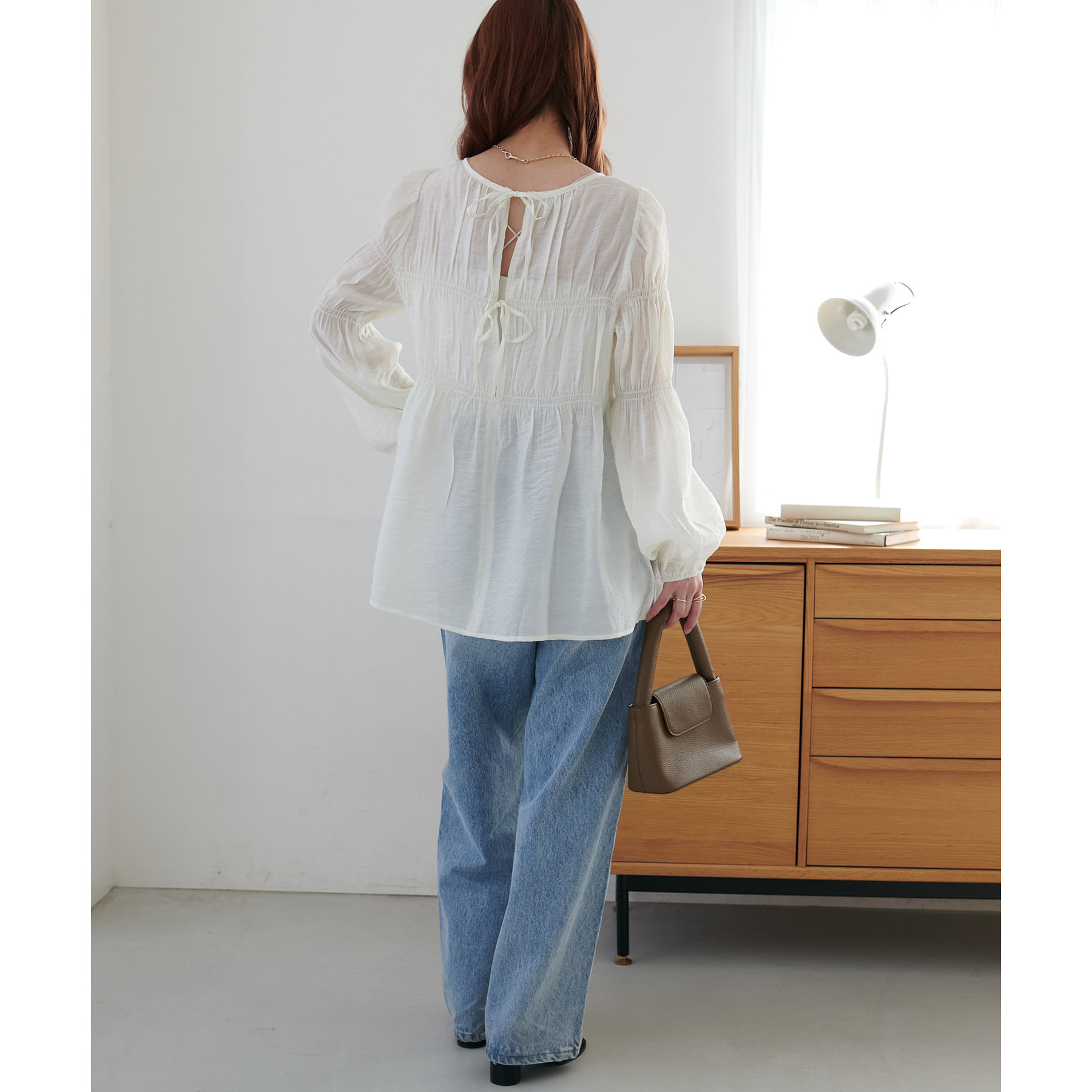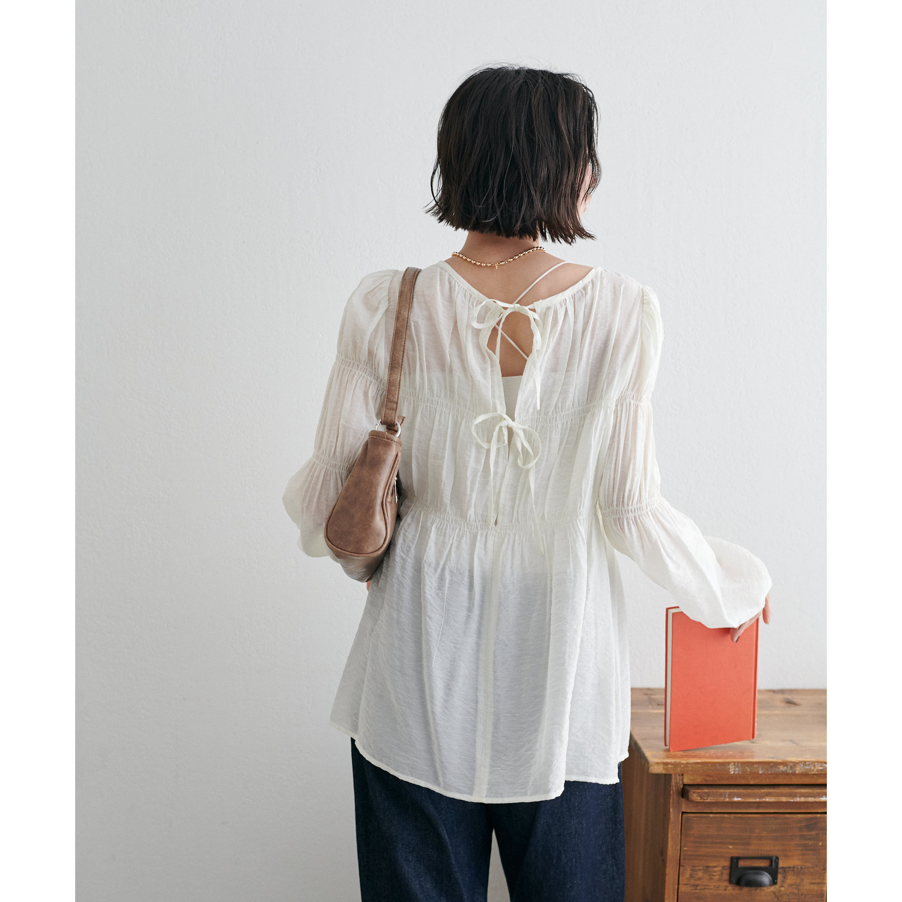 さりげないバックリボンデザインで後ろ姿まで可愛いブラウス