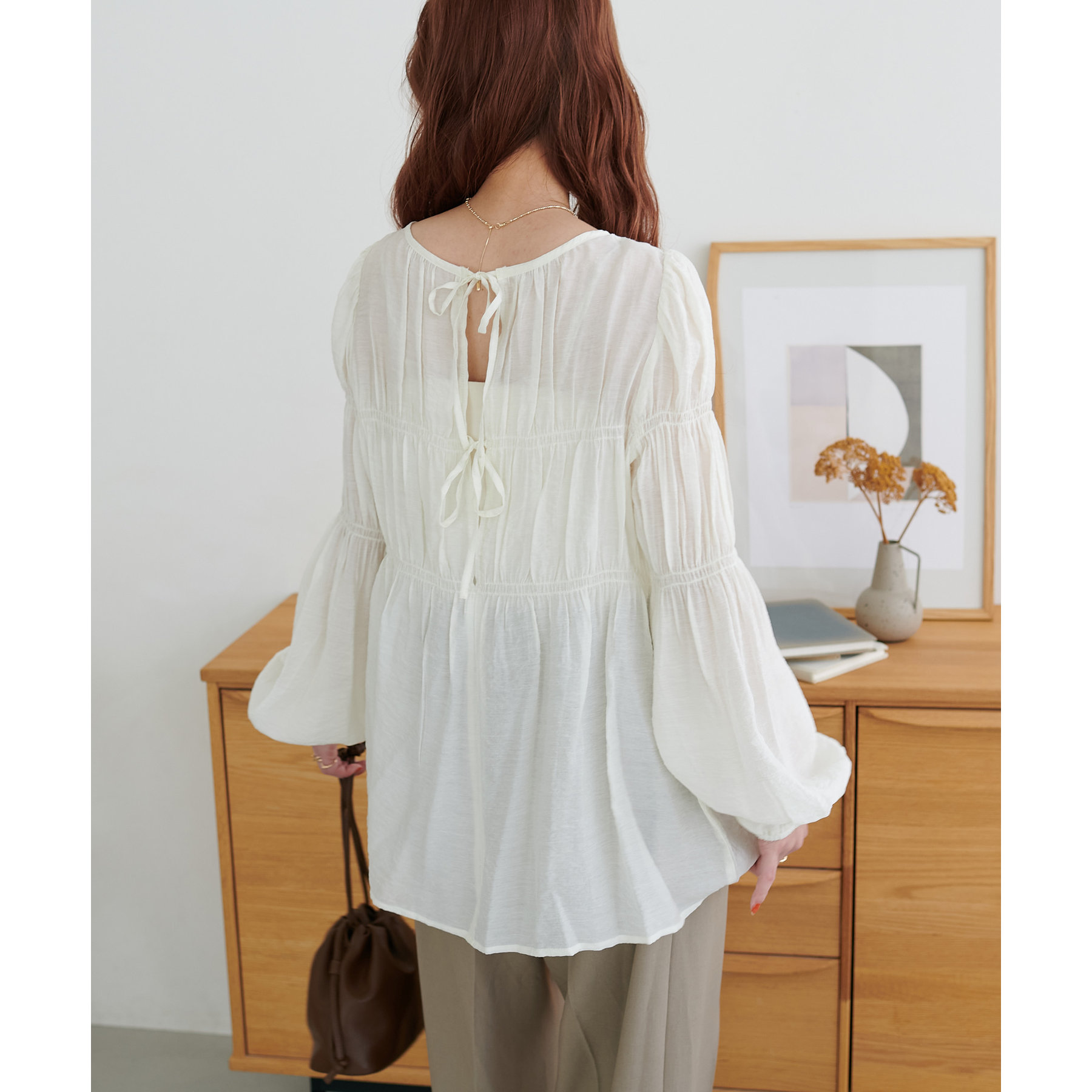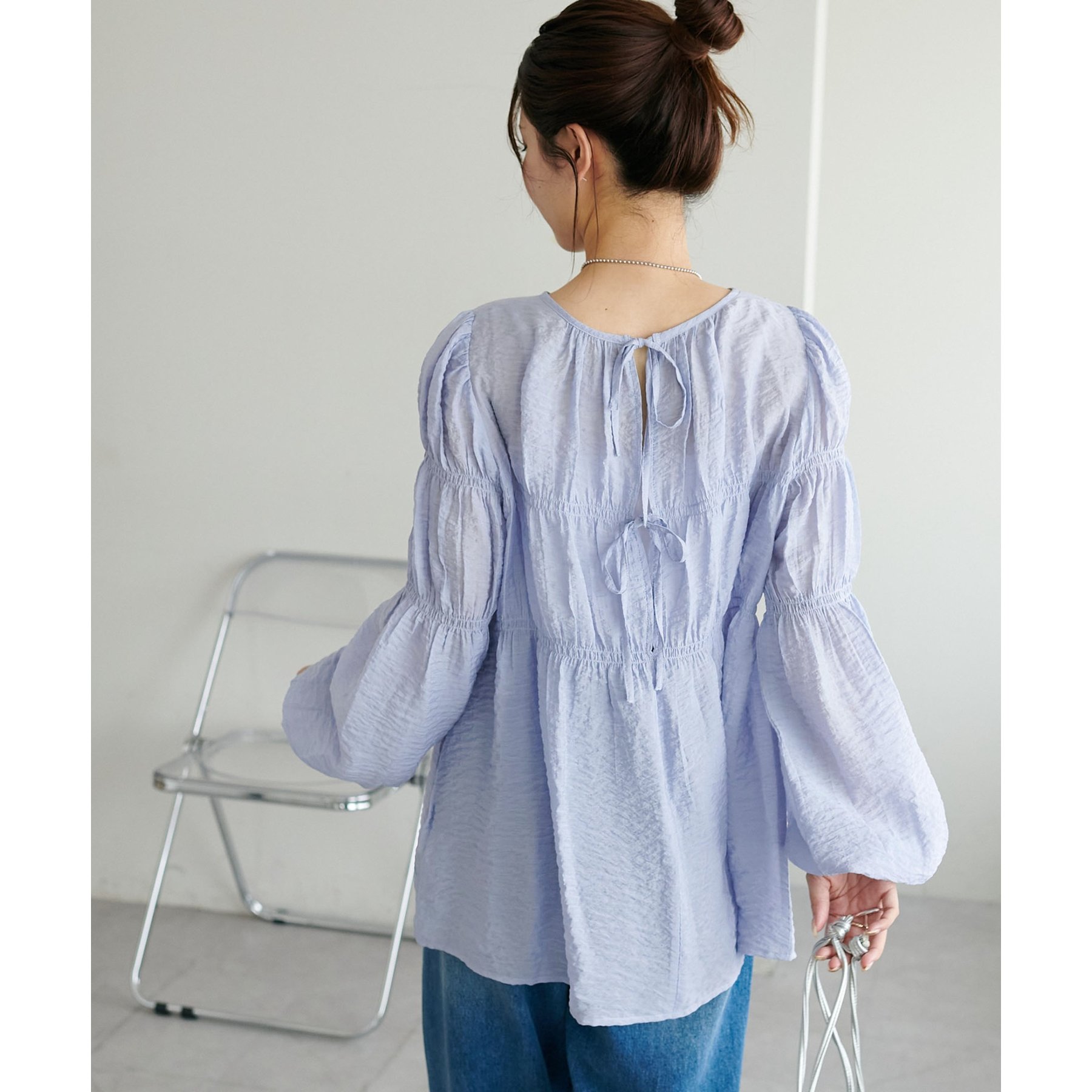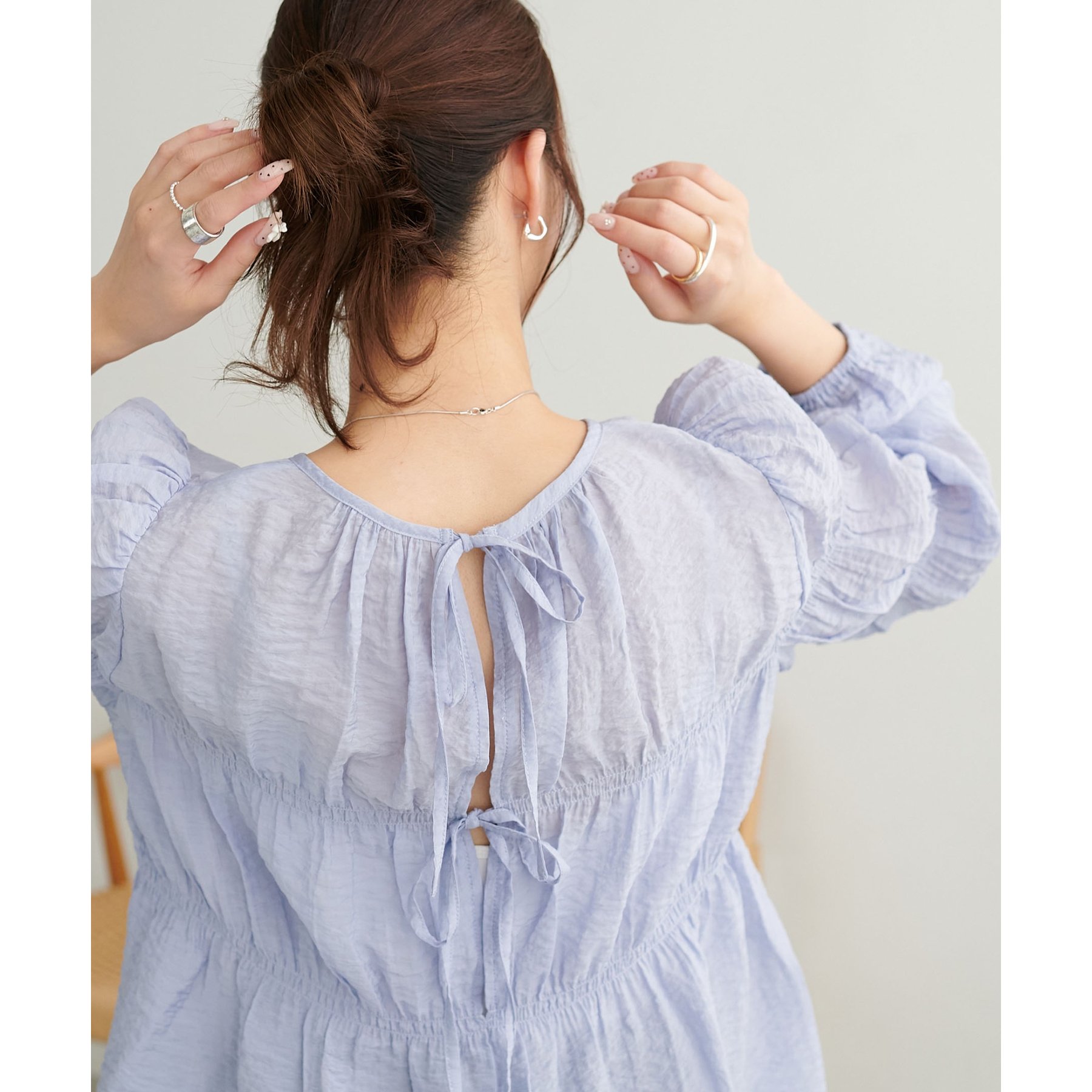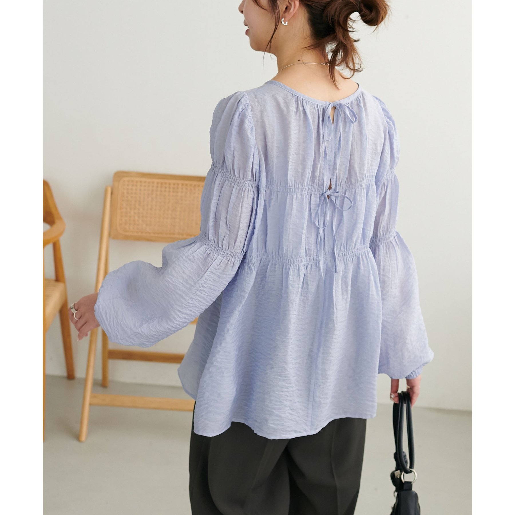 さりげないバックリボンデザインで後ろ姿まで可愛いブラウス