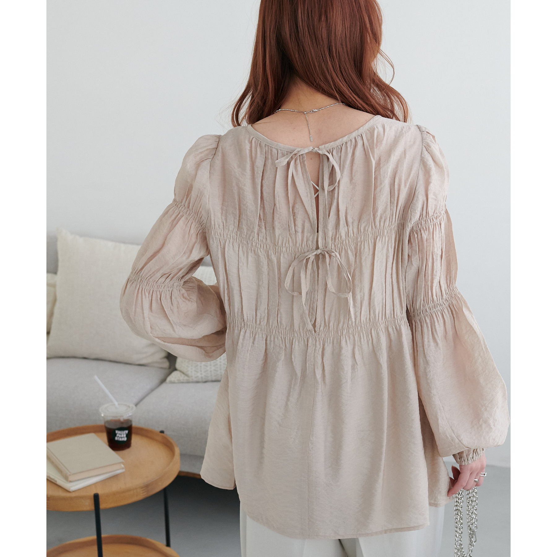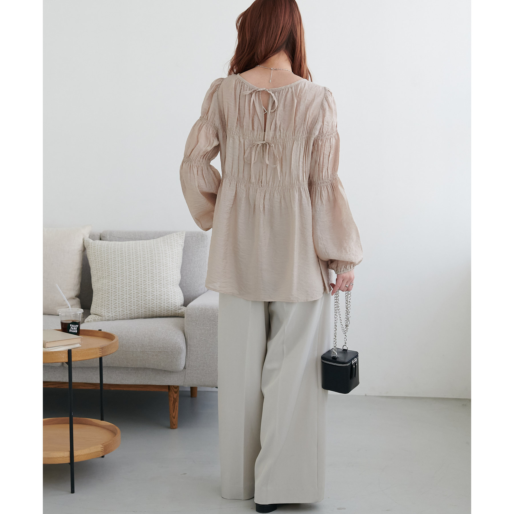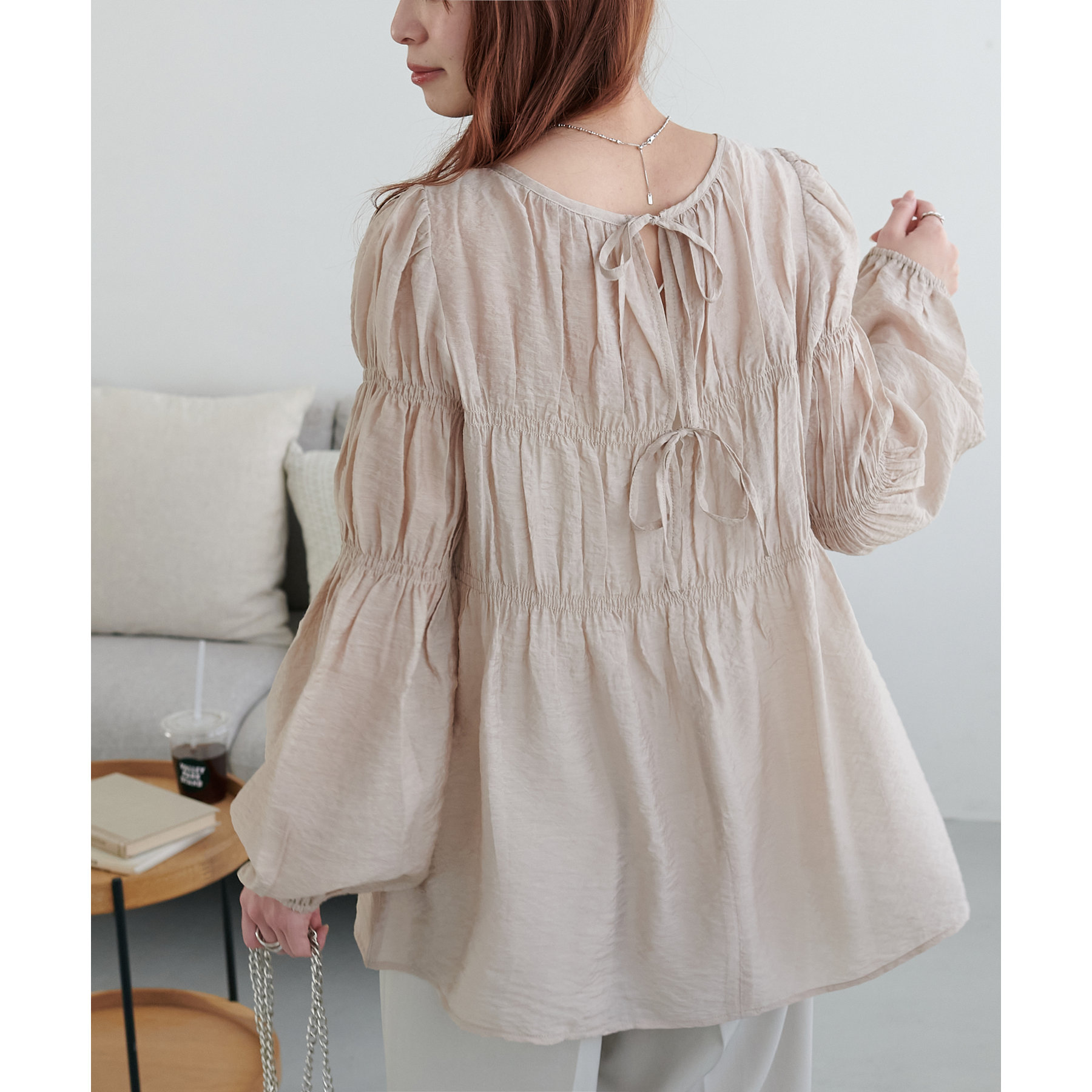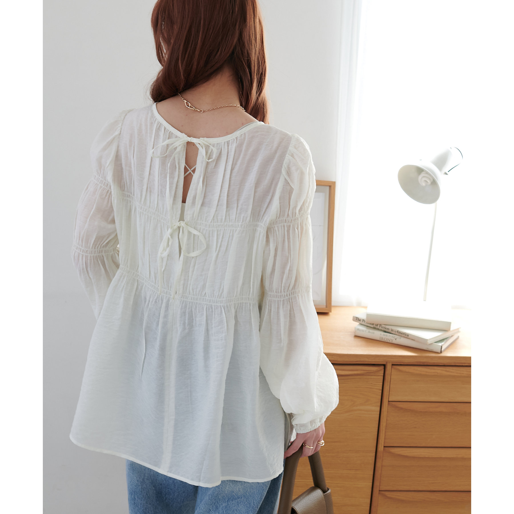 さりげないバックリボンデザインで後ろ姿まで可愛いブラウス
