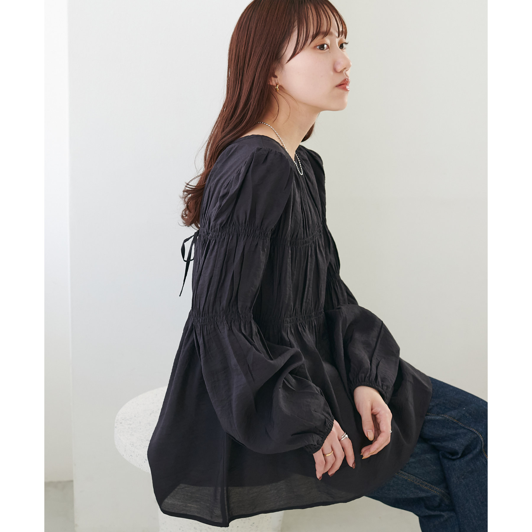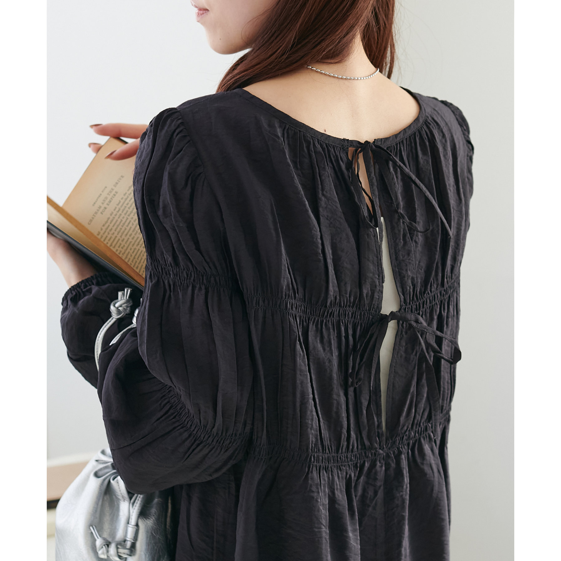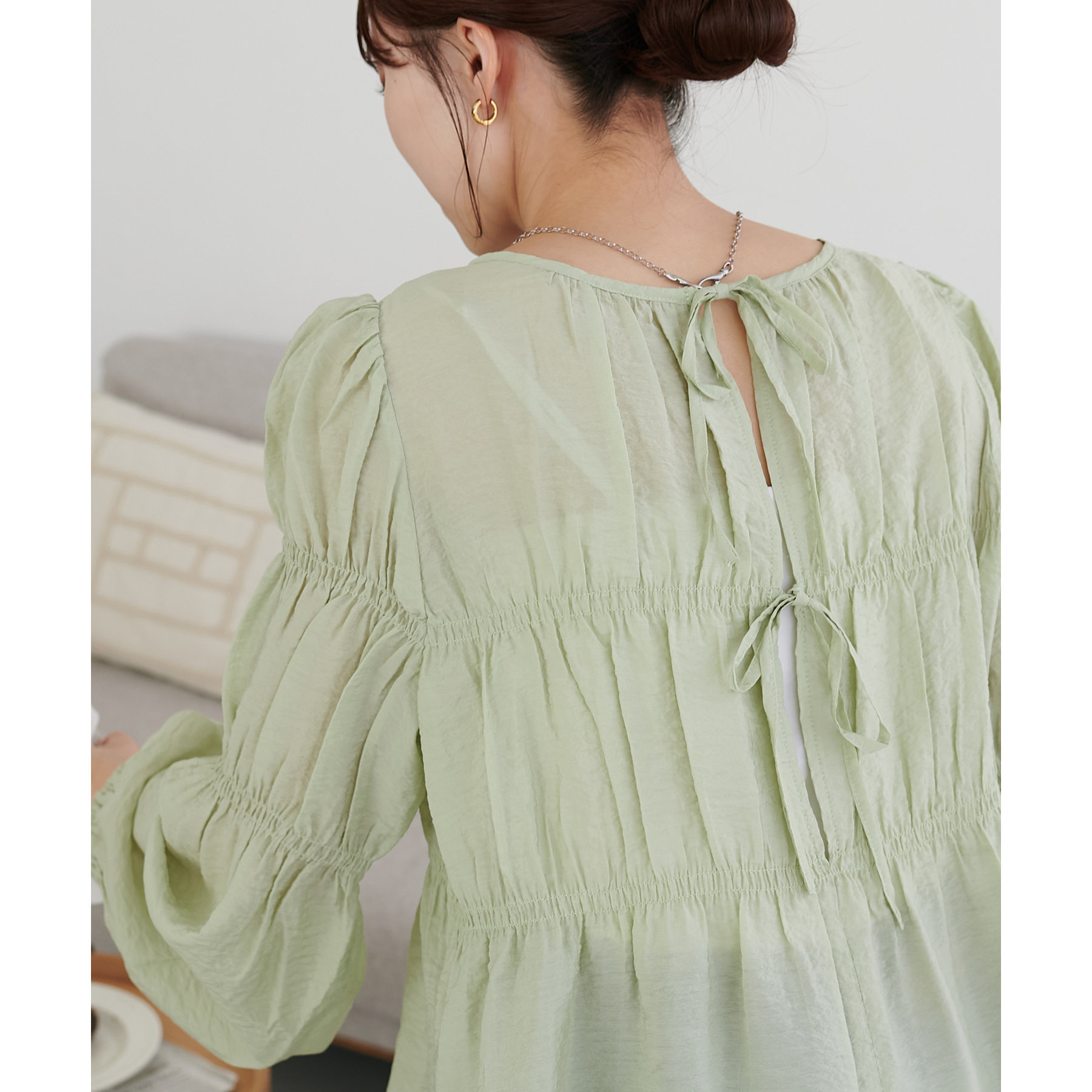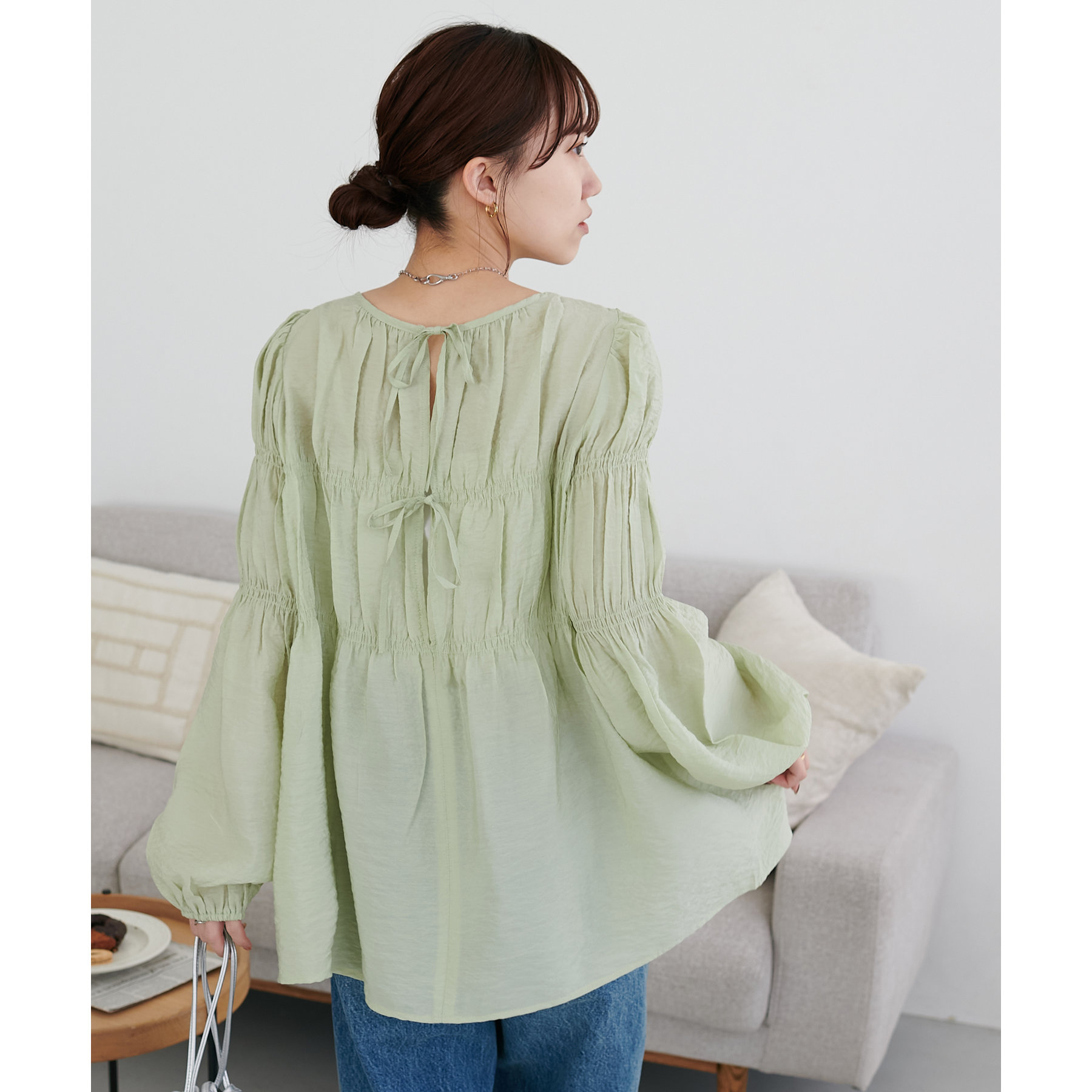 さりげないバックリボンデザインで後ろ姿まで可愛いブラウス