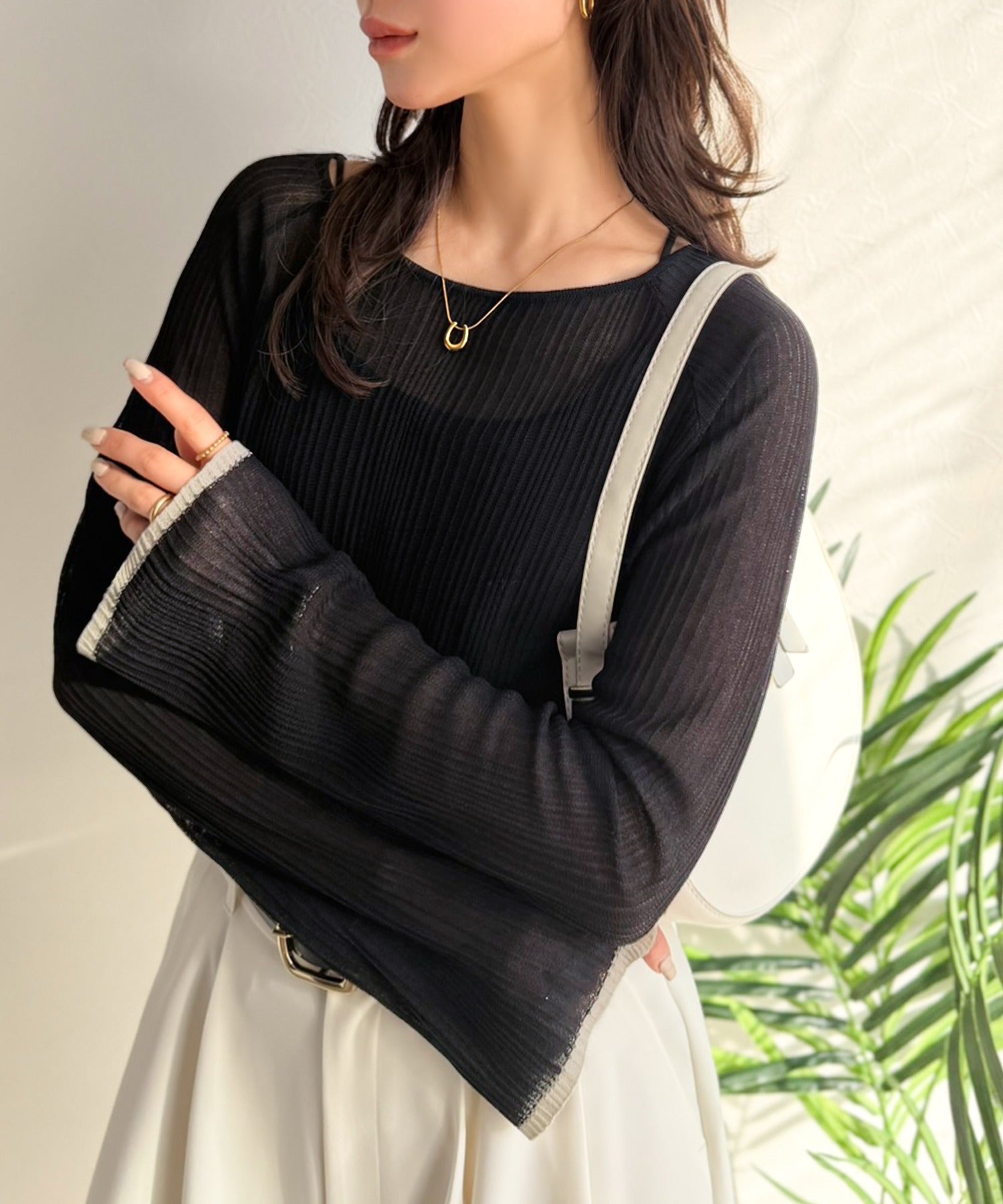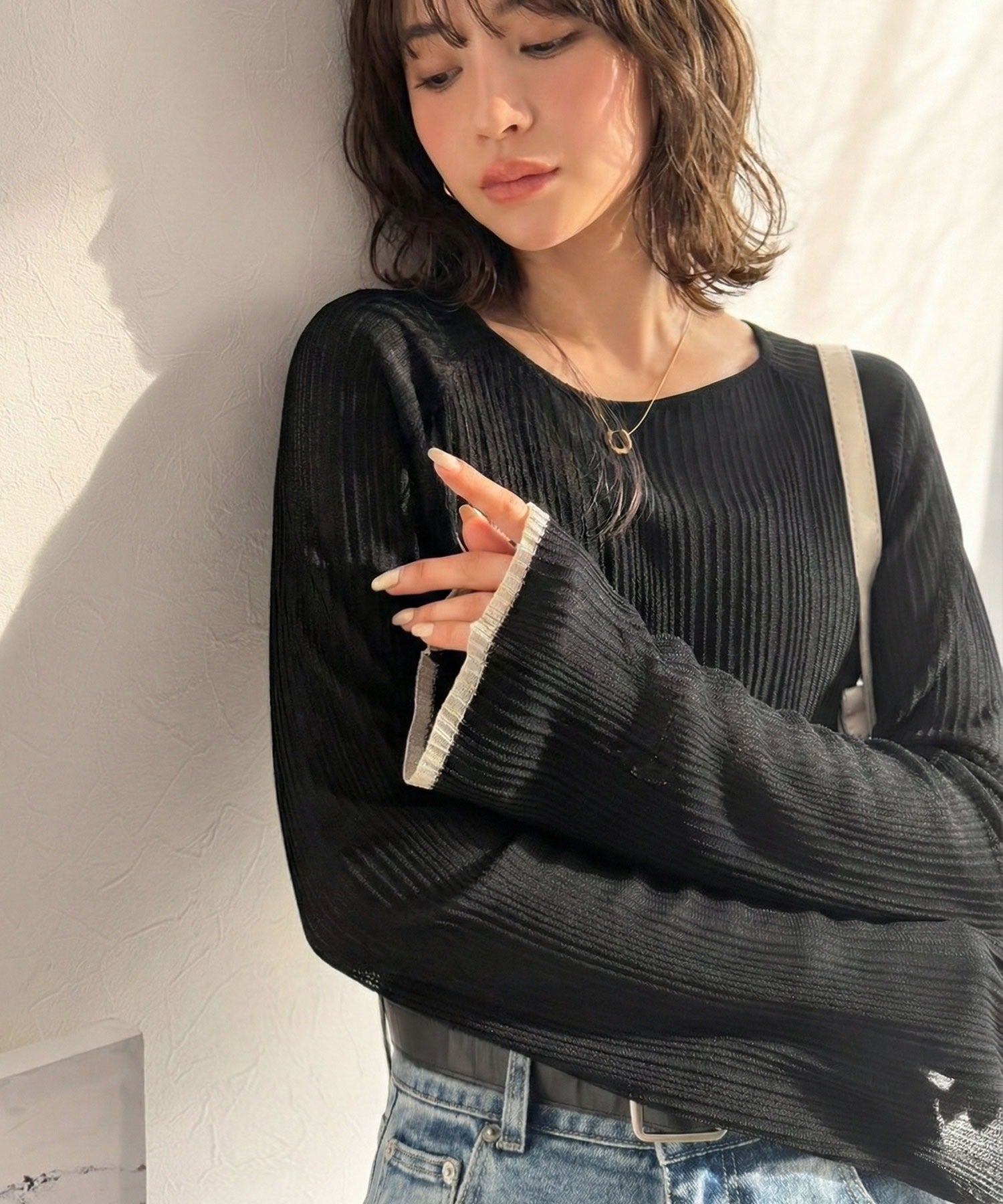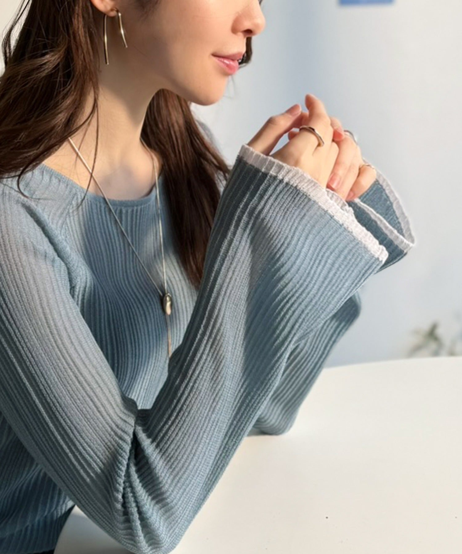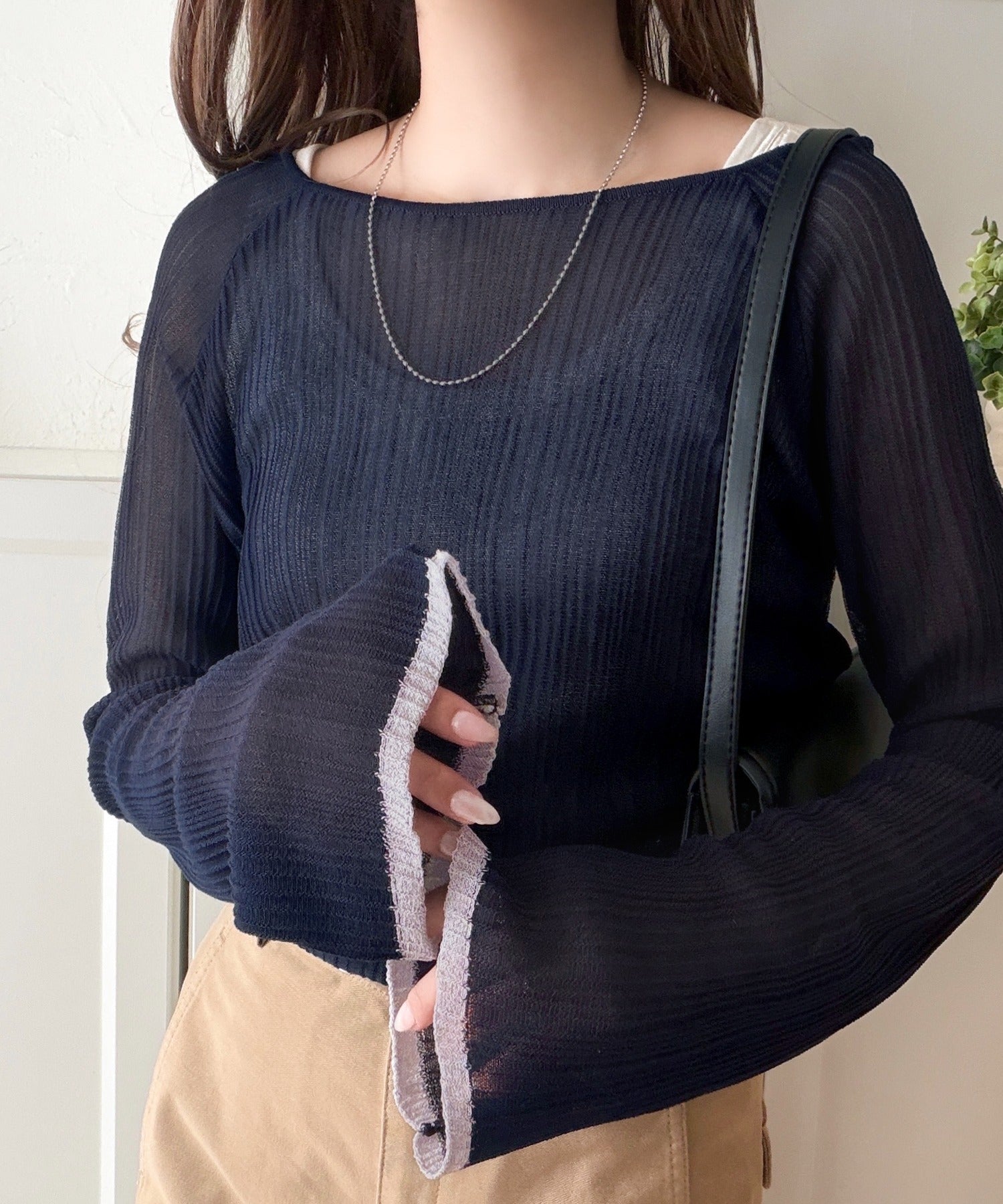 透き通る気品を、日常に。ランダムタックシアー袖フレア長袖トップス ce1260607