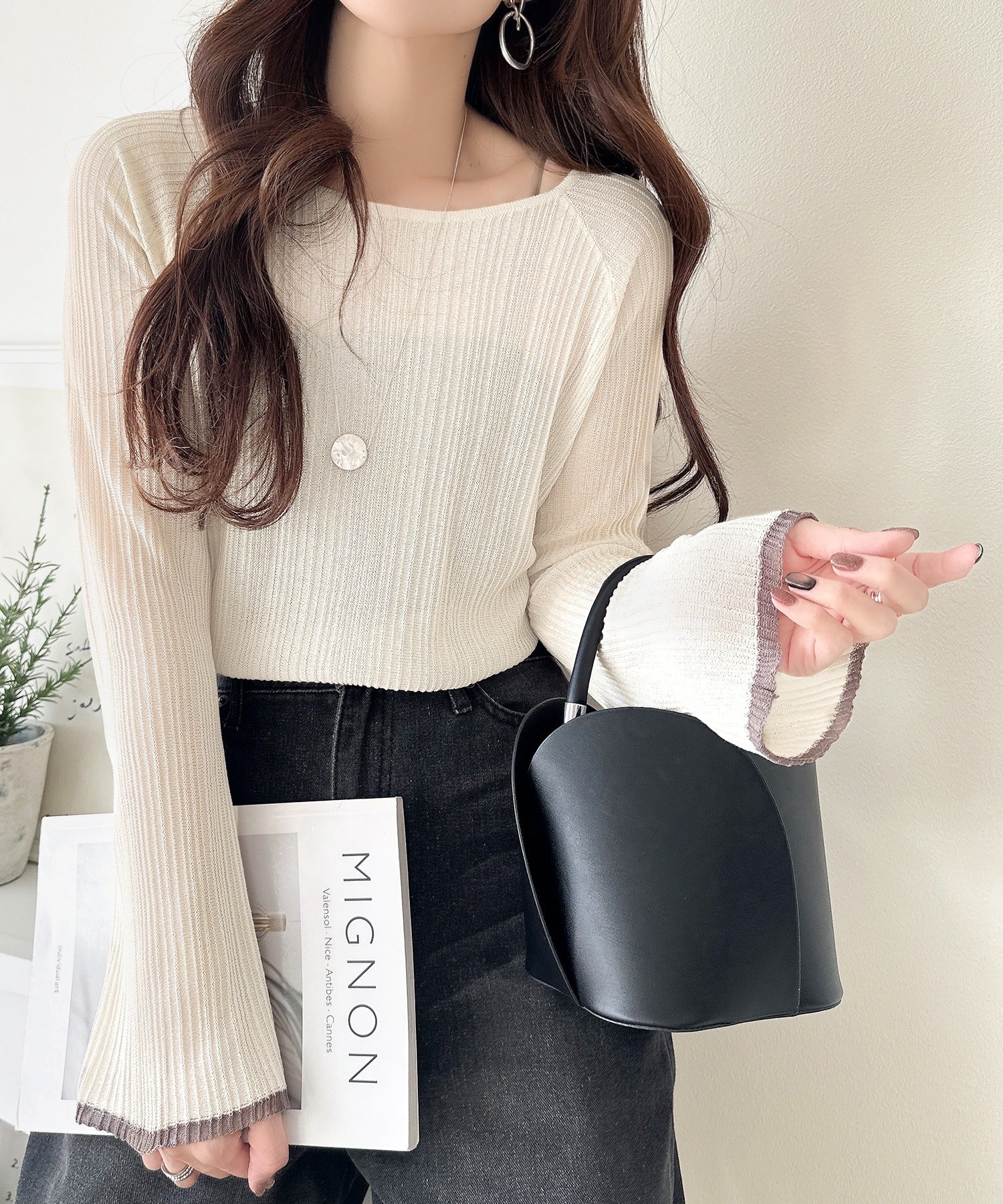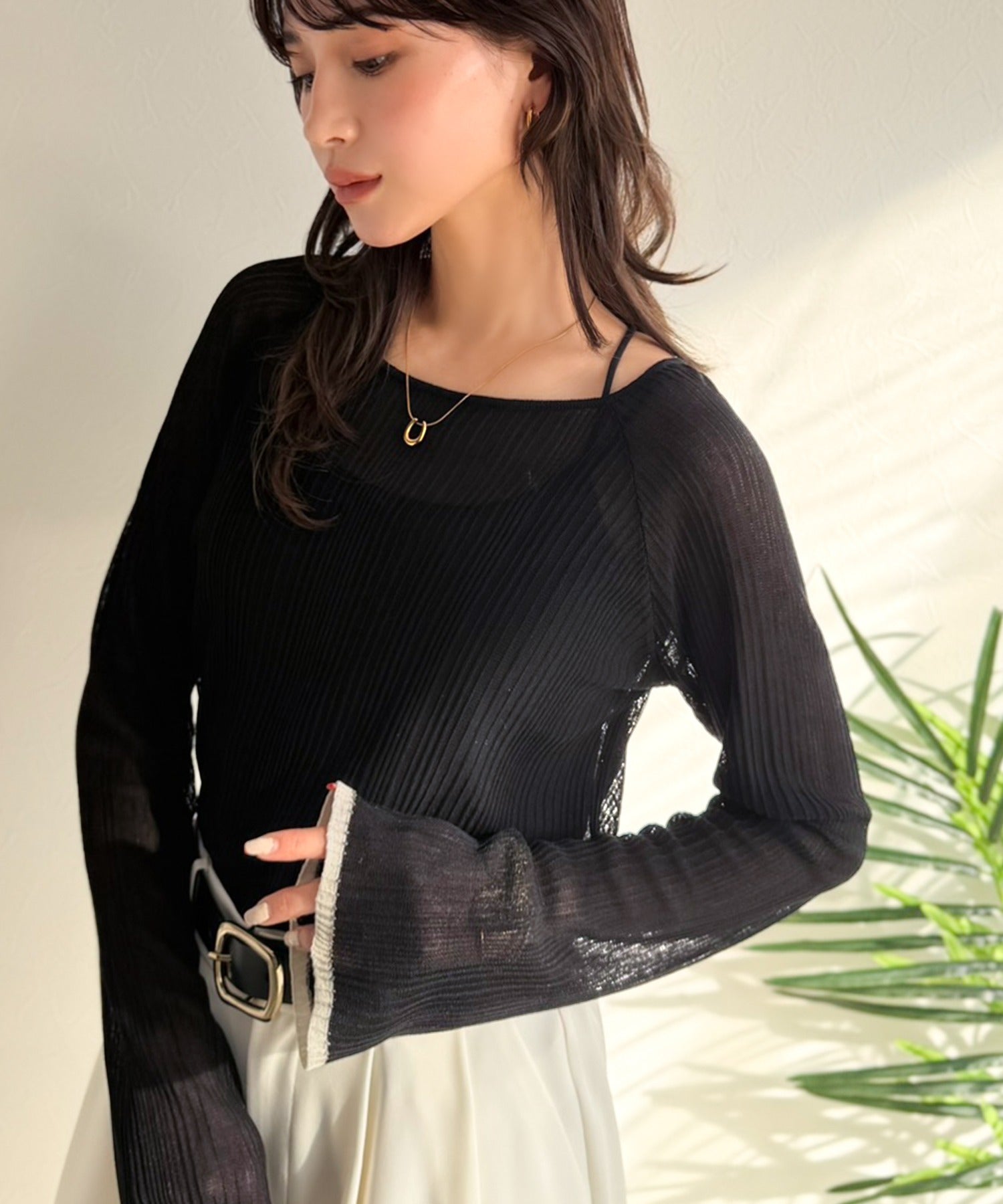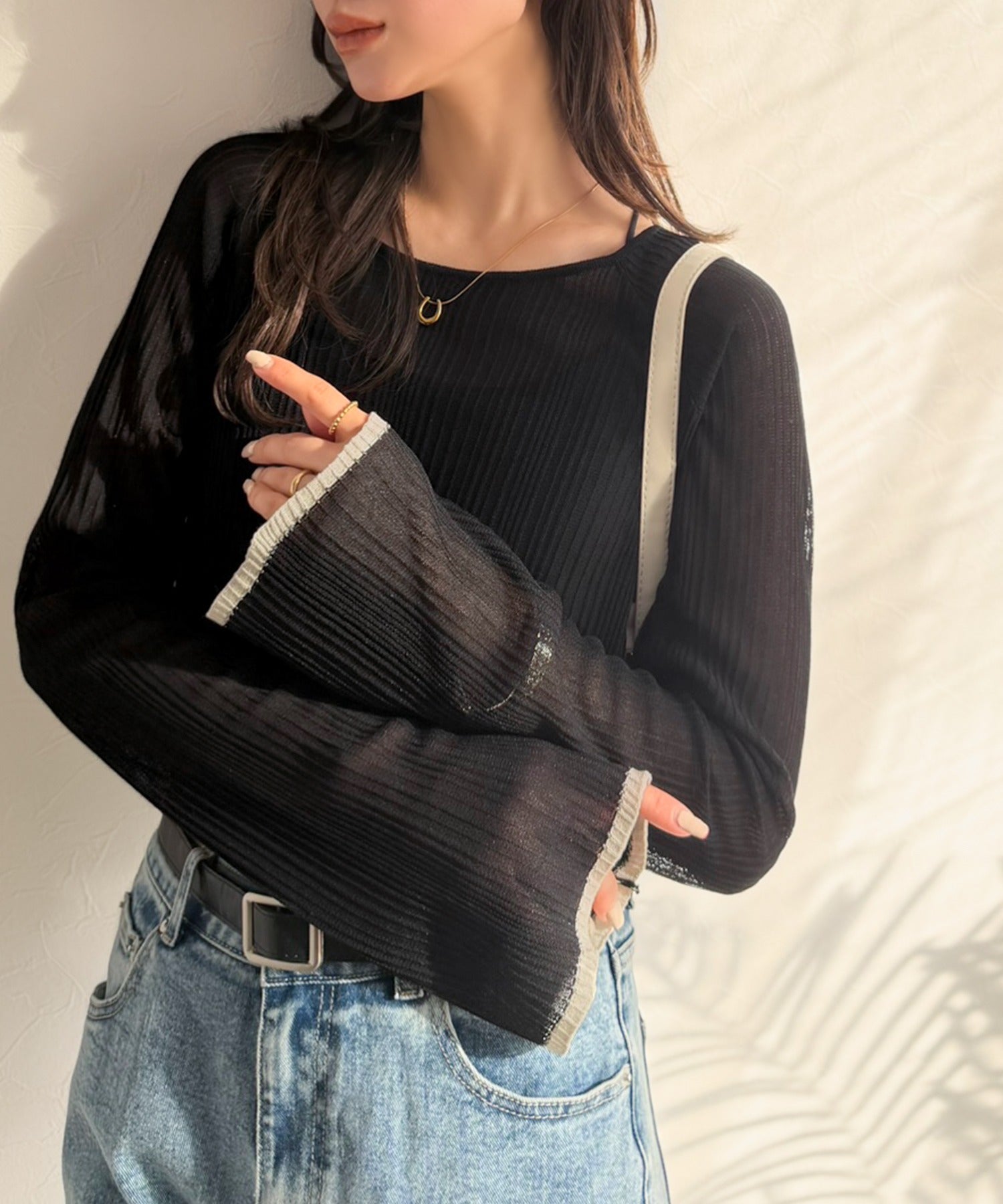透き通る気品を、日常に。ランダムタックシアー袖フレア長袖トップス ce1260607