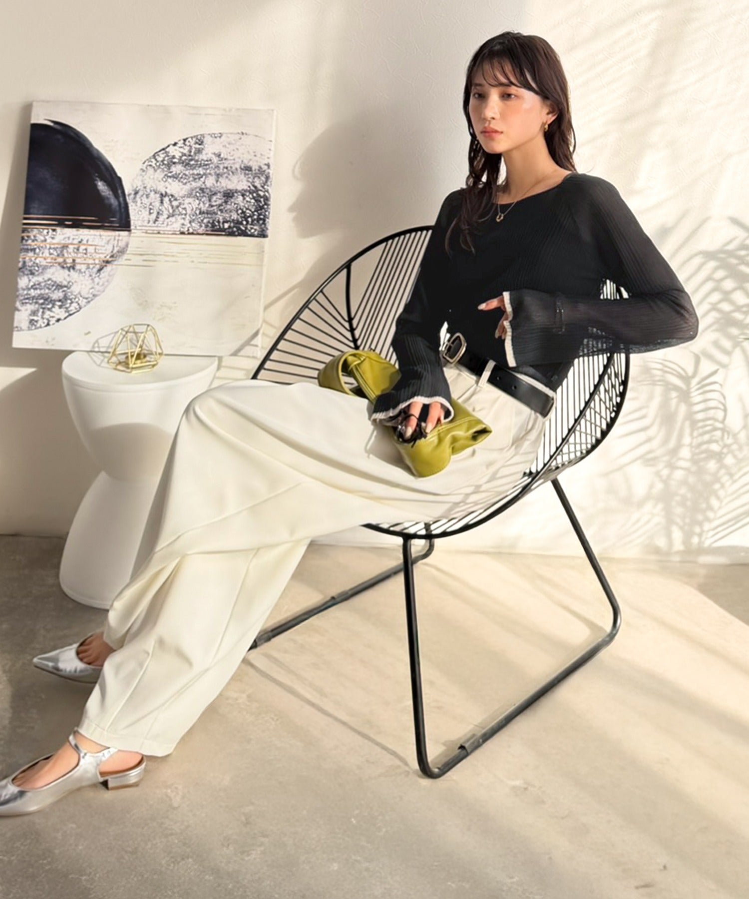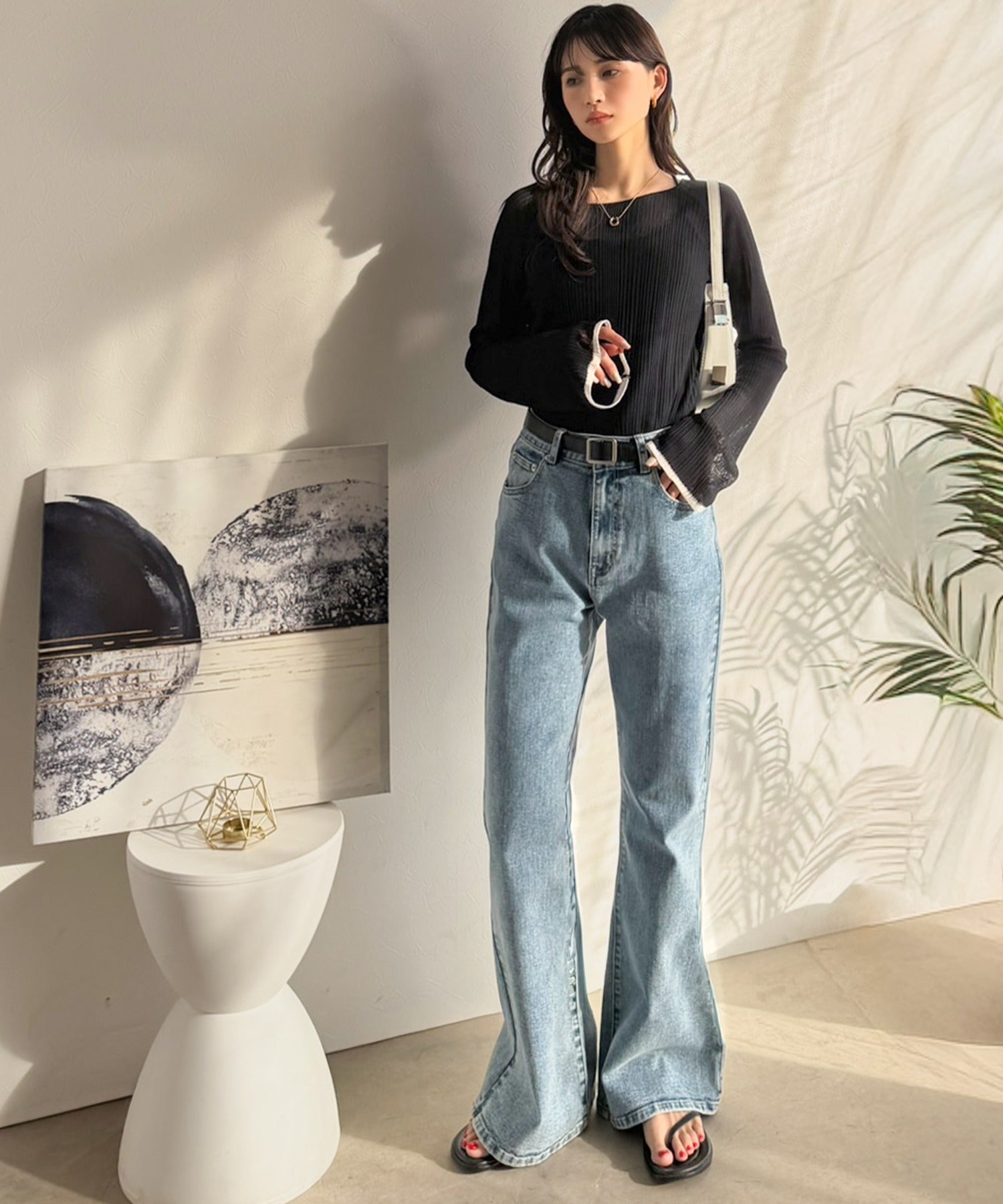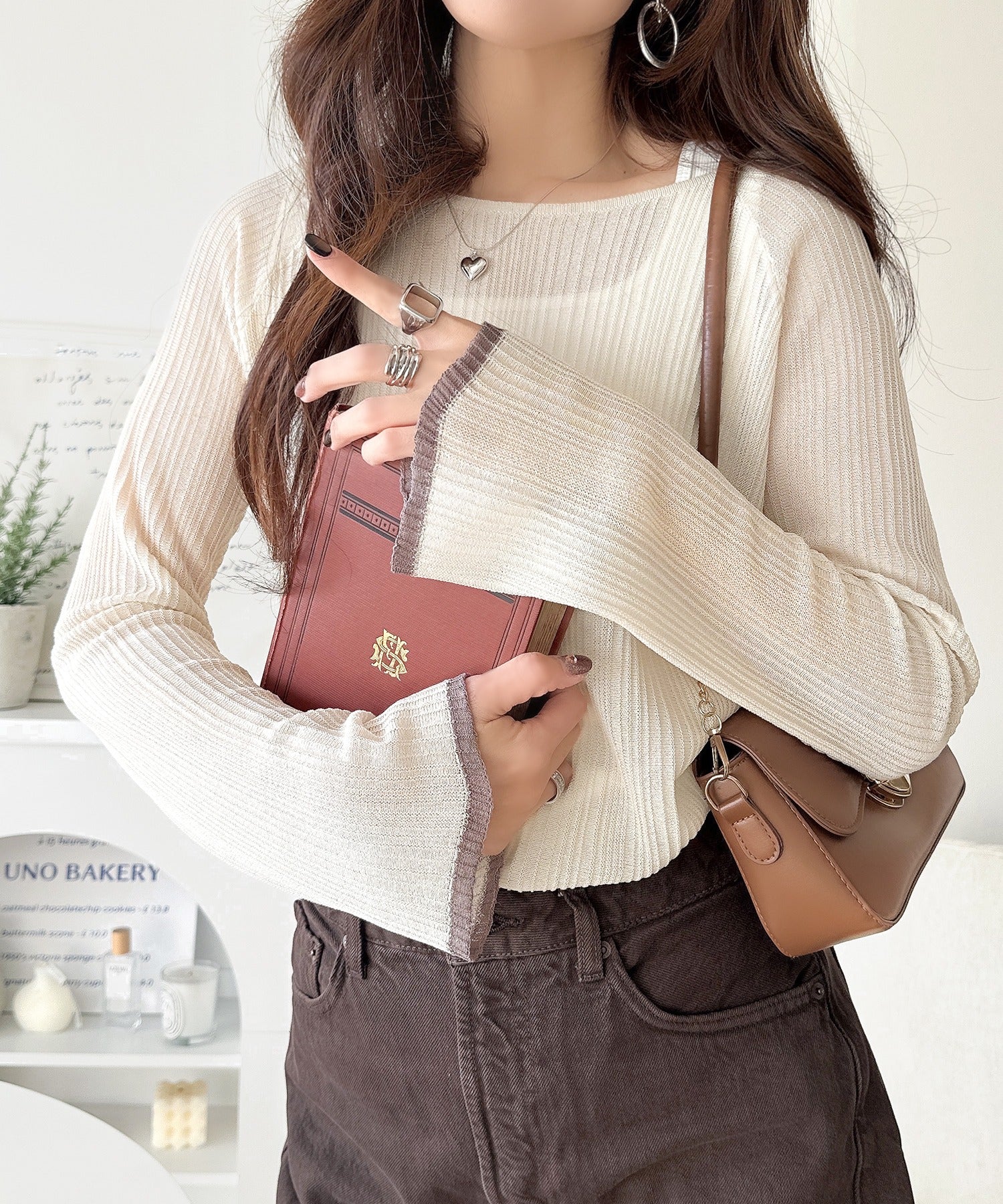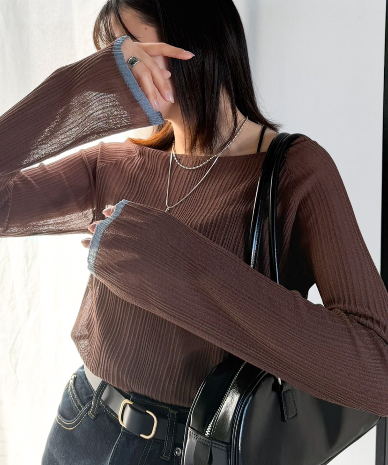 透き通る気品を、日常に。ランダムタックシアー袖フレア長袖トップス ce1260607