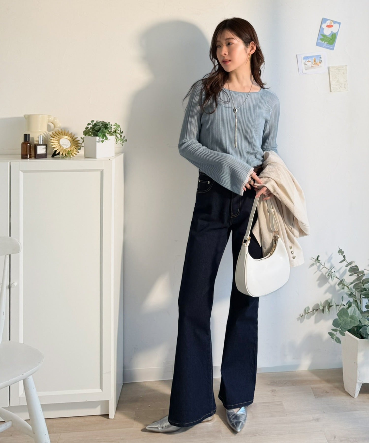 デニムや女性らしいロングスカートなど様々なボトムスと相性抜群!