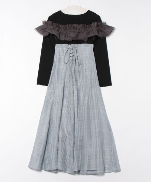 【mily bilet】大人の女性にぴったり!チュールフリルデザインドッキングワンピース(ロング丈) mi1019062