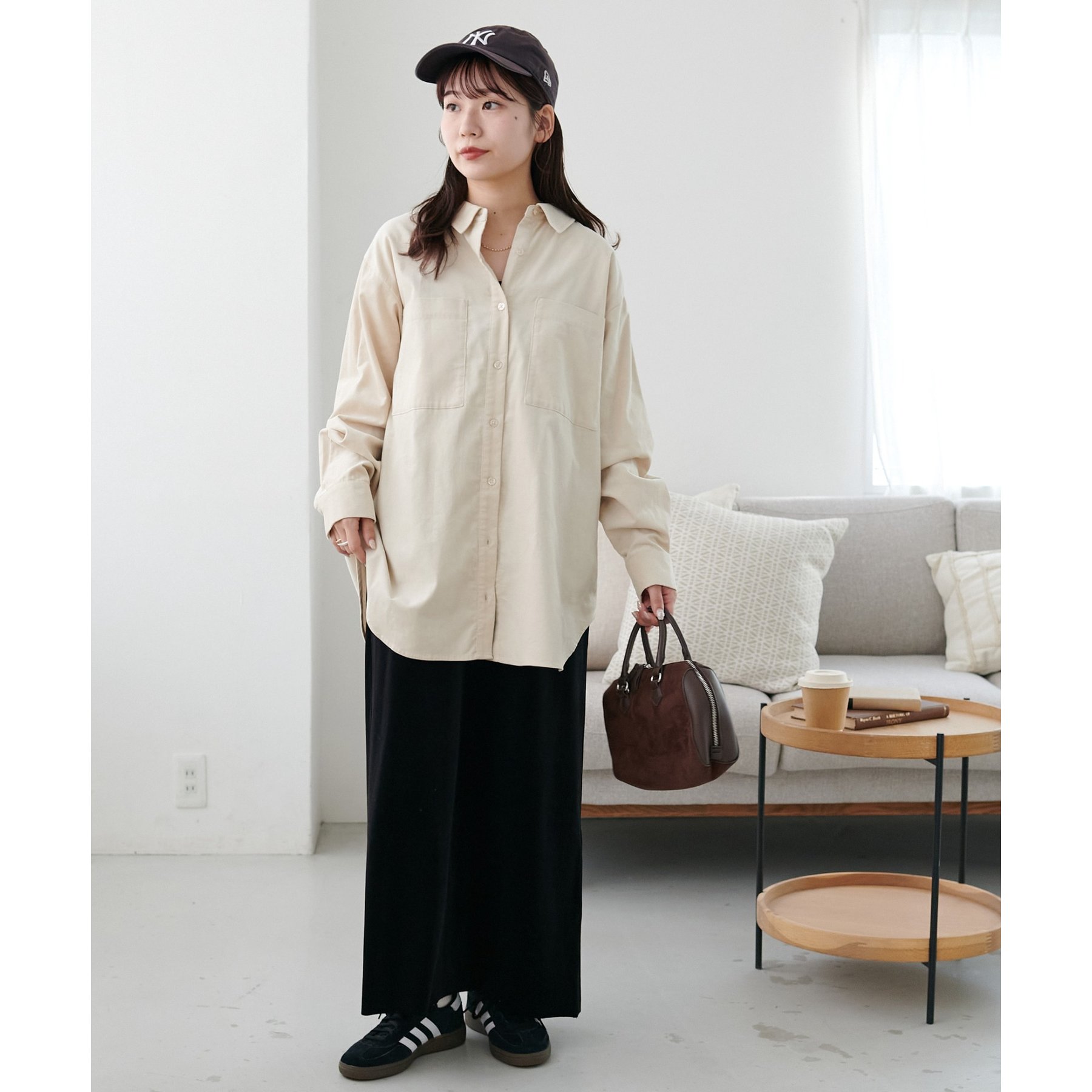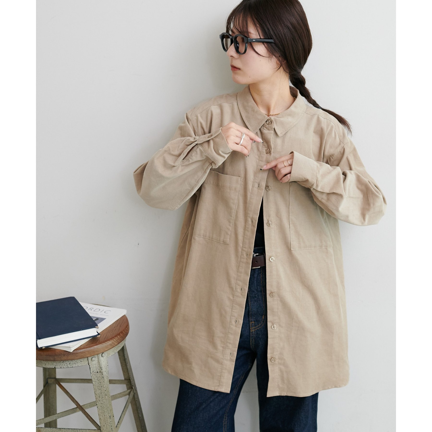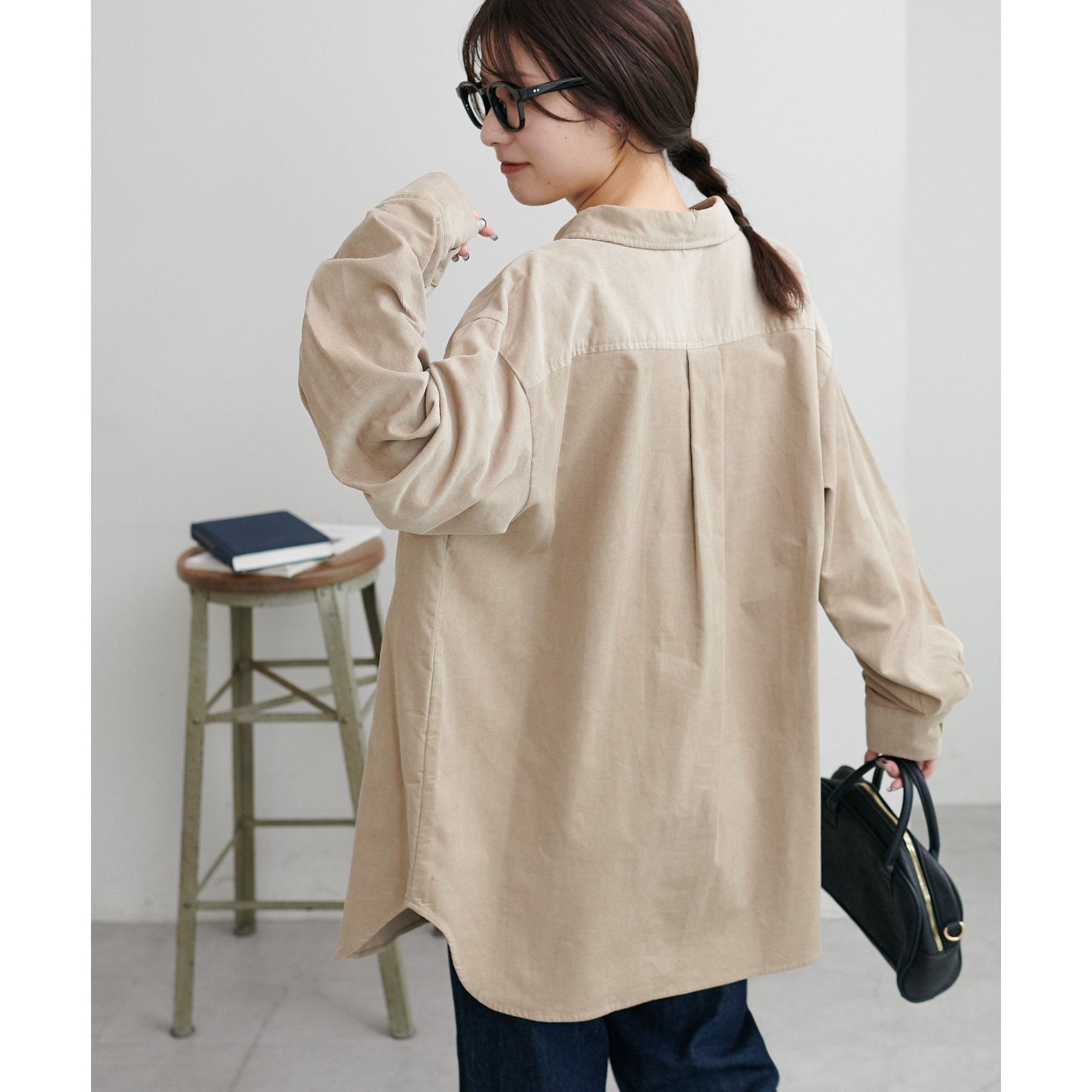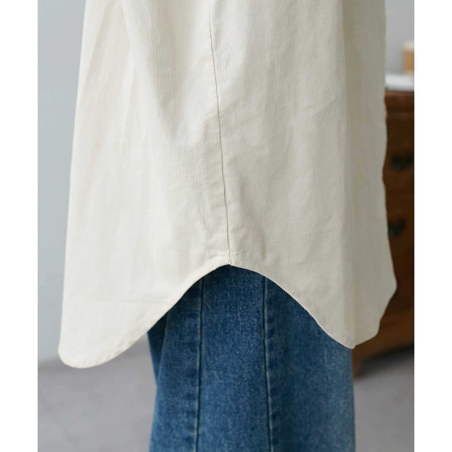 153cmスタッフ:長めの着丈ですが、サイドがラウンドカットになっていたり、細かいコーデュロイの縦ラインが入っていることですっきりとした雰囲気のある一枚です。