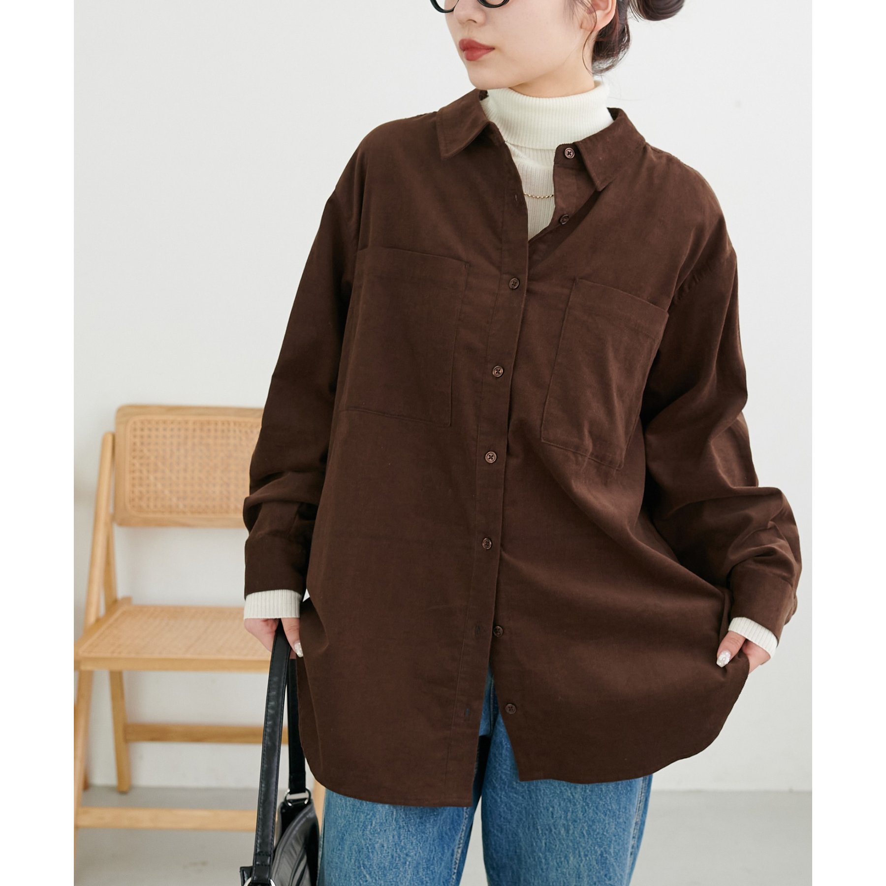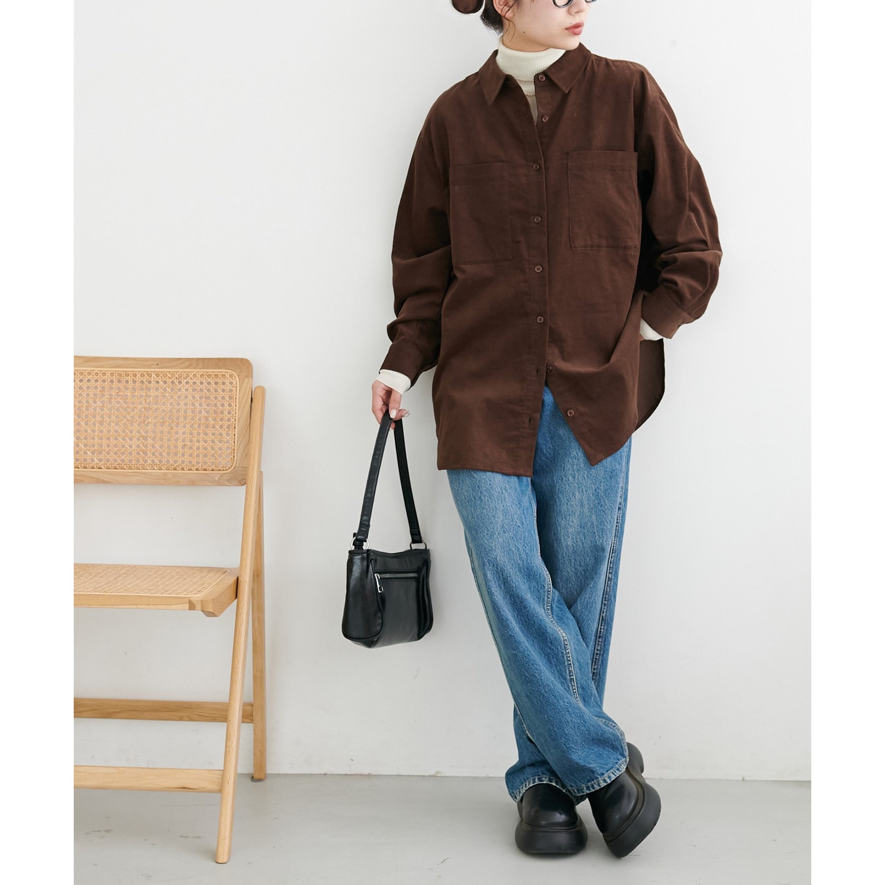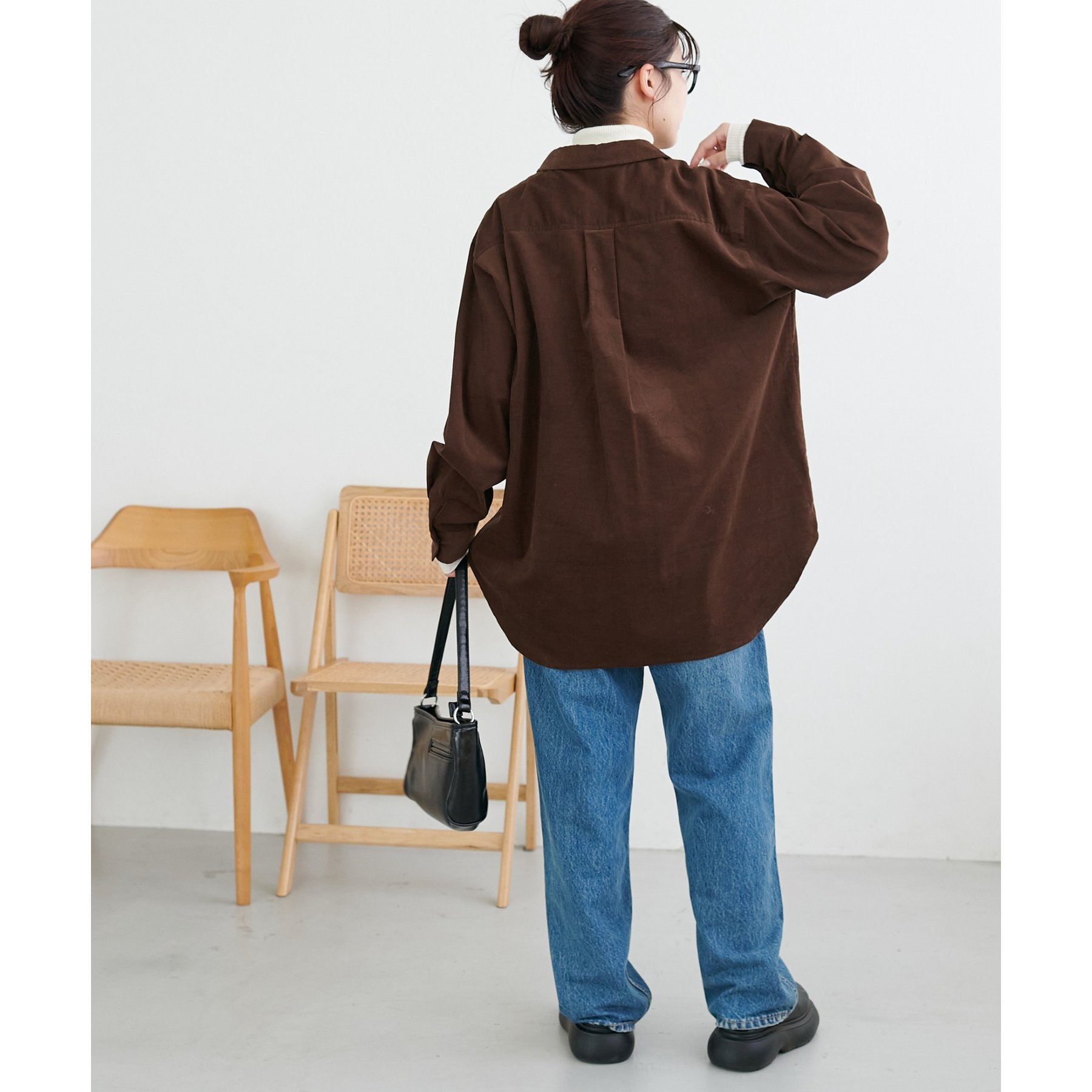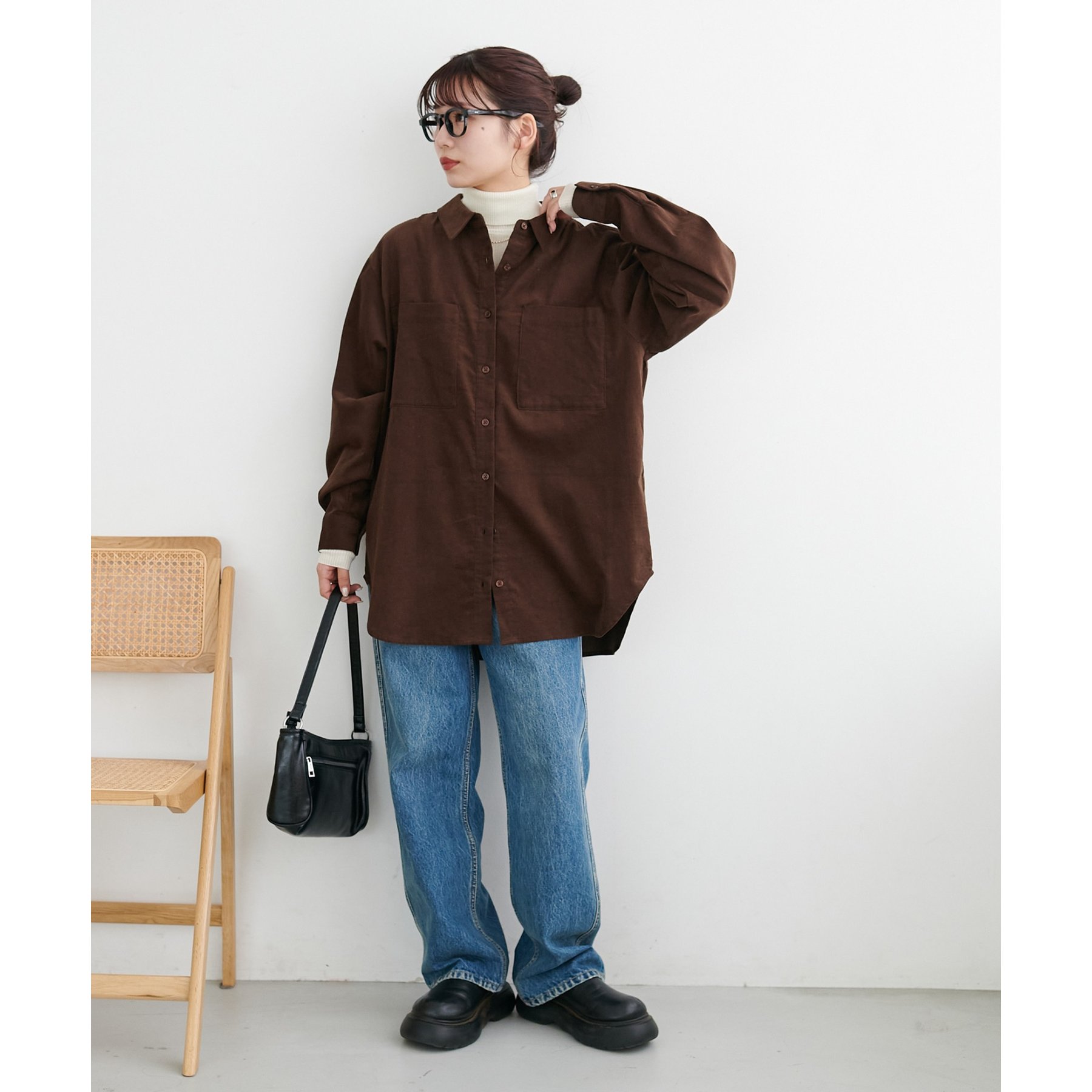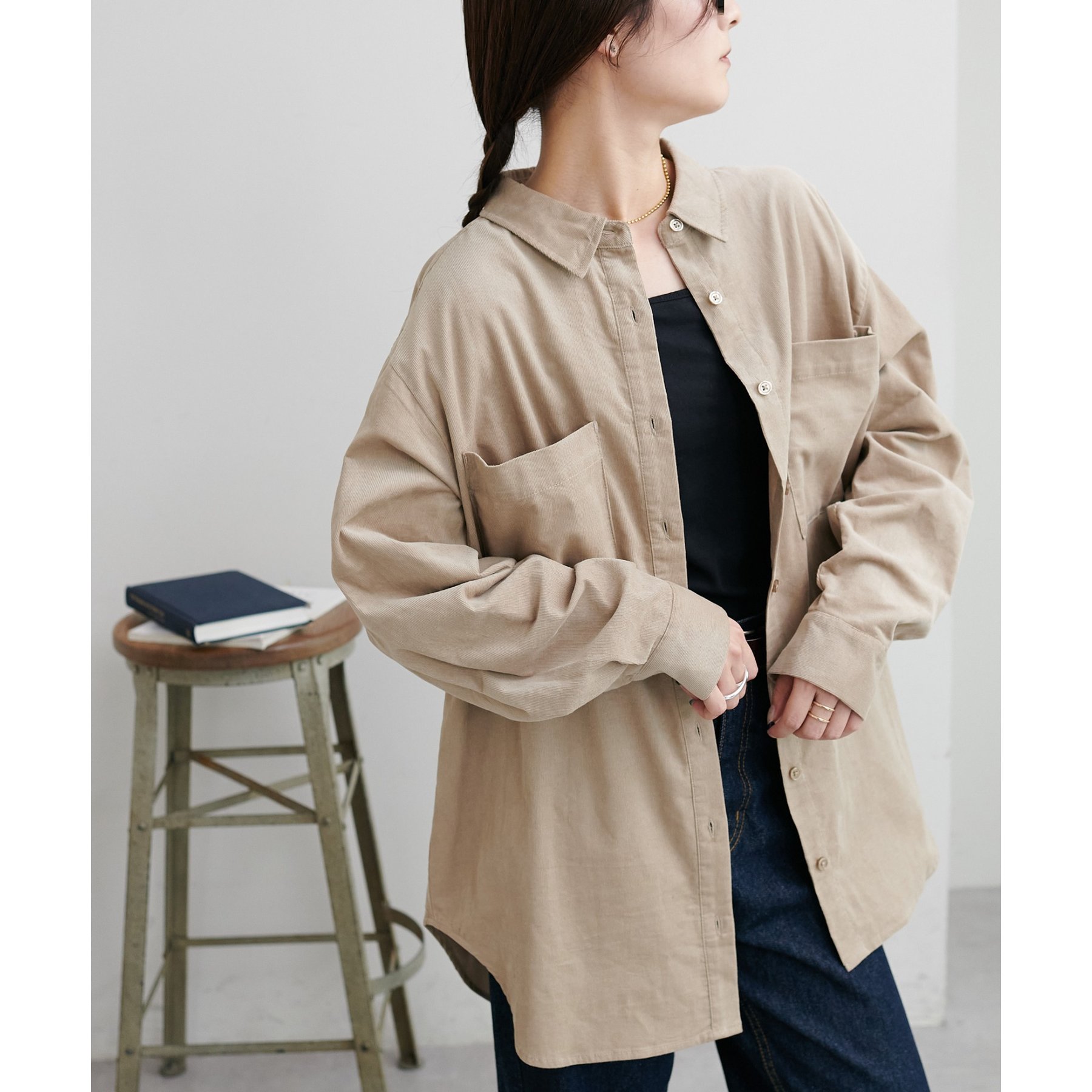 153cmスタッフ:長めの着丈ですが、サイドがラウンドカットになっていたり、細かいコーデュロイの縦ラインが入っていることですっきりとした雰囲気のある一枚です。