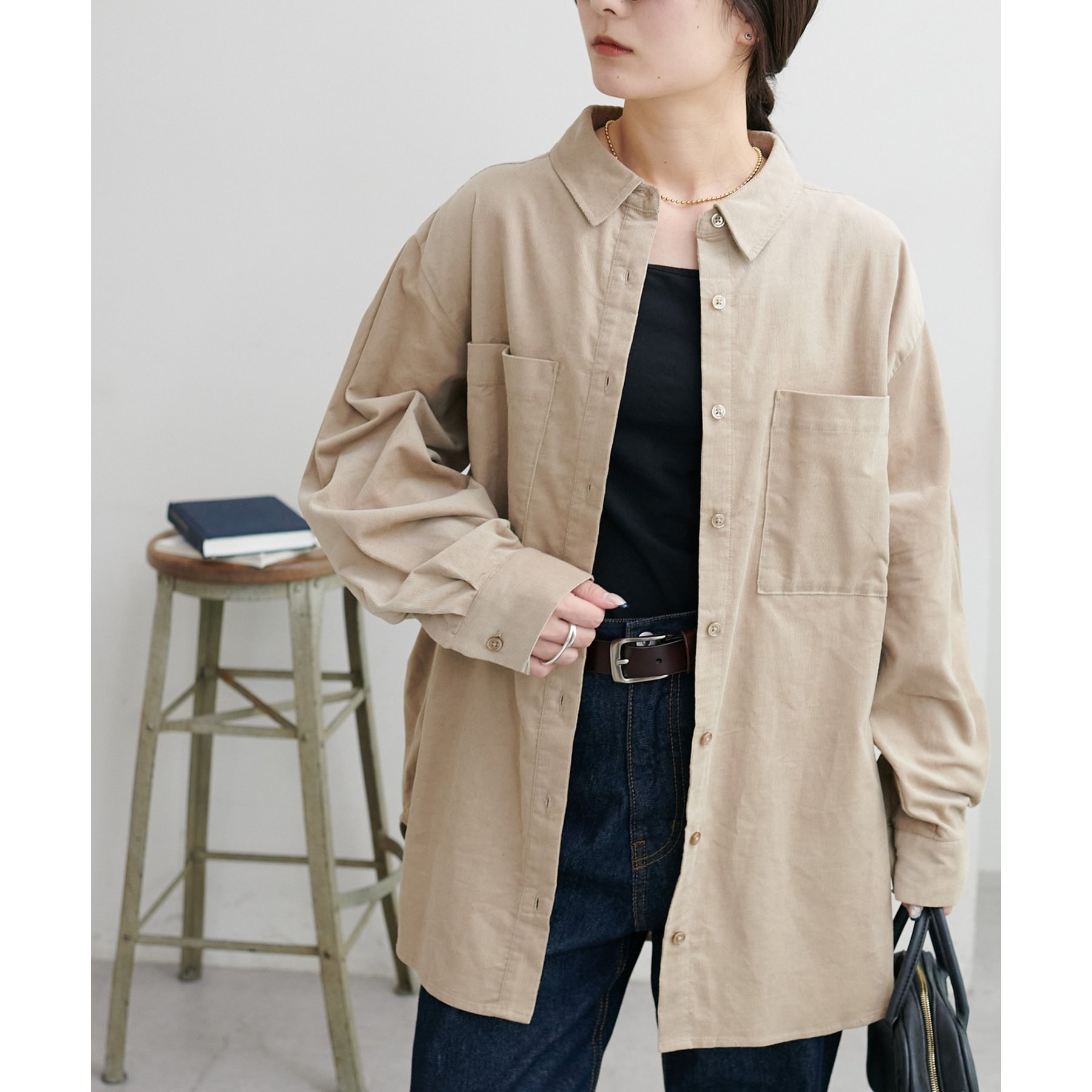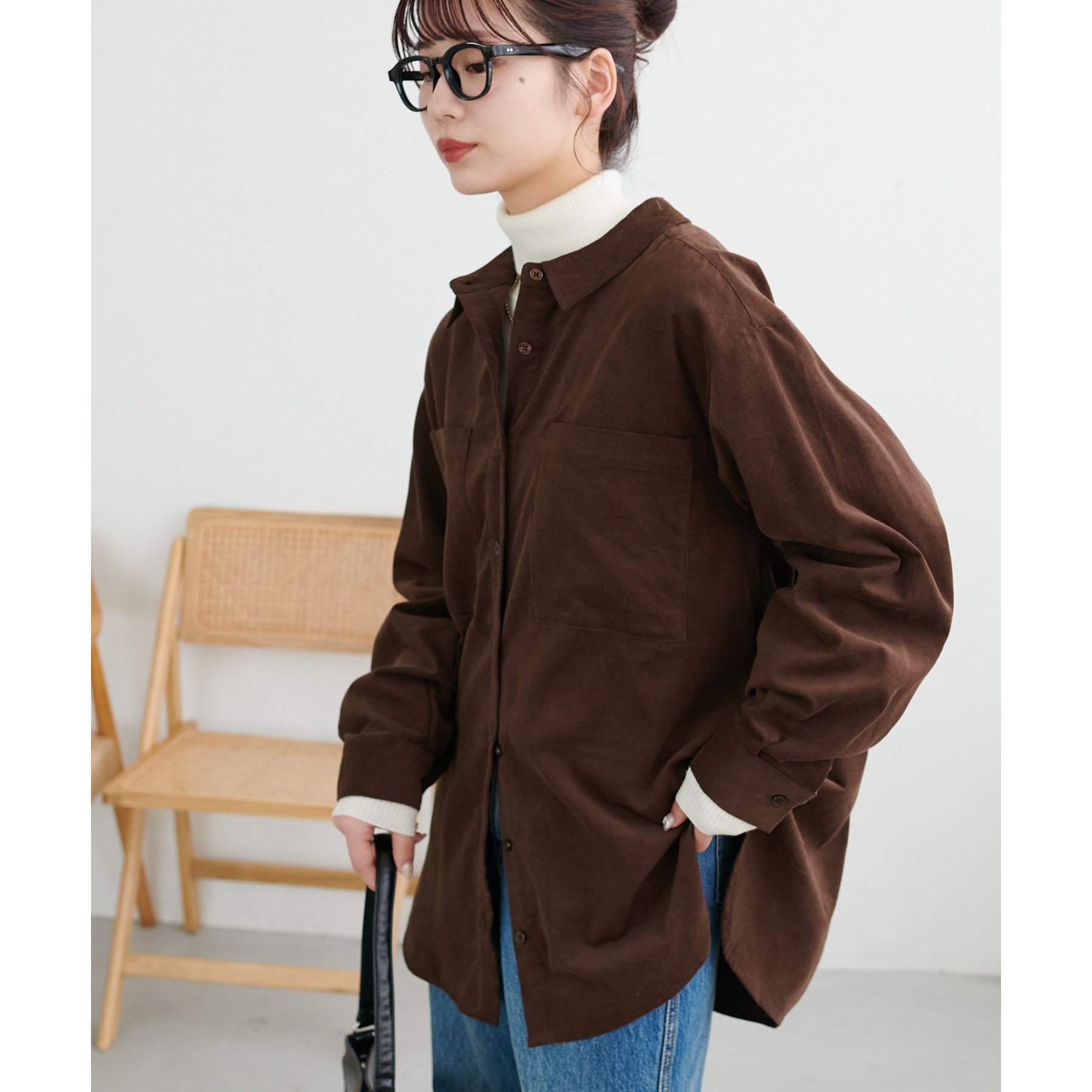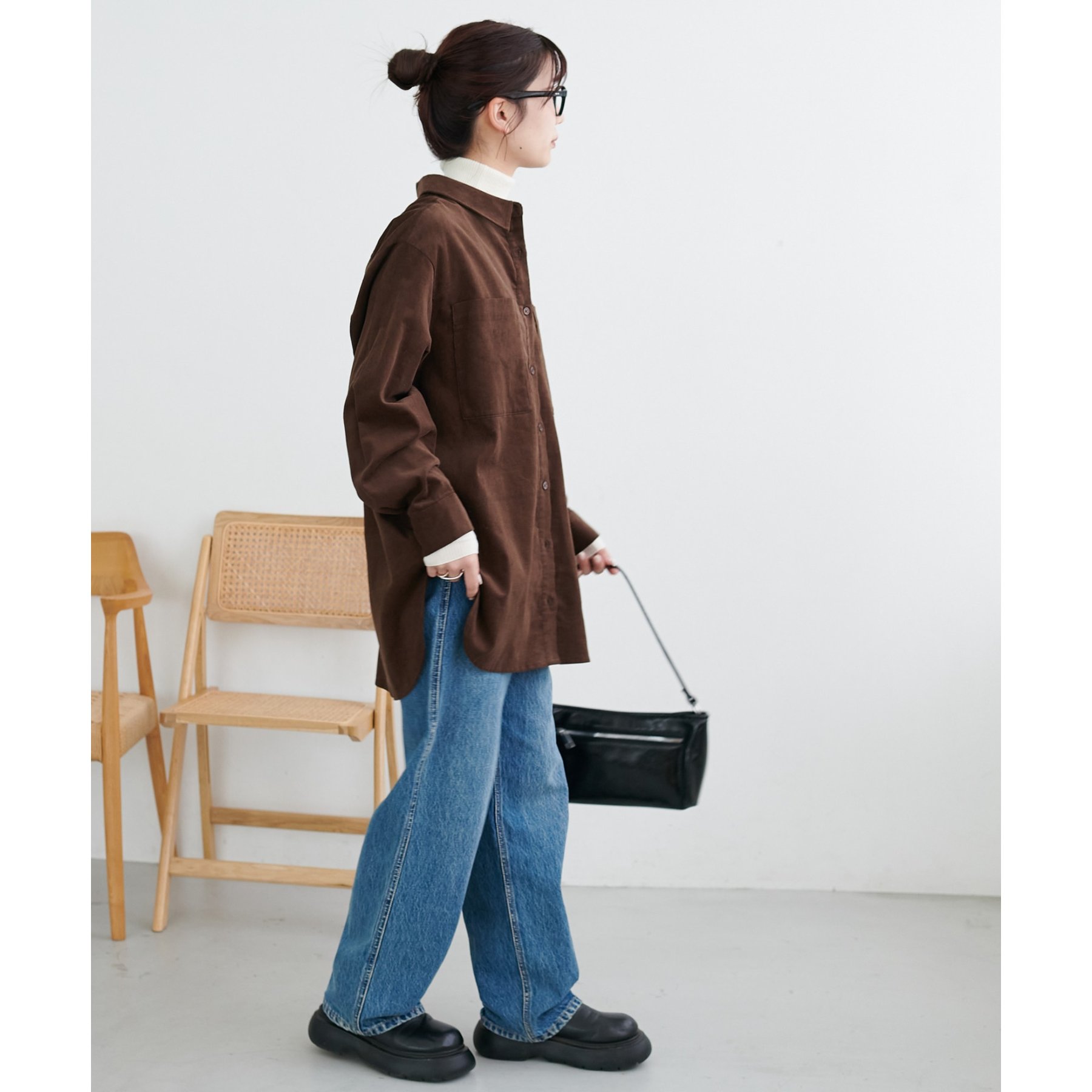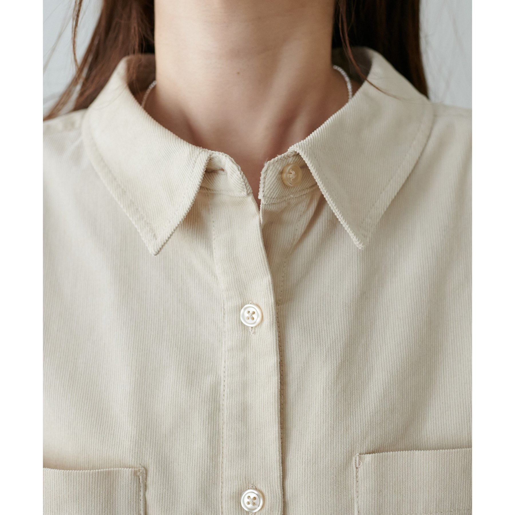 153cmスタッフ:長めの着丈ですが、サイドがラウンドカットになっていたり、細かいコーデュロイの縦ラインが入っていることですっきりとした雰囲気のある一枚です。