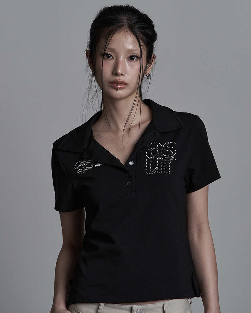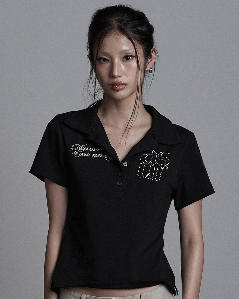 BASIC HOTFIX COLLAR T-SHIRT BLACK
