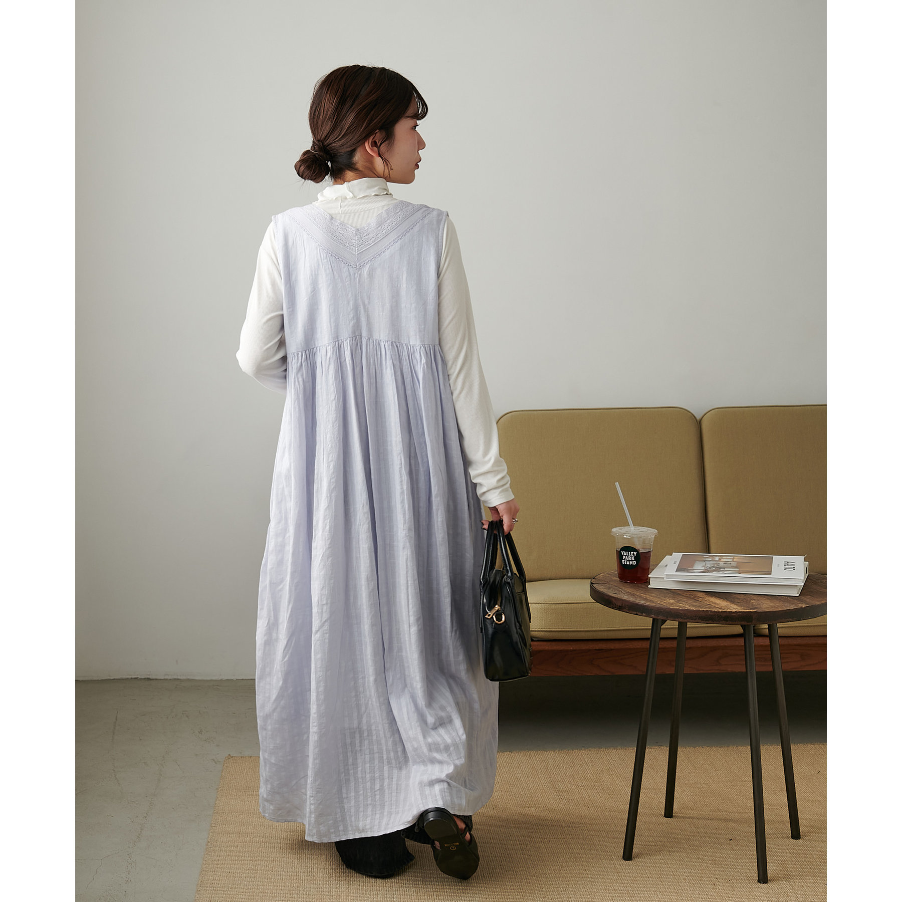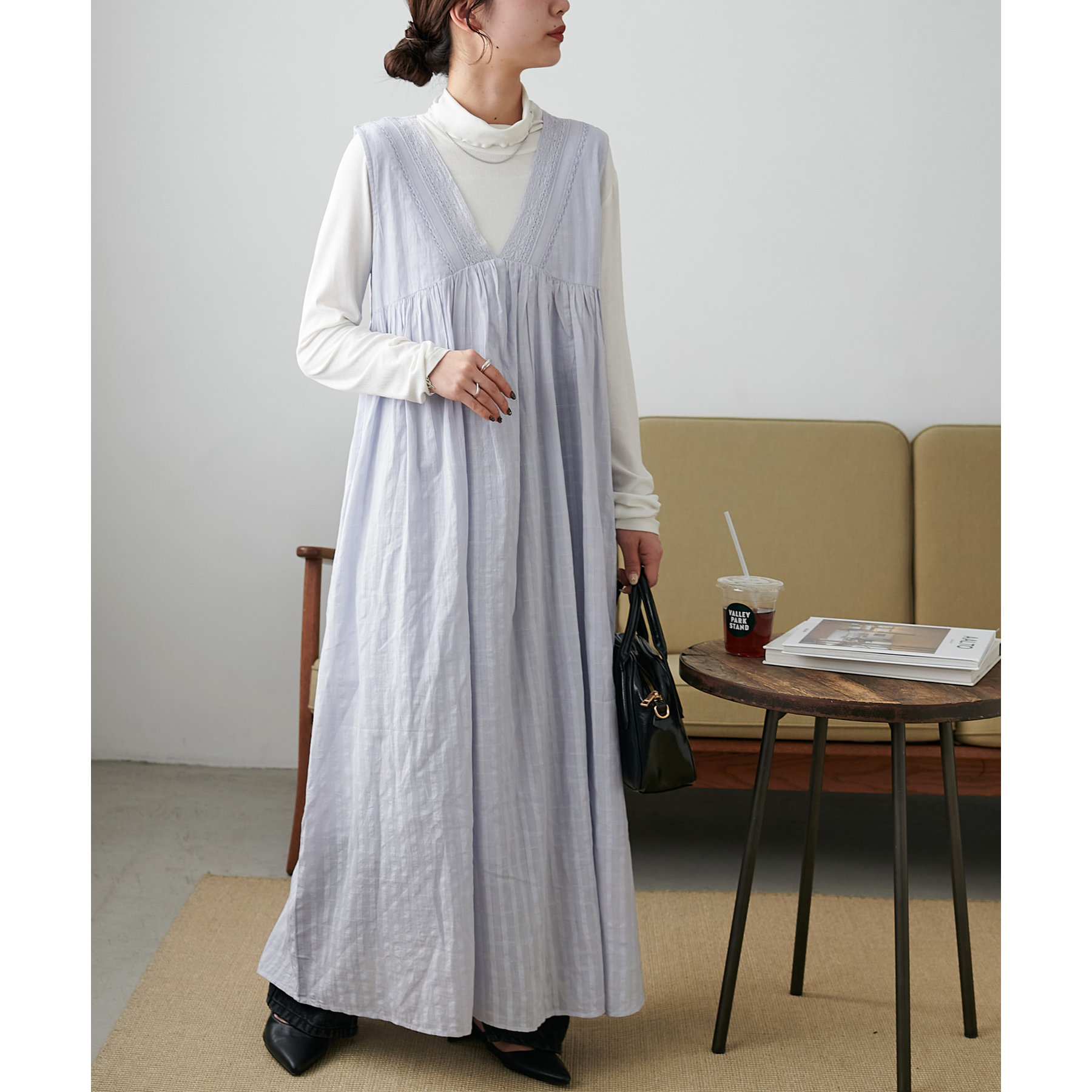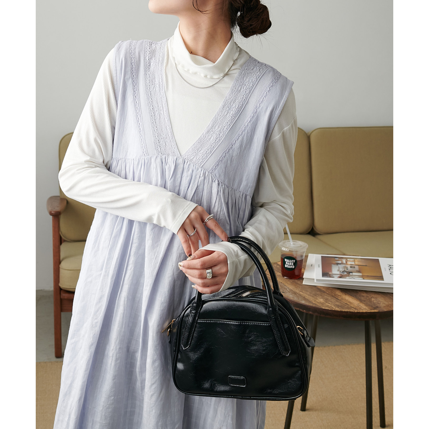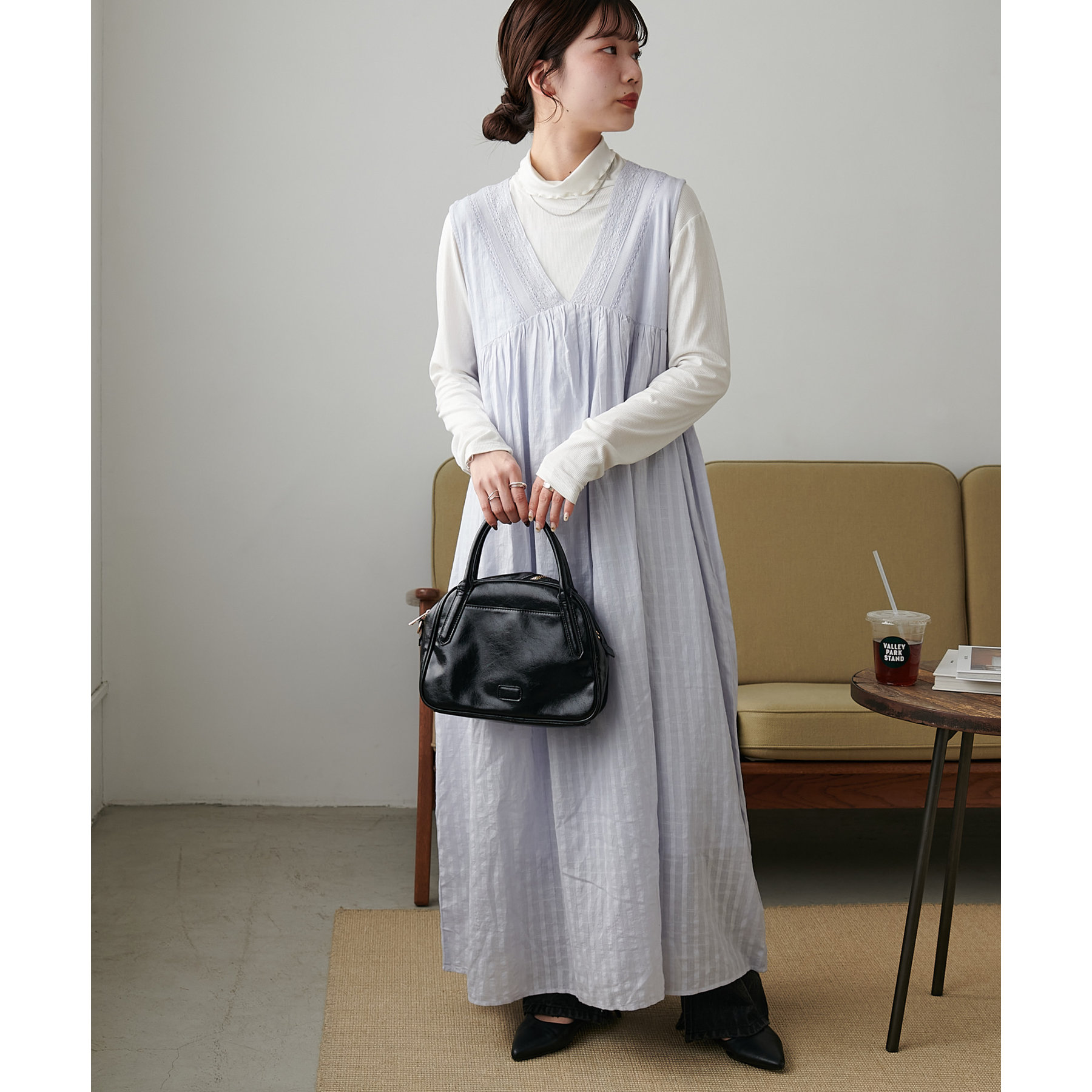 低身長の方は小物で色味やカジュアルさをプラスしていただくのがおすすめです◎