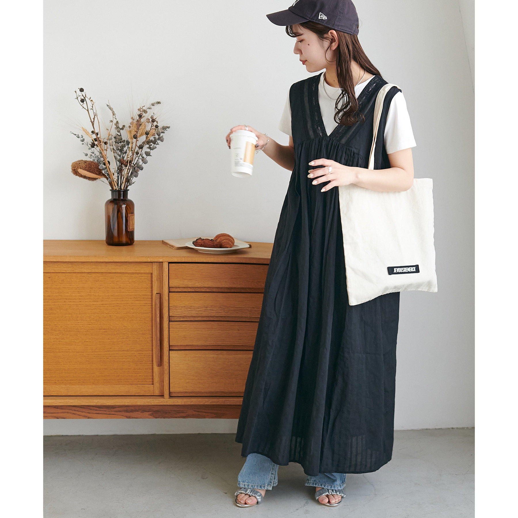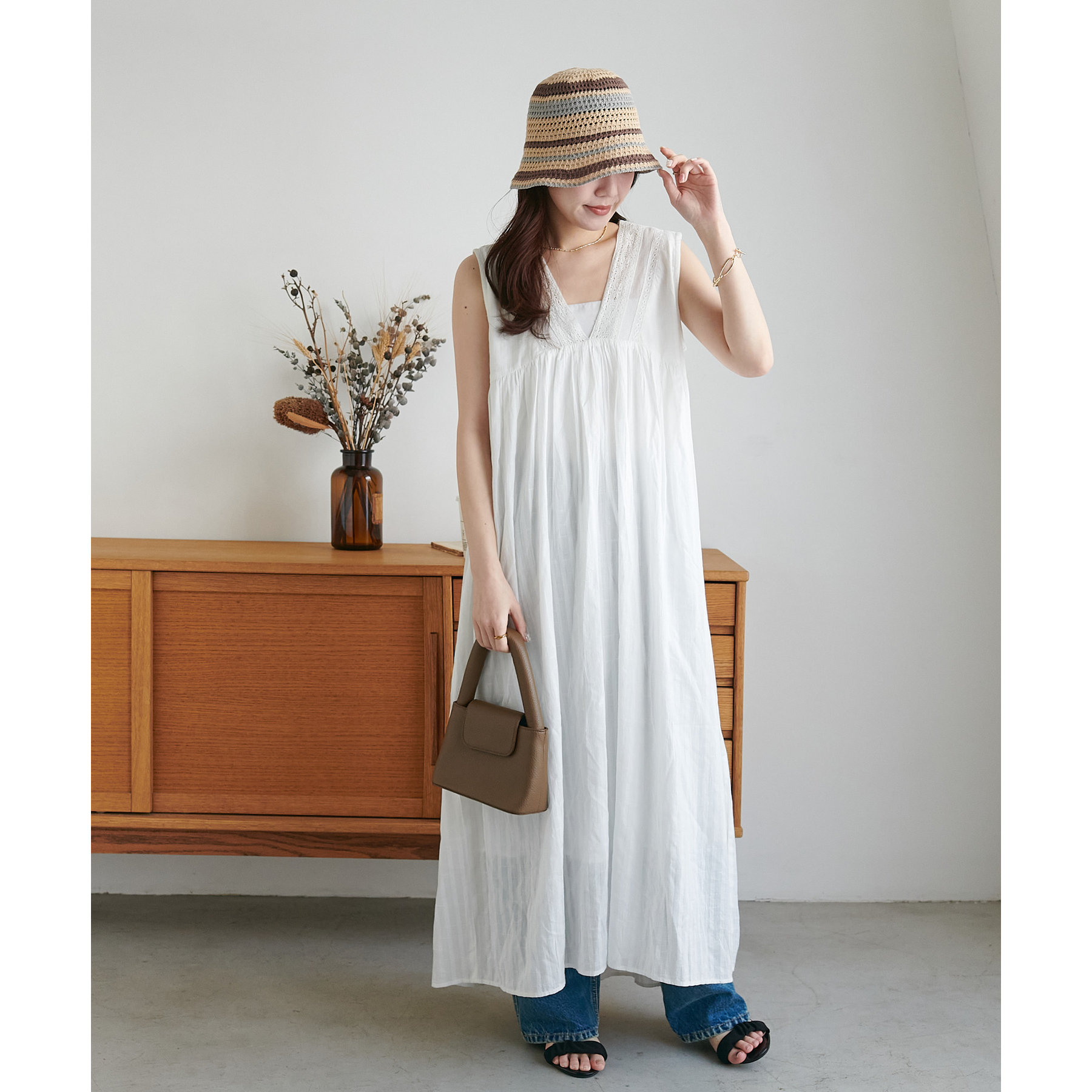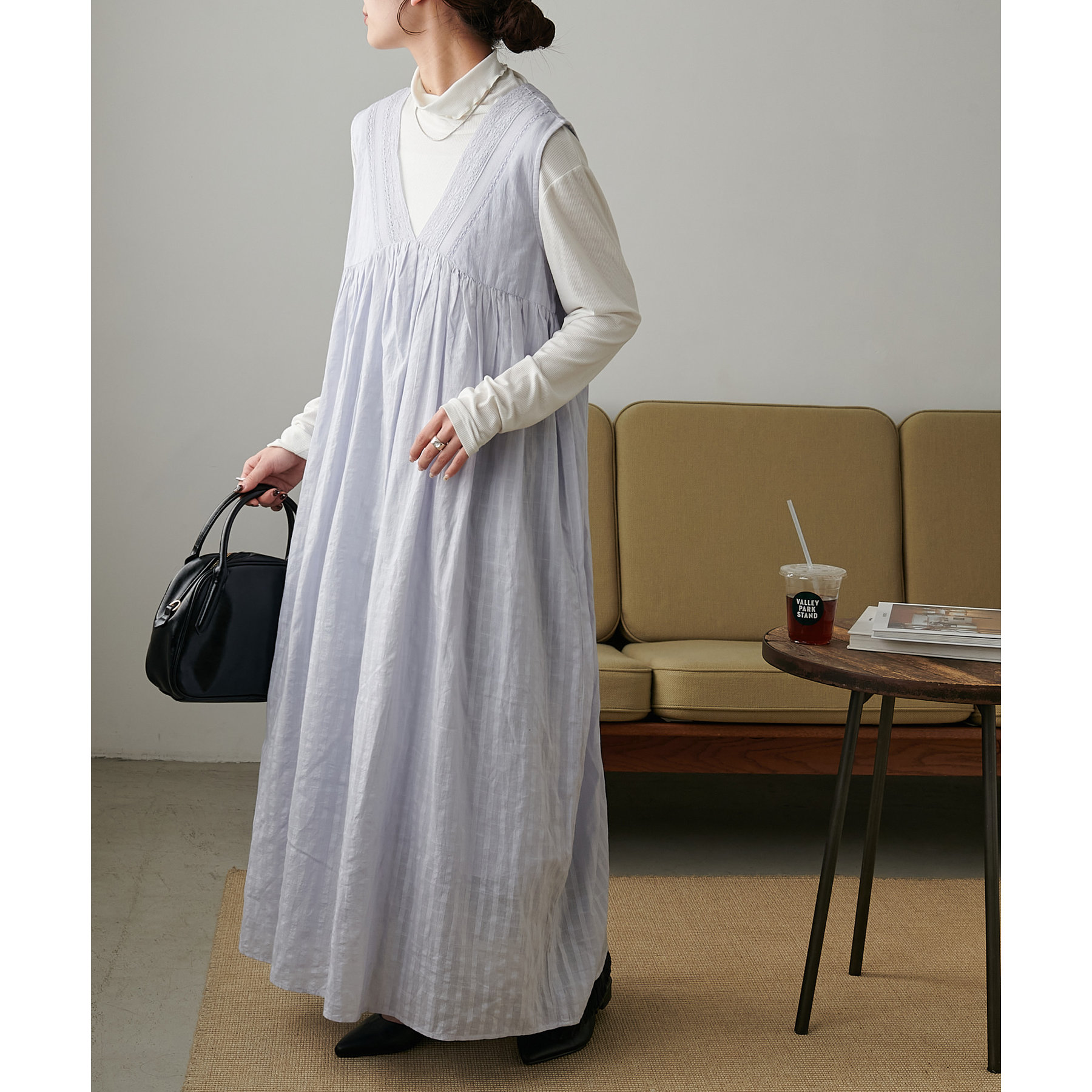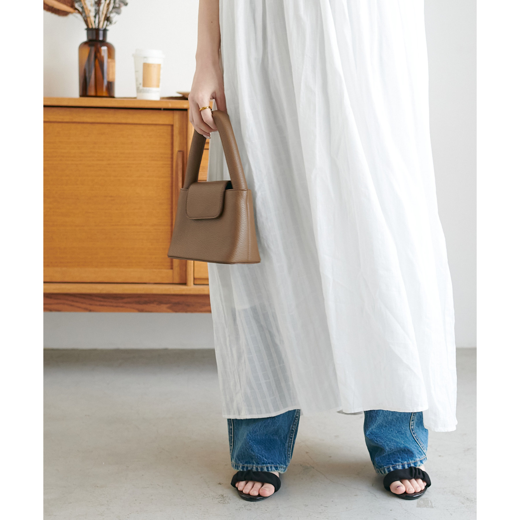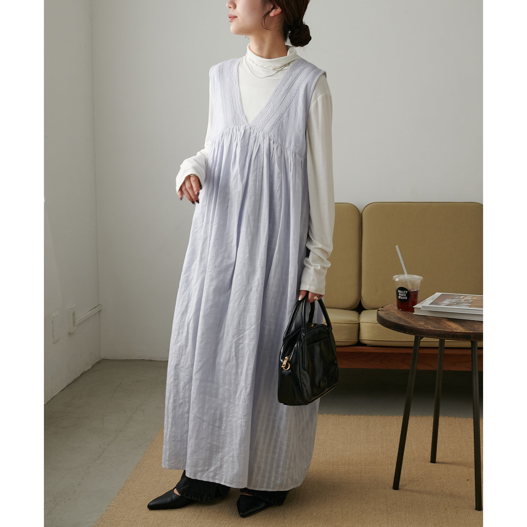 低身長の方は小物で色味やカジュアルさをプラスしていただくのがおすすめです◎