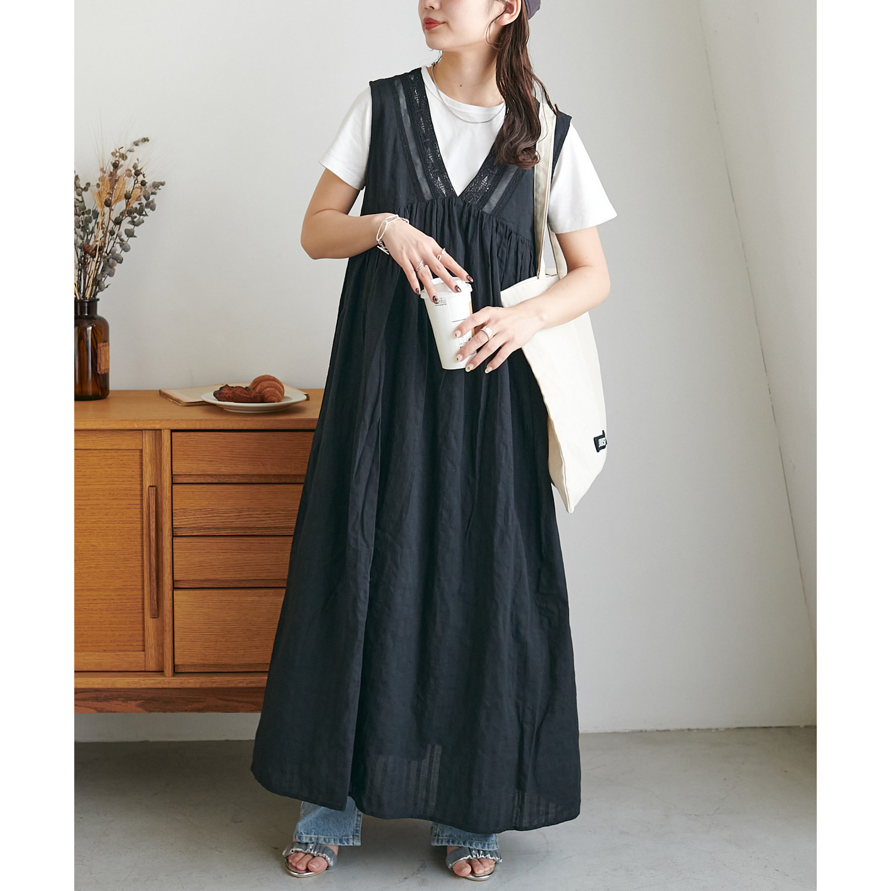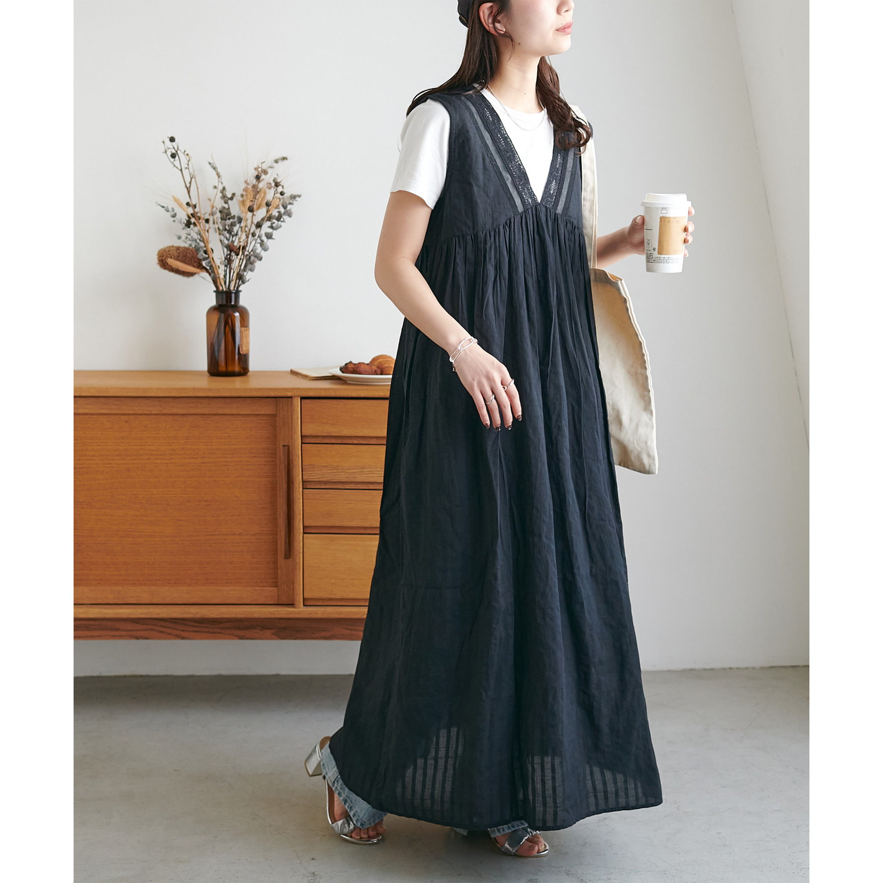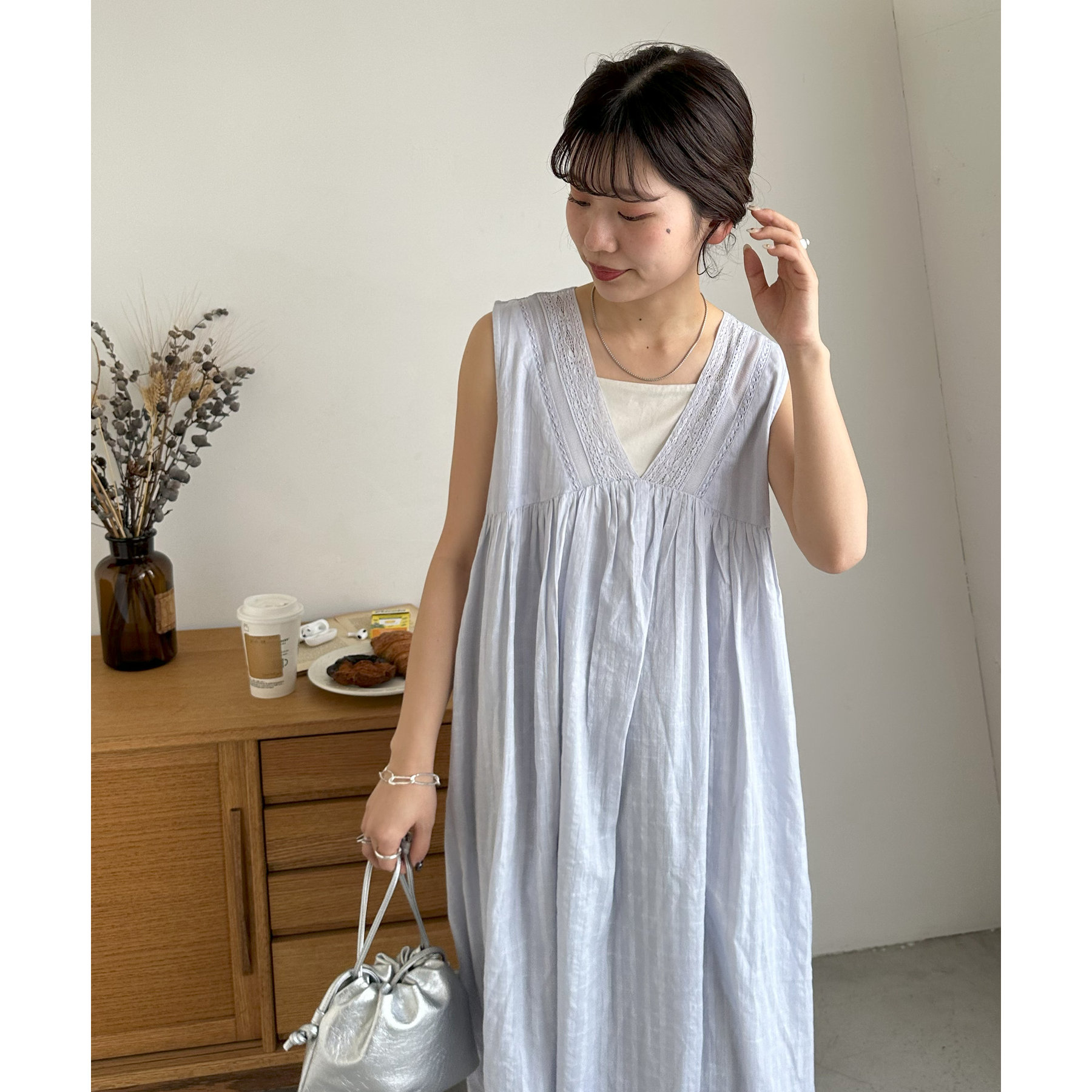 胸元あたりに切替が入りAラインに広がるシルエットは、歩くたびに軽やかな雰囲気をプラス!