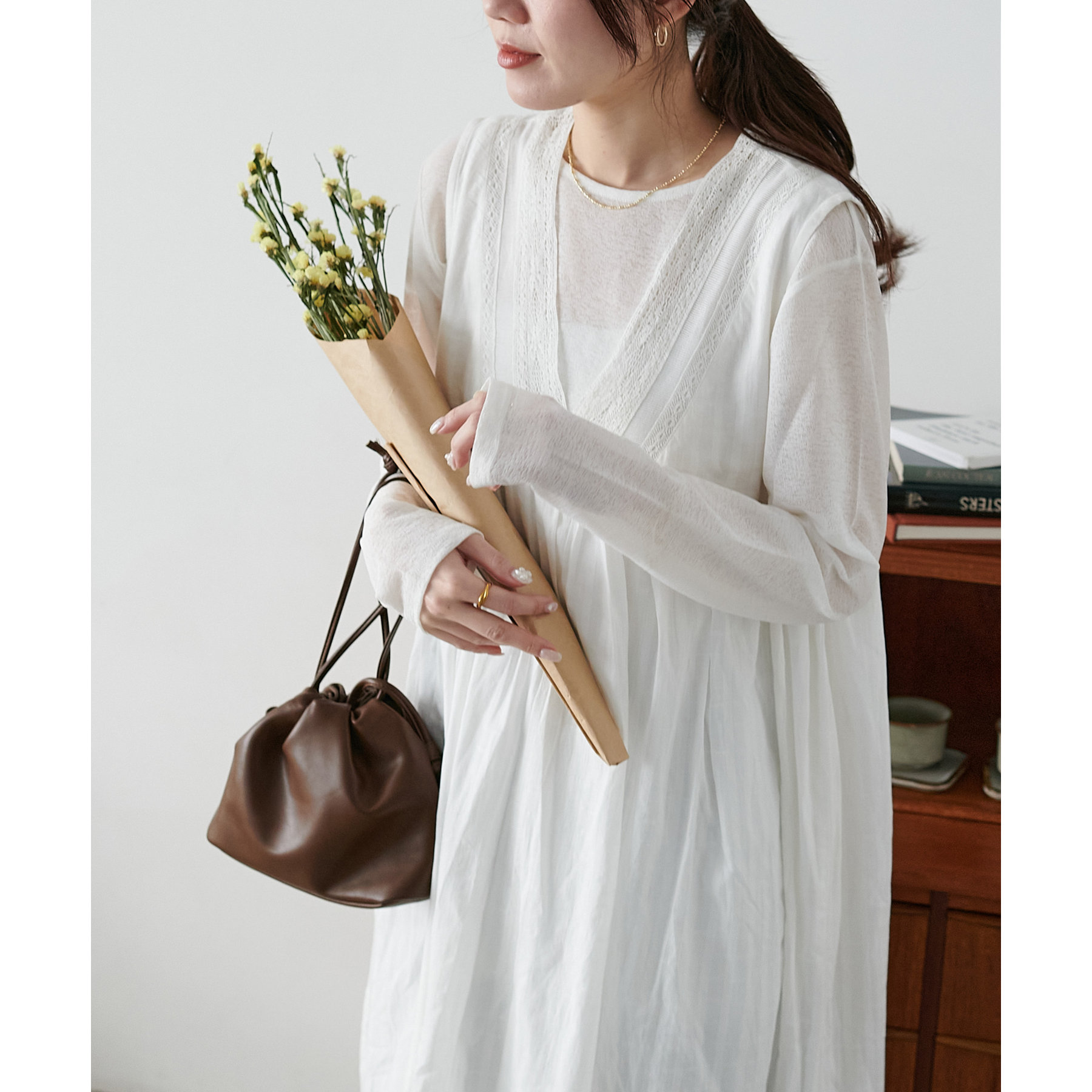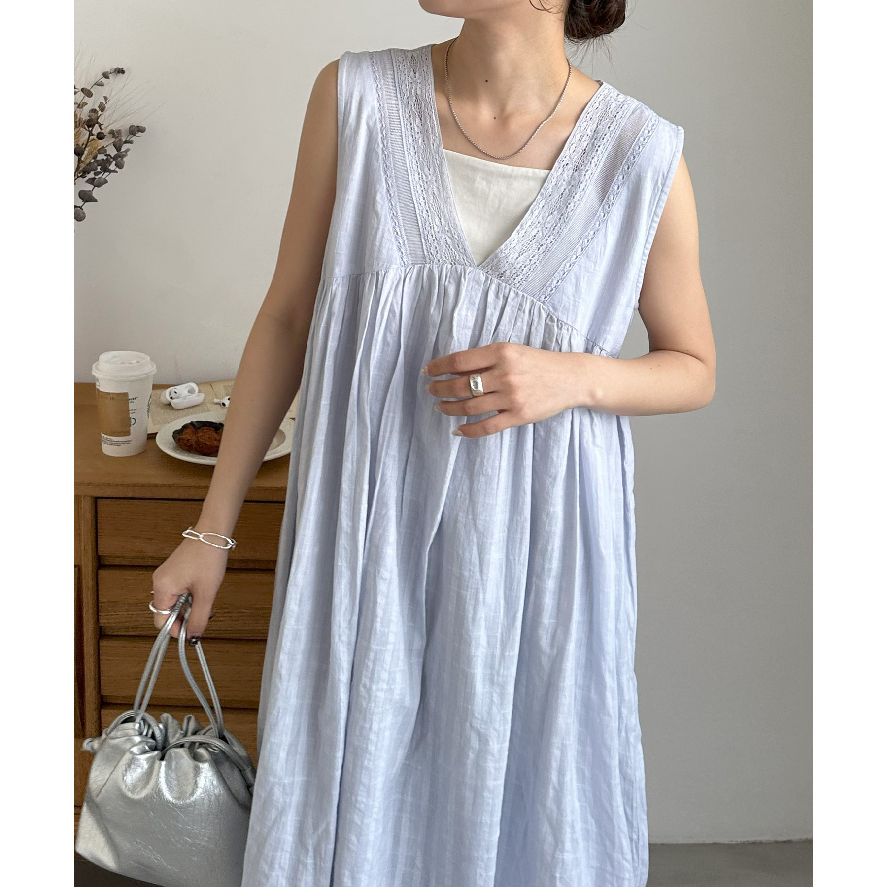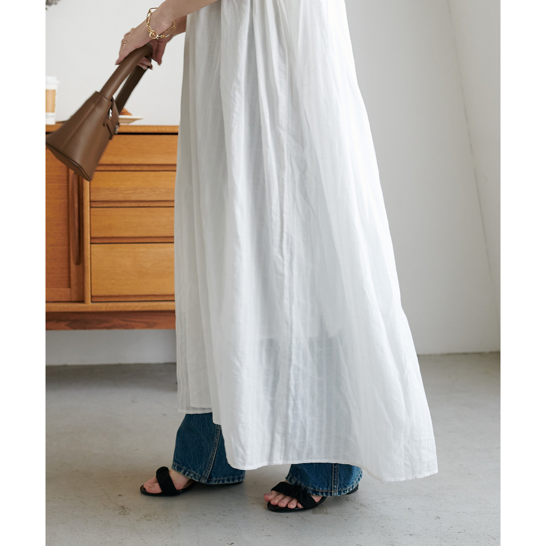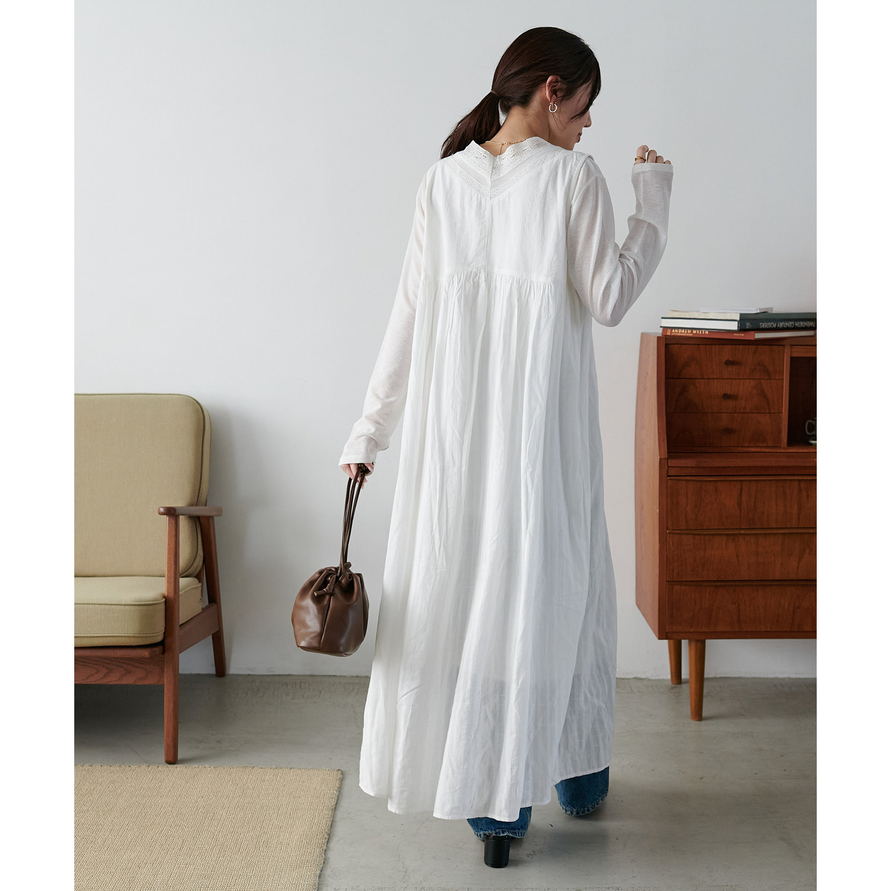胸元あたりに切替が入りAラインに広がるシルエットは、歩くたびに軽やかな雰囲気をプラス!