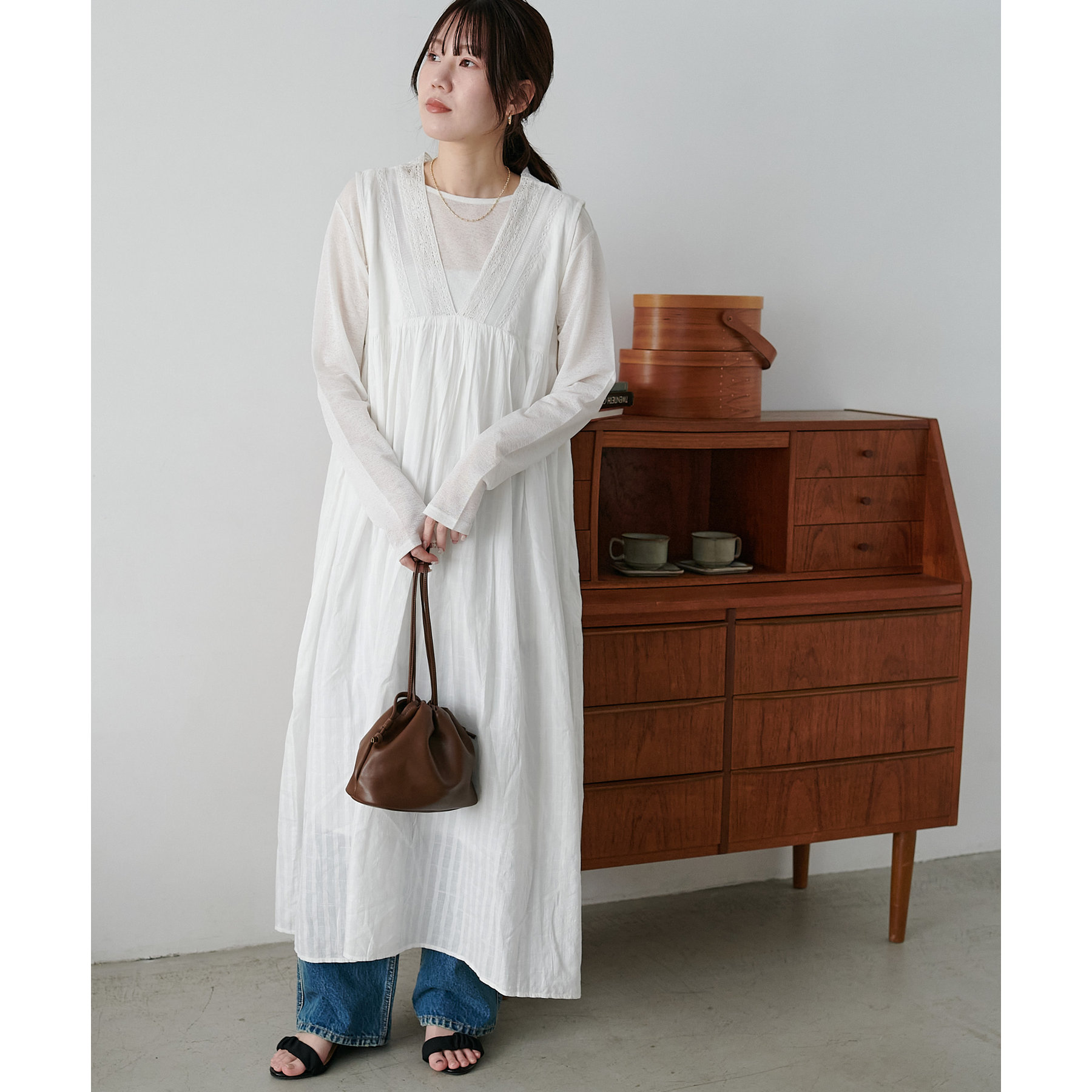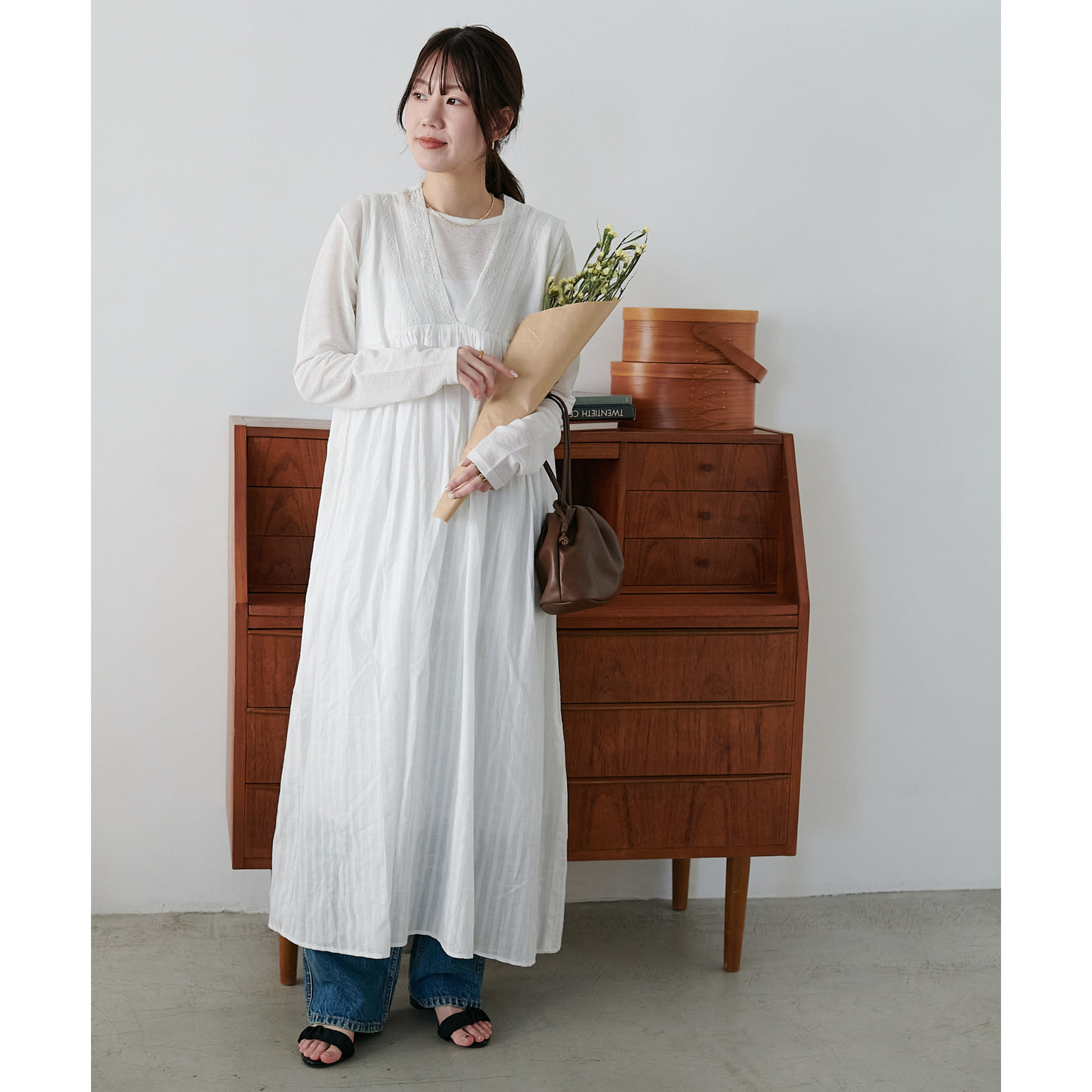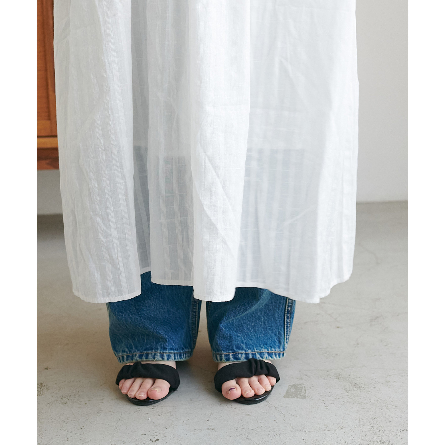 155cmスタッフ:ロング丈のワンピースですが、足元には透け感があるので重たく見えにくいです!