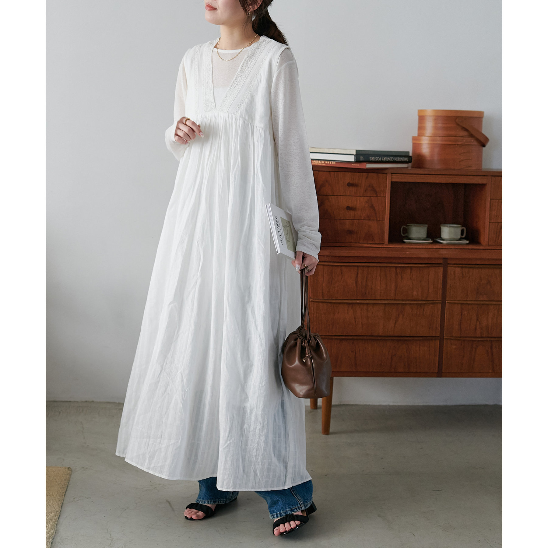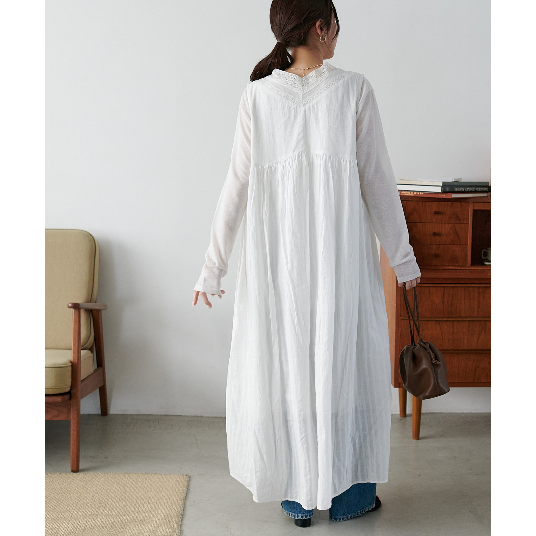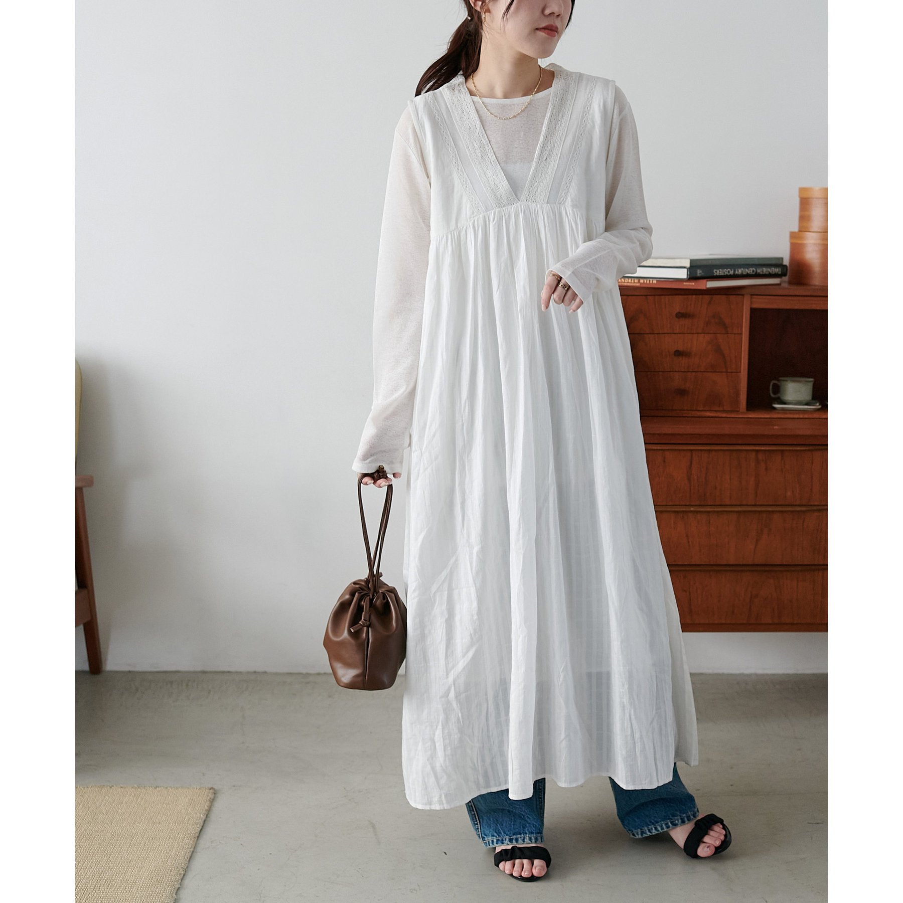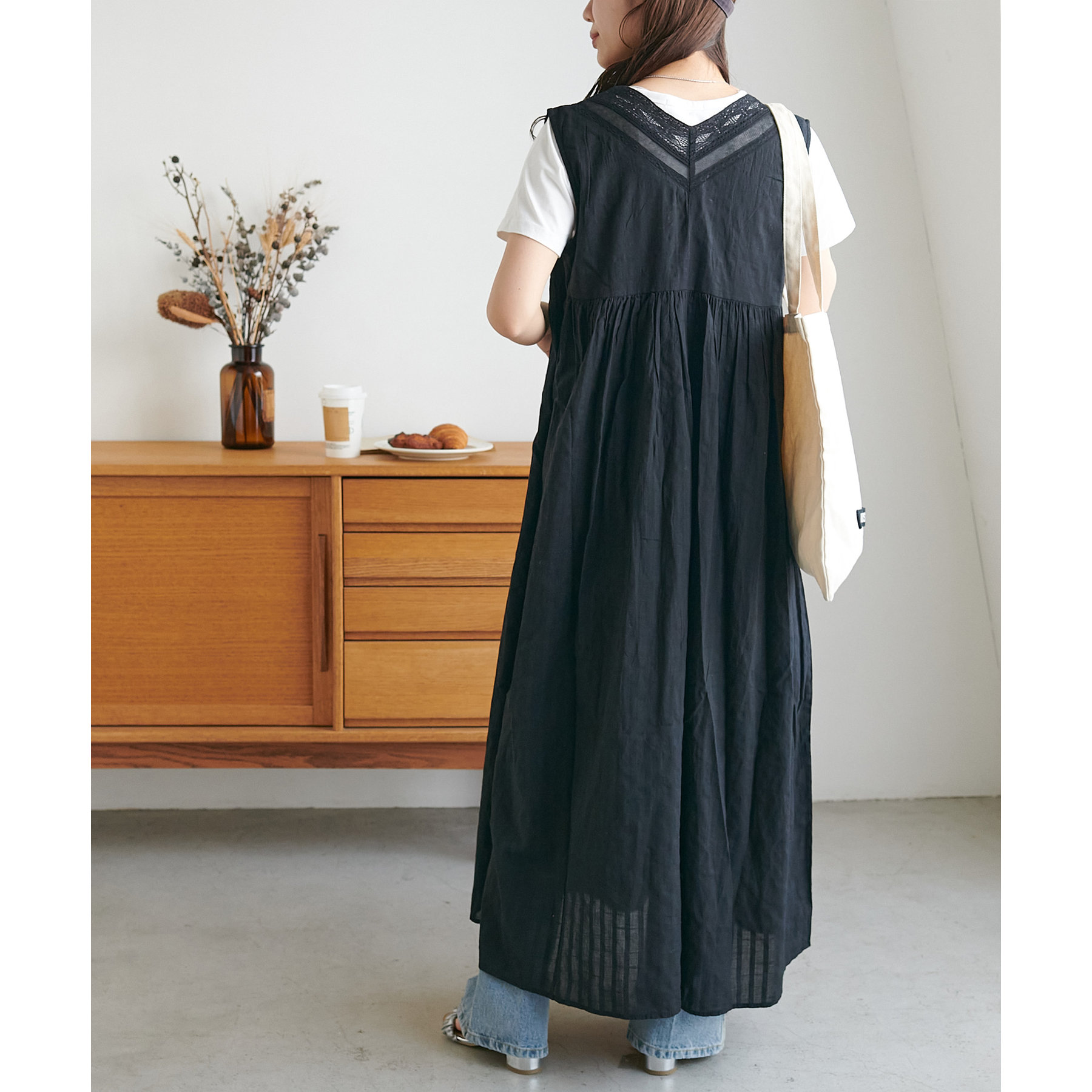 155cmスタッフ:ロング丈のワンピースですが、足元には透け感があるので重たく見えにくいです!