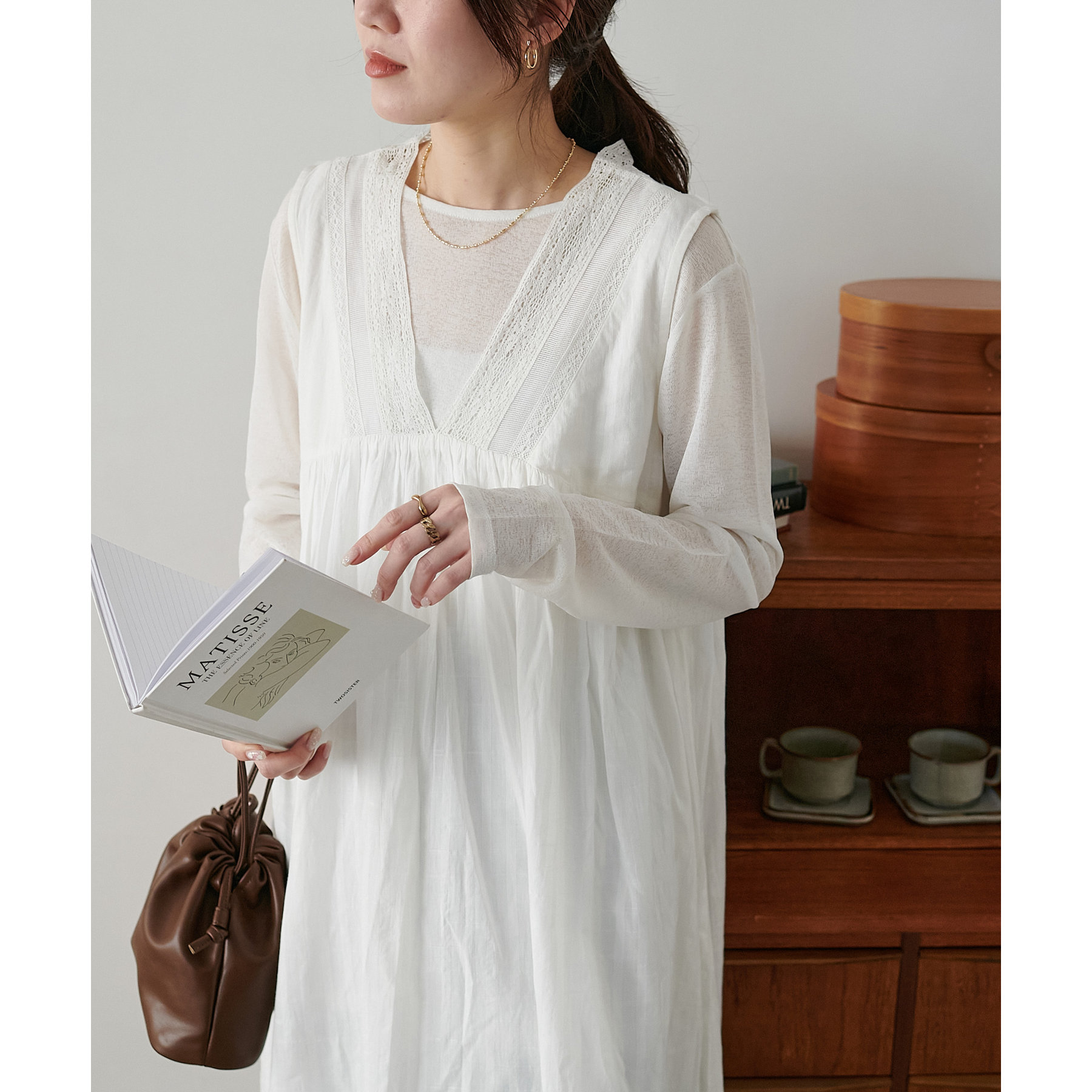 158cmスタッフ:158cmだとボトムスをレイヤードしてもちらっと見えてポイントになります。