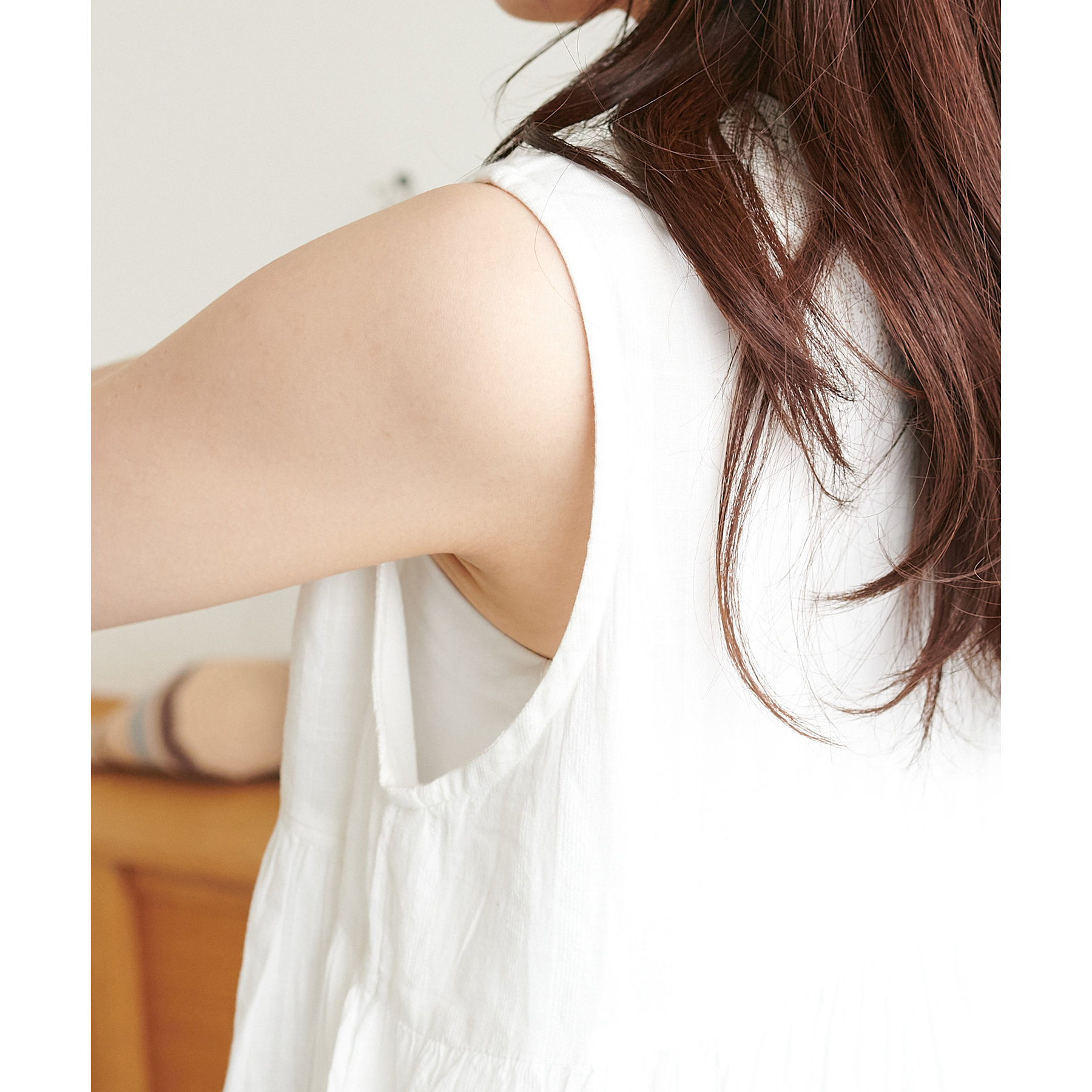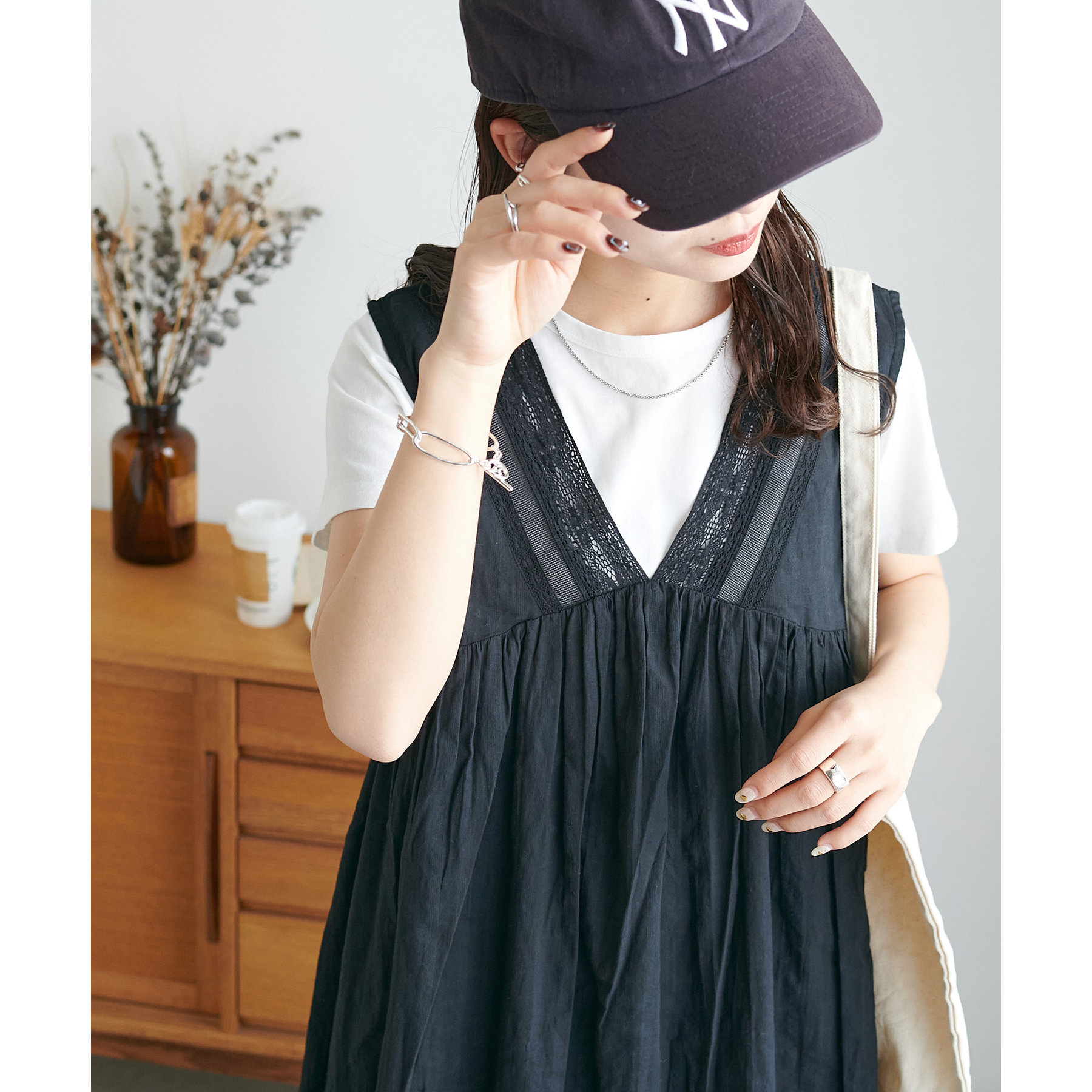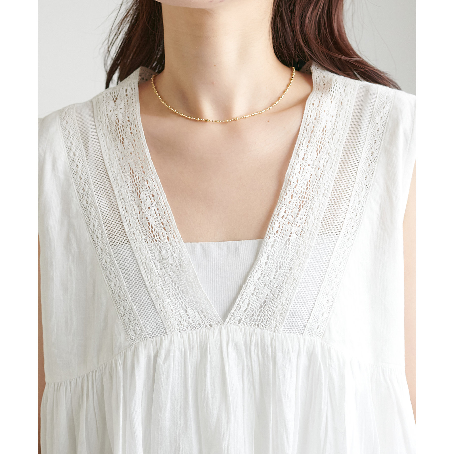 深めののVネックにしたことで、キャミソールからタンクトップまで幅広いインナーとの合わせが楽しめます◎