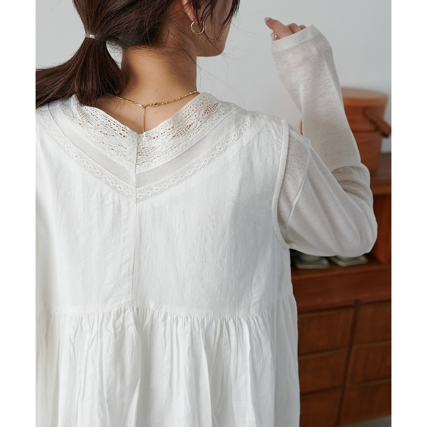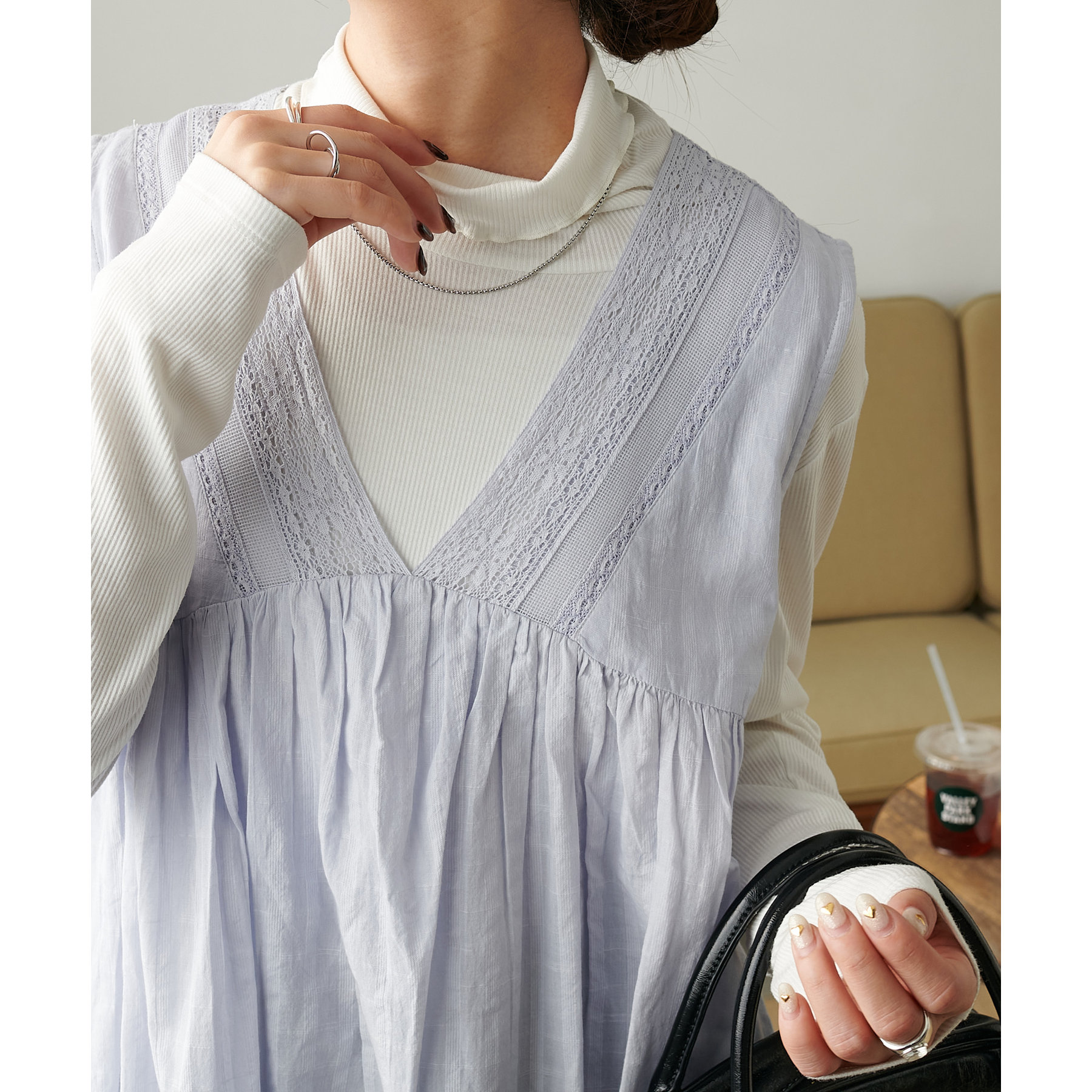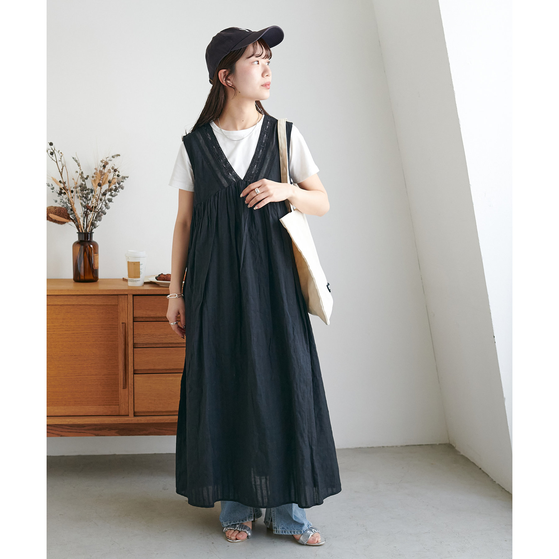 深めののVネックにしたことで、キャミソールからタンクトップまで幅広いインナーとの合わせが楽しめます◎