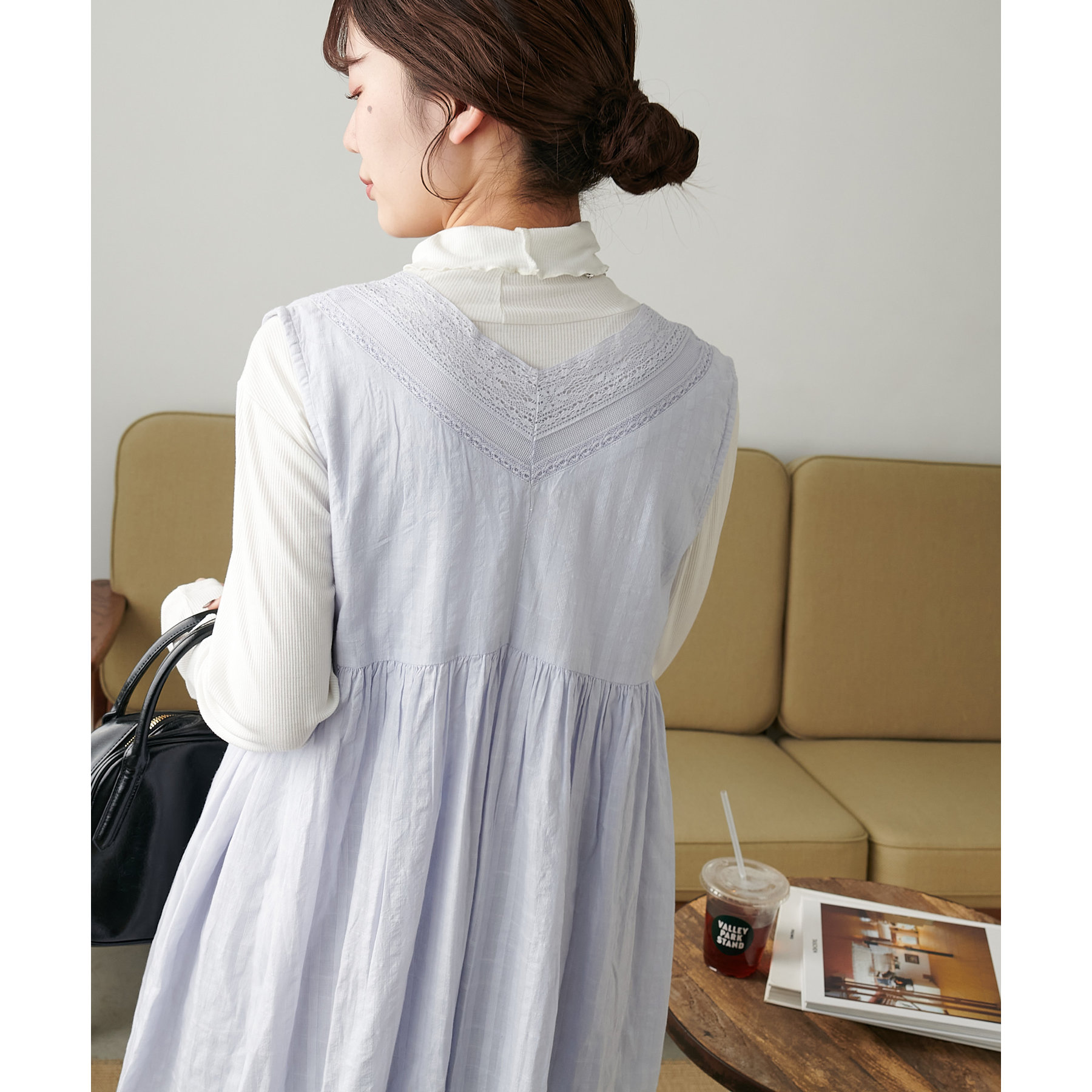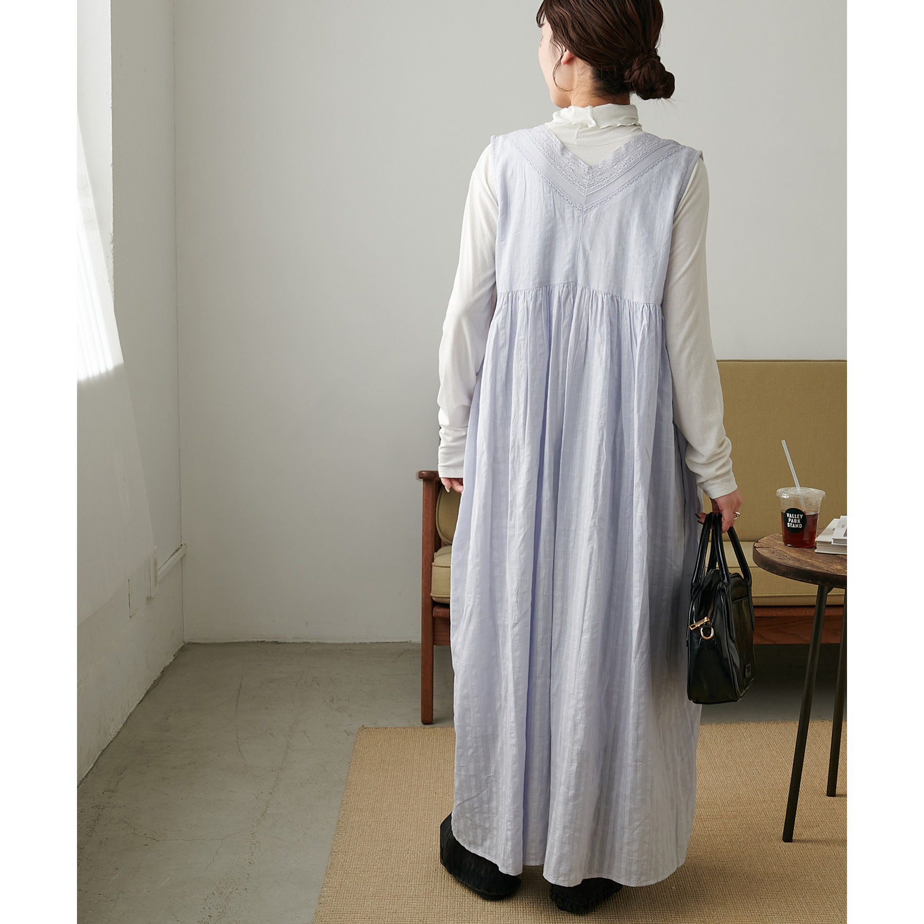 裏地付きなので、一枚でも安心して着用は可能ですがボトムスをレイヤードしたコーデもおすすめです♪
