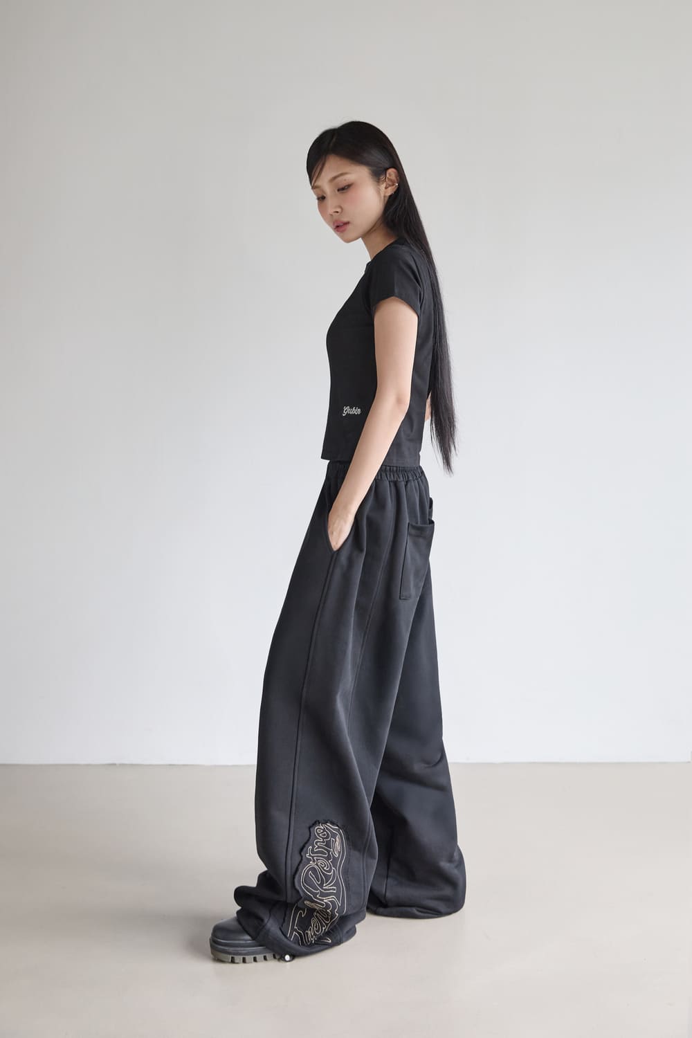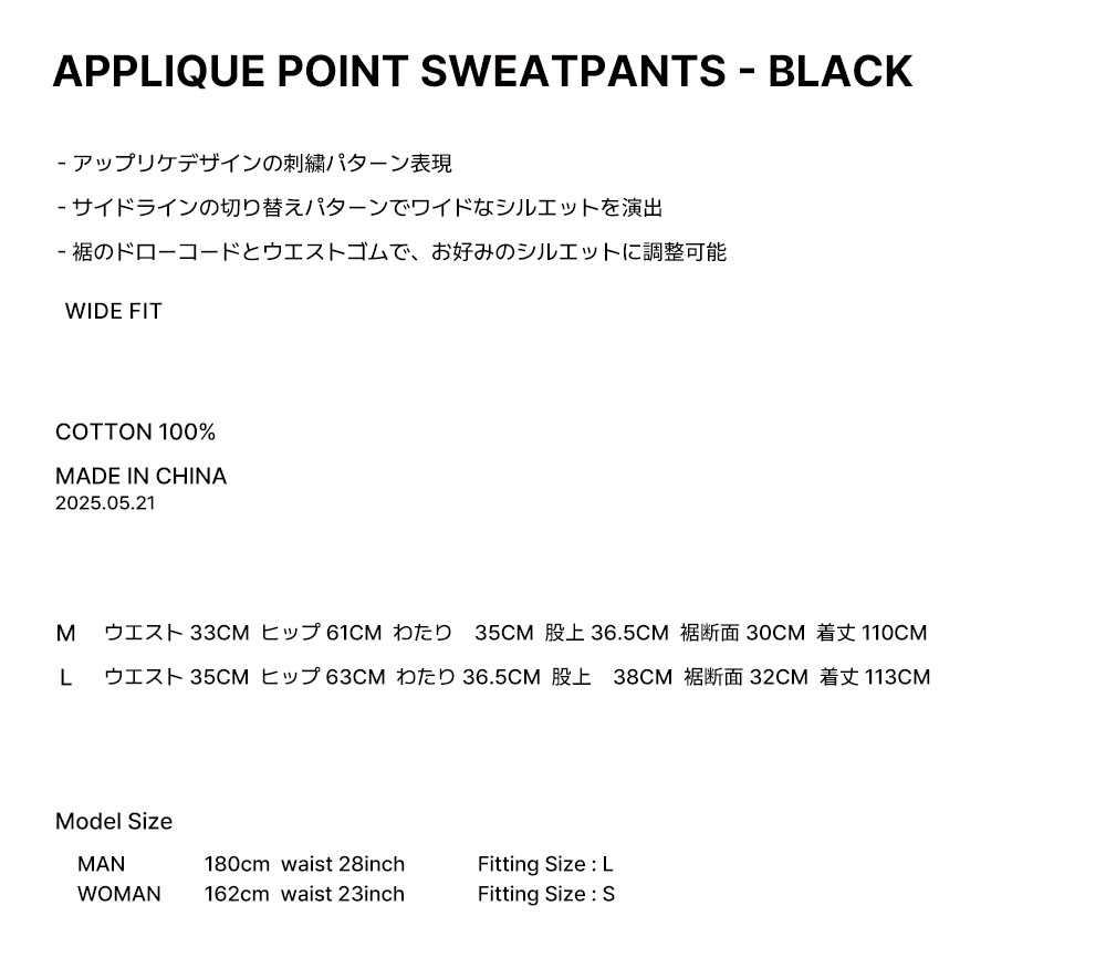 APPLIQUE POINT SWEATPANTS - BLACK