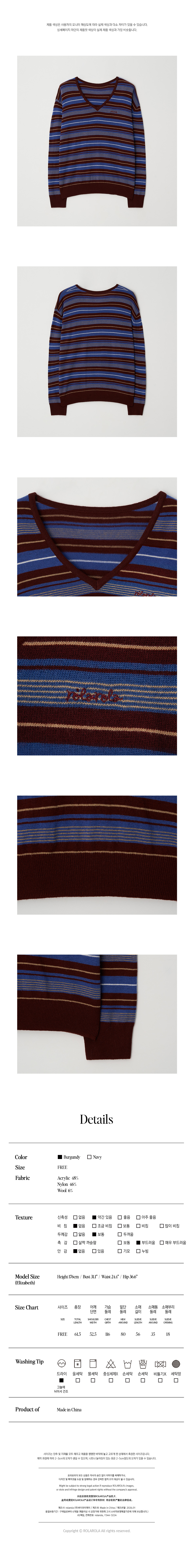 STRIPE V NECK KNIT BURGUNDY