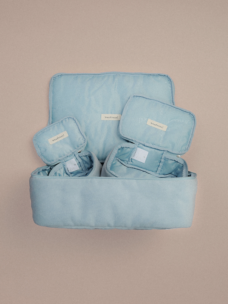 日常から旅行先まで、いつでもスムーズな気分を感じられるロゴドレッセンスケース。ベルベット素材に綿やポリエステルを混ぜ合わせた豊かな質感と贅沢な光沢があり、スモール、ラージ、マキシサイズは新たに発売され、3サイズ展開されています。スモールはコンパクトながら奥行きがあり、化粧品や様々なアイテムを持ち運びやすいサイズです。ラージは基本的な持ち物が多い人や旅行に適した実用的なサイズです。マキシは衣類や靴など日常必需品を収納できるサイズで、旅行先や日常生活にも便利で、取っ手を付けることでより実用的です。4オンスのキルティングと芯を加えて、しっかりとした形を保ち、外部の衝撃を防ぎました。Smoothmoodのクラシックロゴ刺繍はボリュームのあるクリーム色のアクセントで、内側はSmoothmoodのロゴ裏地で仕上げられています。必要な持ち物はすべて居心地の良いポーチに入れてください。Smoothmoodは常に一緒にいてください。ソフトブルーカラー。Small/Large/Maxiサイズのコットン、76%ポリエステル、24%4ozのキルティング、Smoothmoodロゴ刺繍、Smoothmoodロゴの裏地*この製品はセットではなくサイズ別に販売されています。お好きなサイズを選んでください。