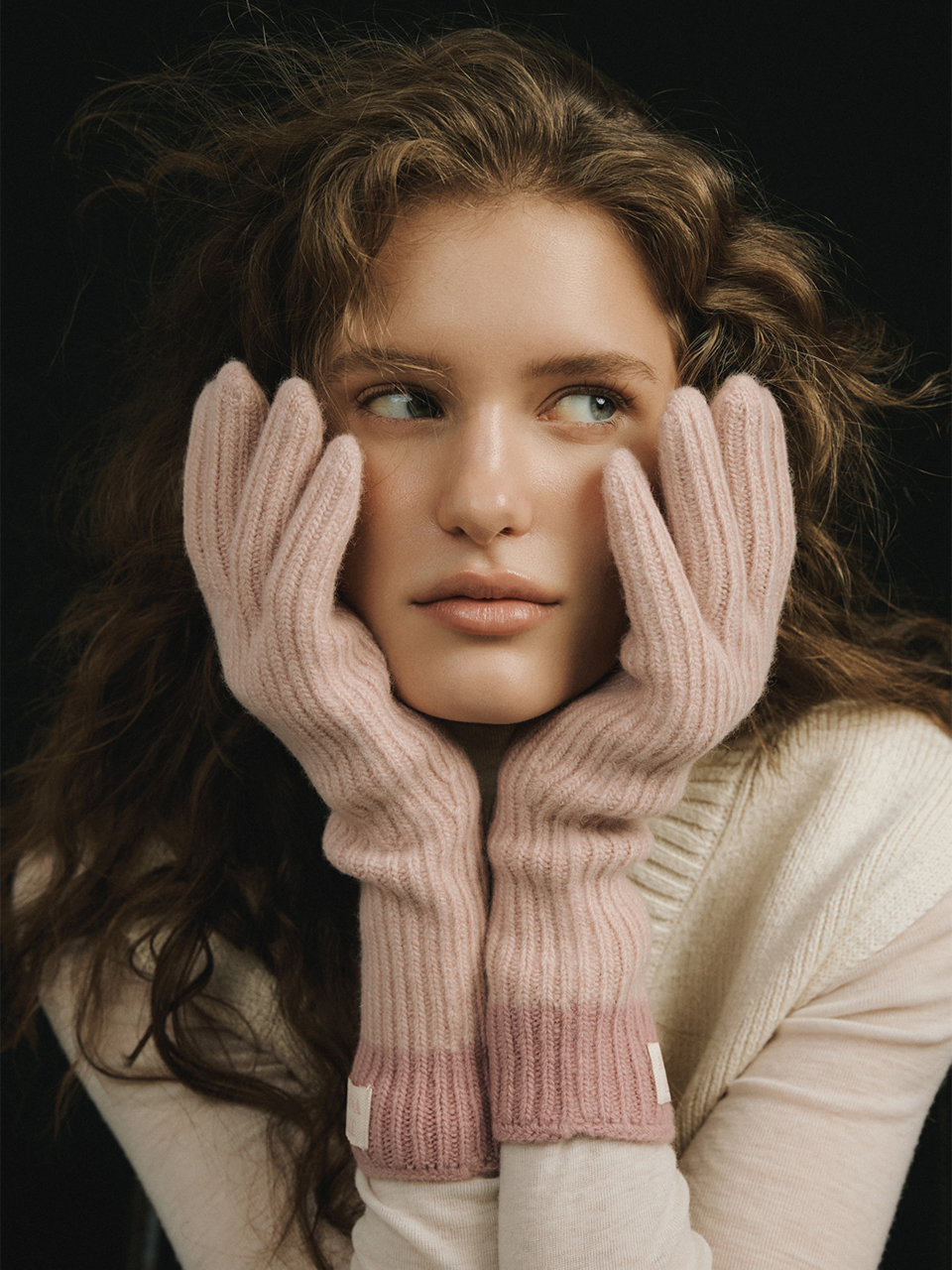 Cashmere Blend Ribbed Knit Gloves - Soft Pink/Rose