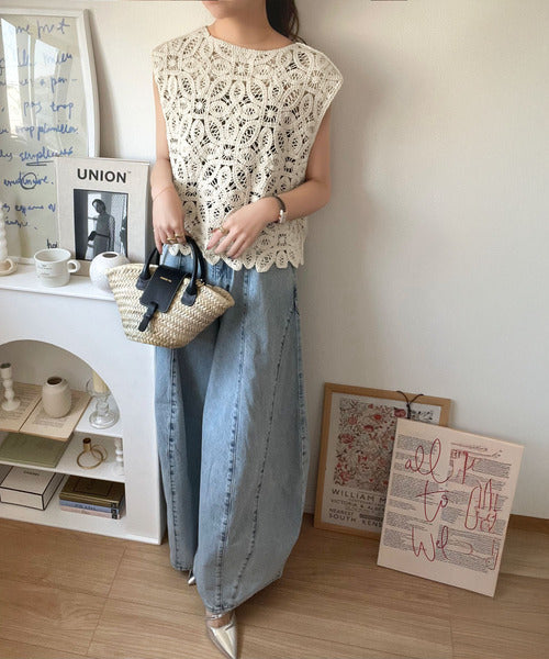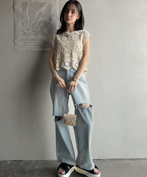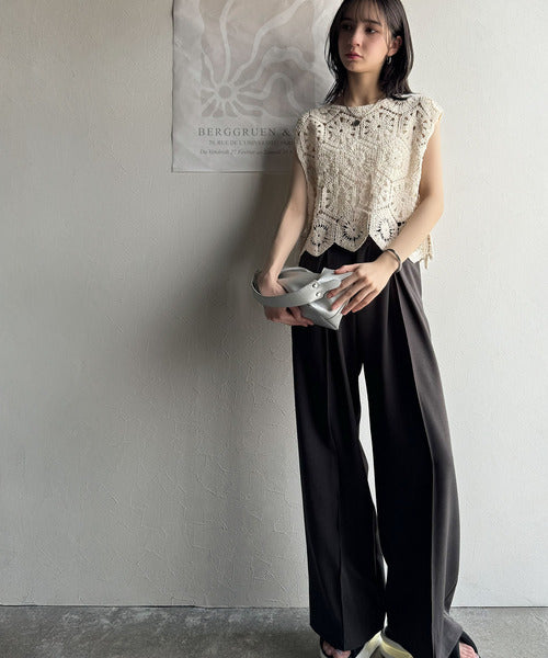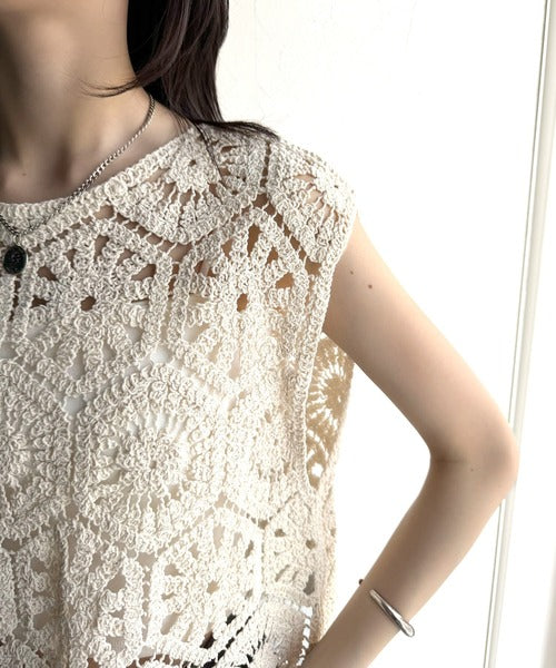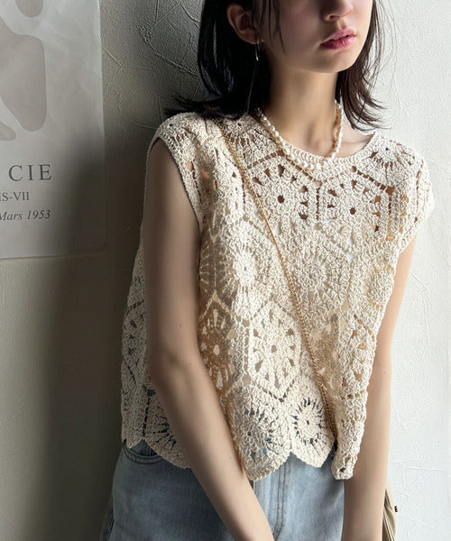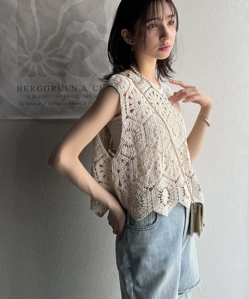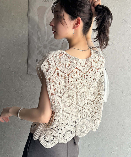 トレンドの鍵編みが、モードな魅力を演出!
