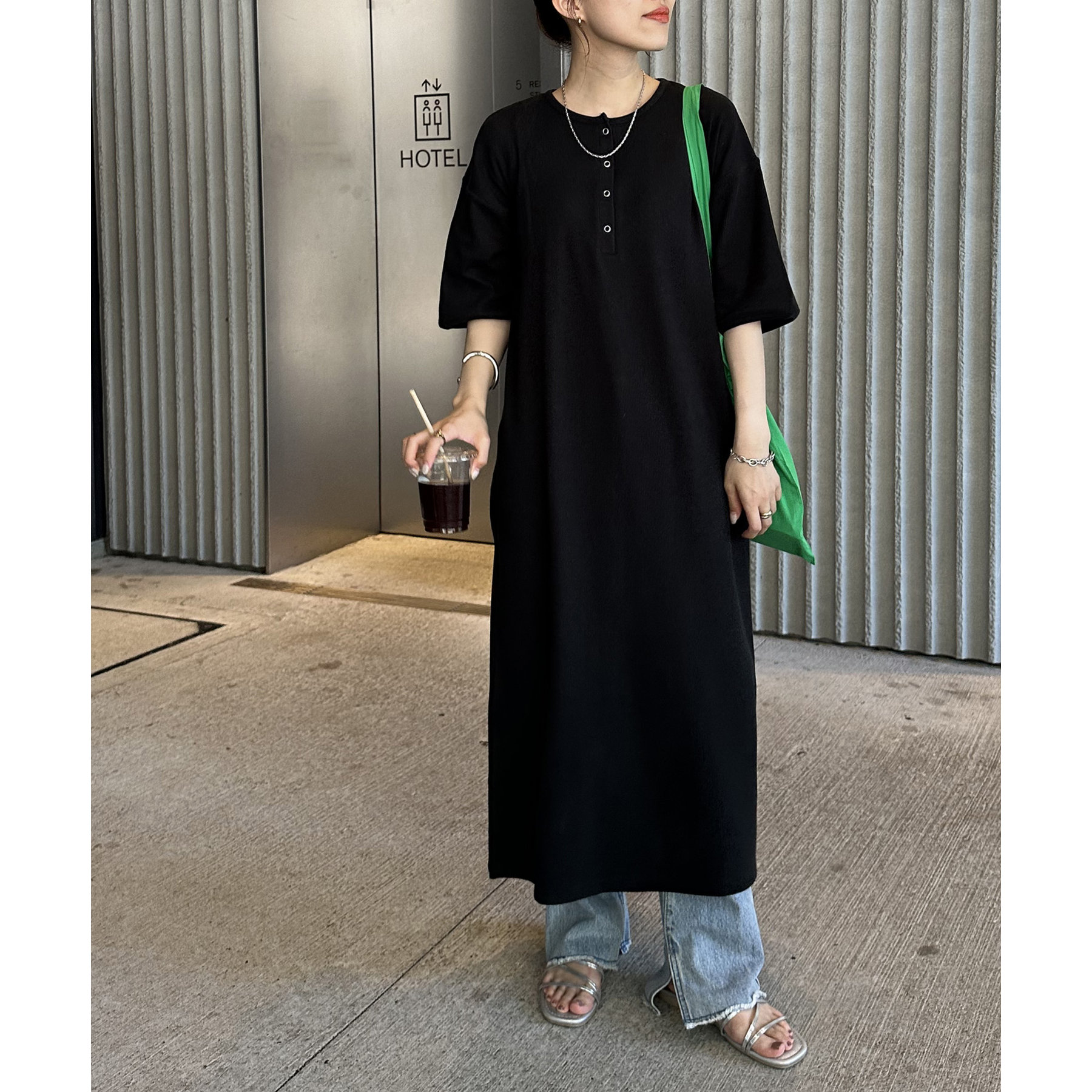 ・伸縮性のある柔らかい生地で、さらっと快適に着られるロングワンピース