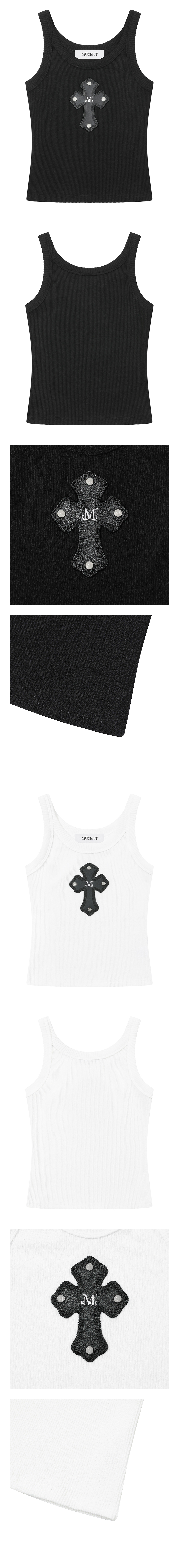 THEO CROSS LEATHER PATCH SLEEVELESS (2Color)