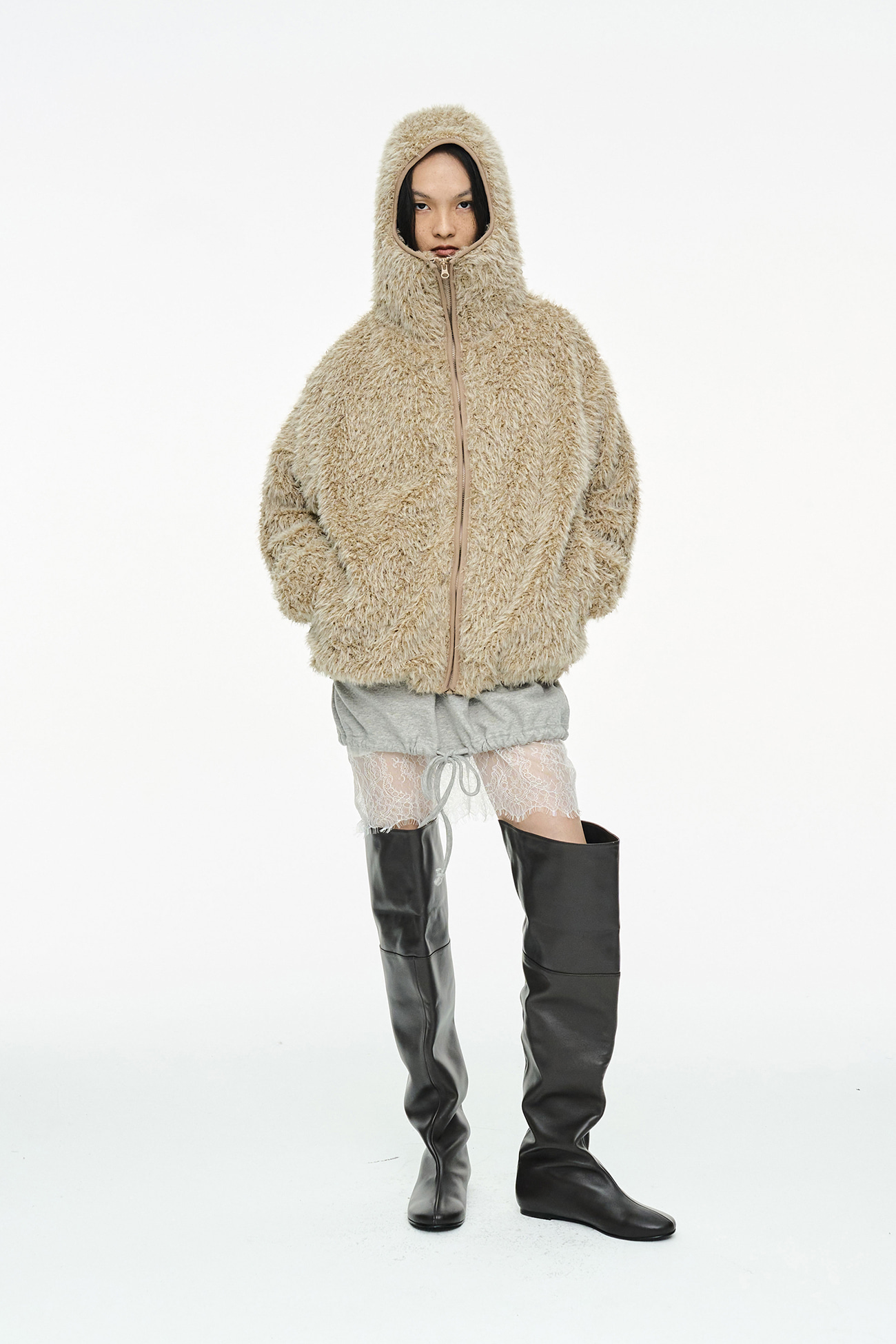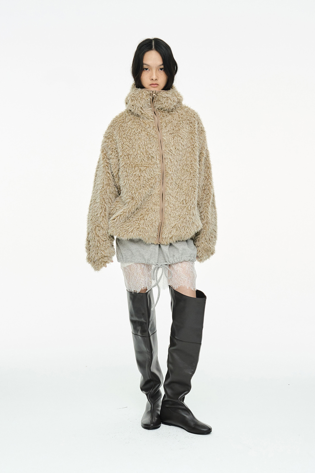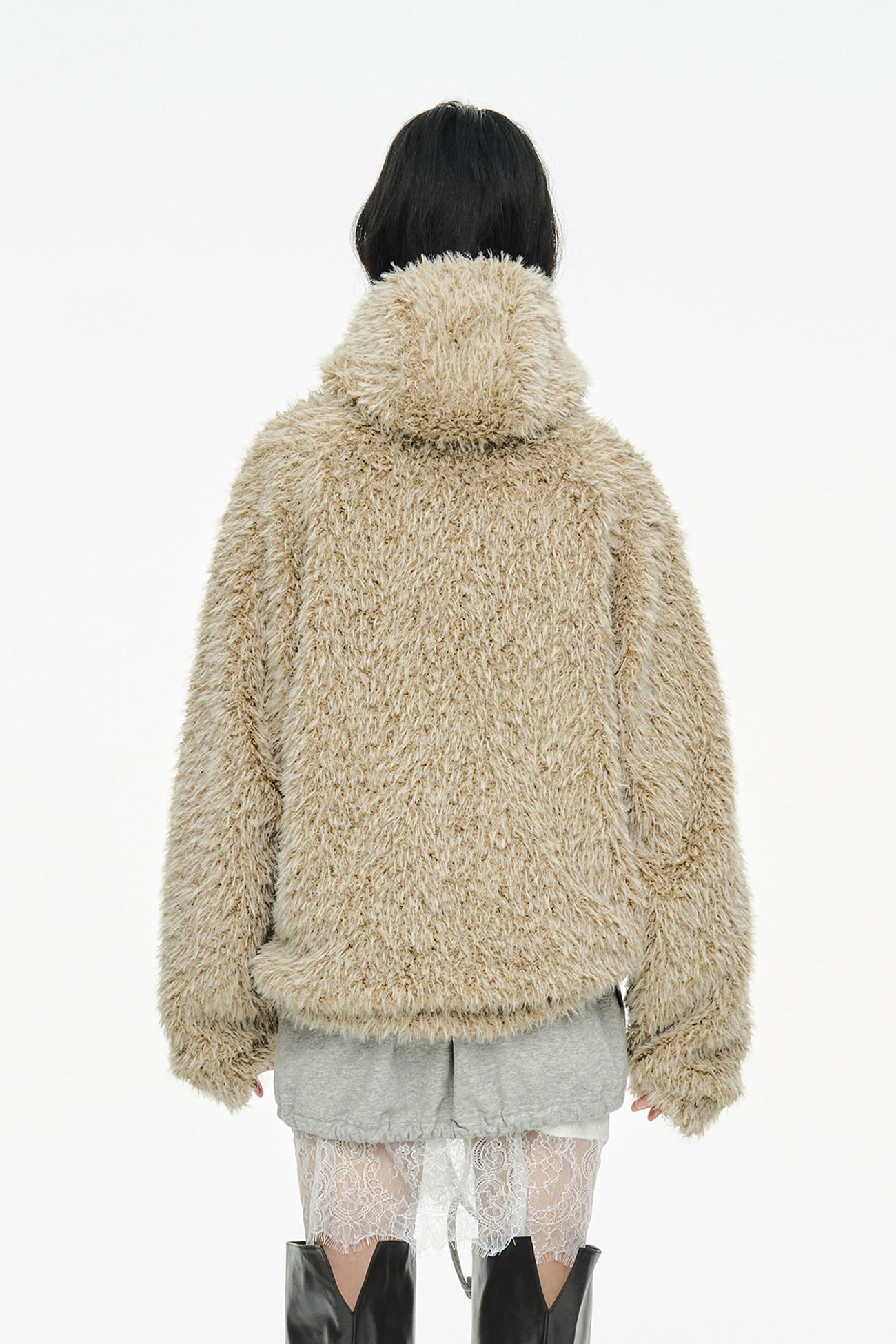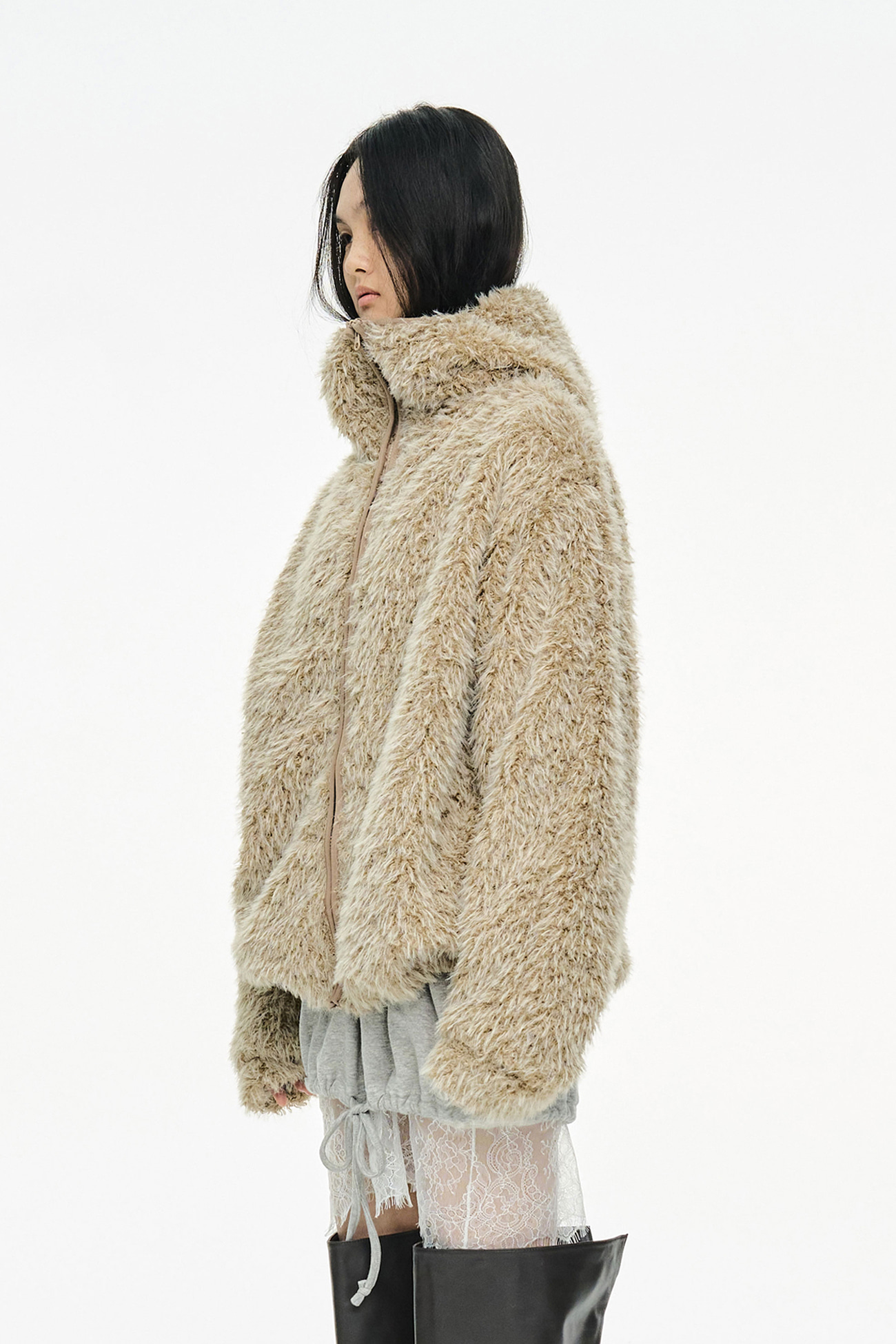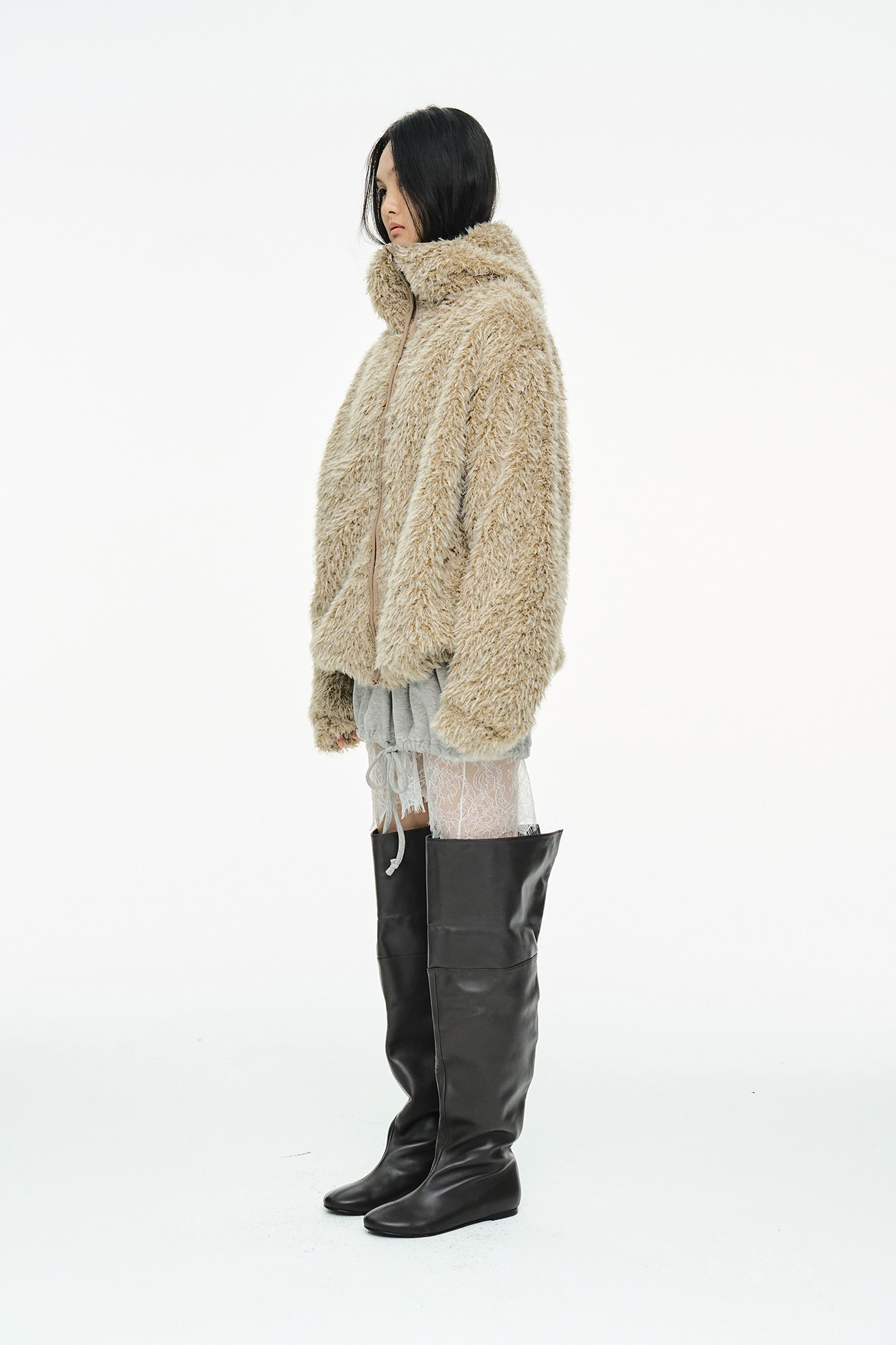 HAIRY BALACLAVA ZIP UP / BEIGE
