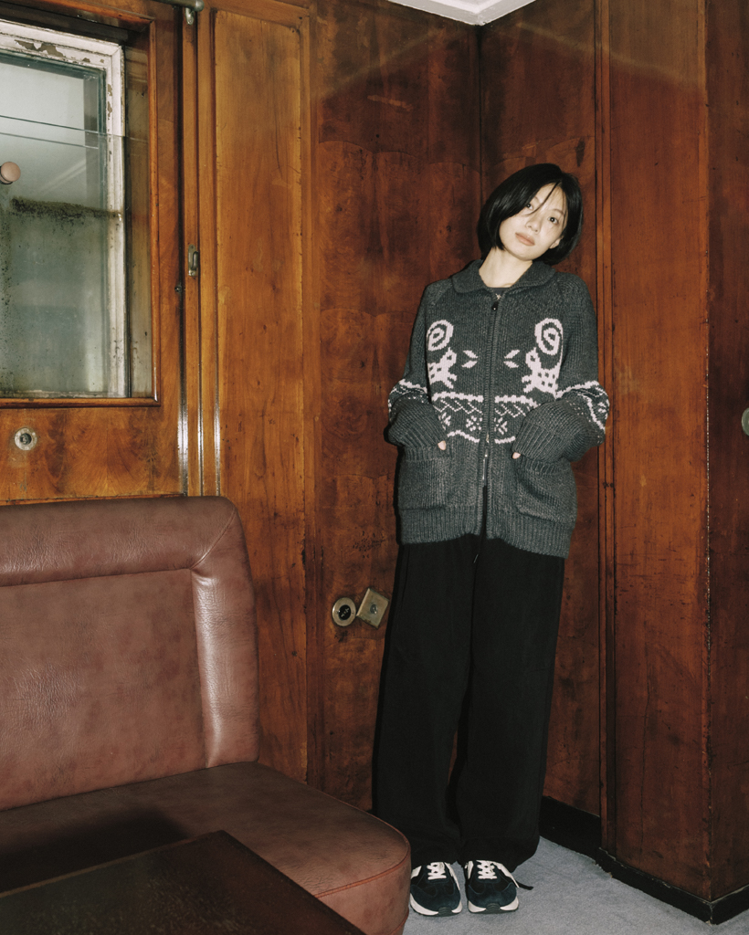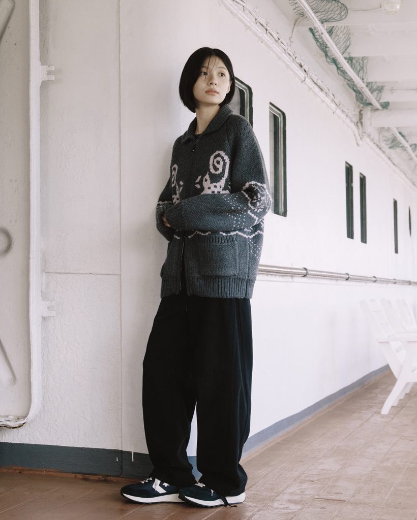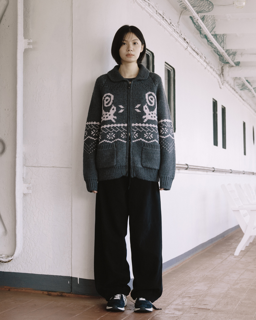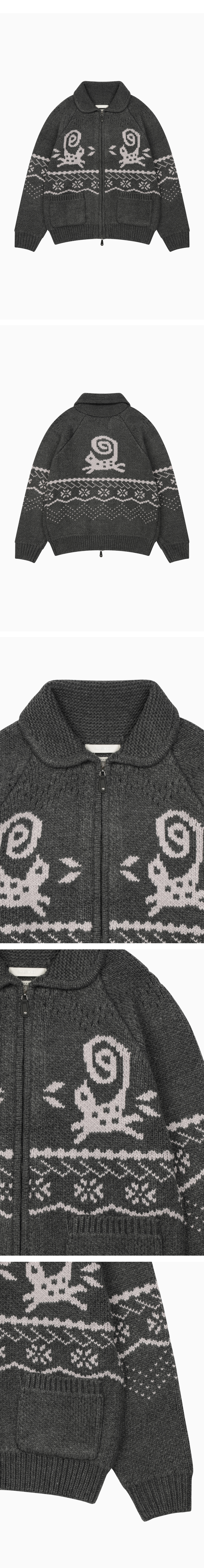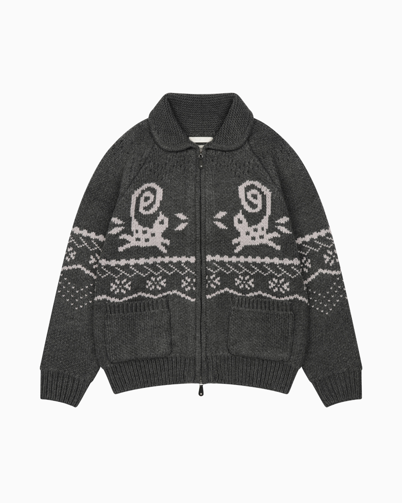 CAT GRAPHIC COWICHAN ZIP-UP, CHARCOAL
