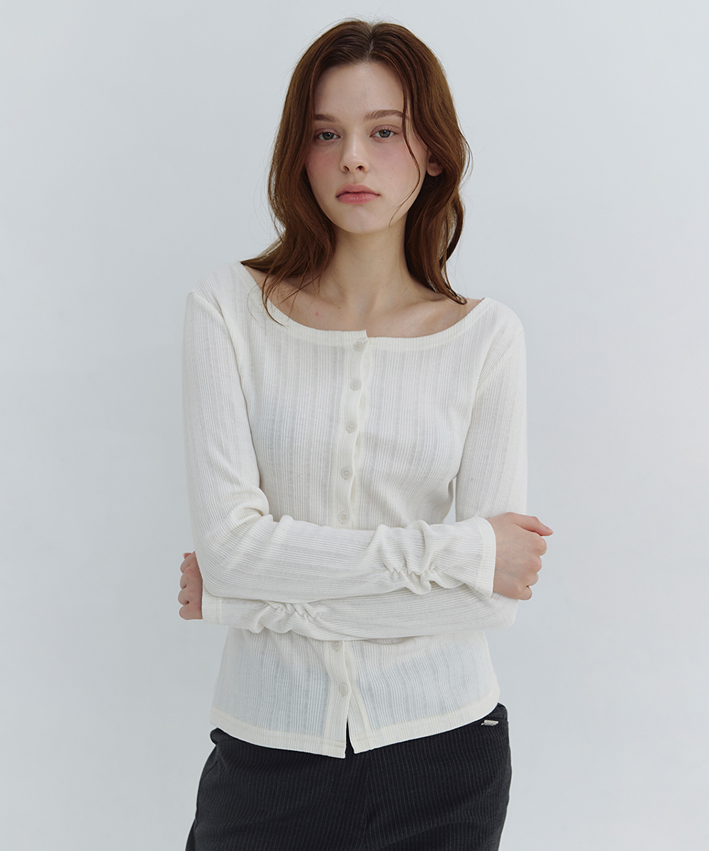 クラシックデイリームードで着用可能なカーディガンです。耐久性とテンション感に優れたゴルジダイマル生地使用でシルエットを補完してくれる快適なフィット感が特徴です。細かいキビ感にスリムなフィットで製作され、インナー用と単独で両方活用してご覧いただけます。ワイドなラウンドネックで突然見えず、鎖骨ラインが引き立つように着用可能です。袖にはシグネチャーシャーリングプリーツを加え、余裕のあるムードをポイントとして追加してくれました。ベーシックなデザインでデイリールックとして活用してみることを強くお勧めします。裏ネック中心のペンダント飾りを加えてクオリティを高めてくれました。