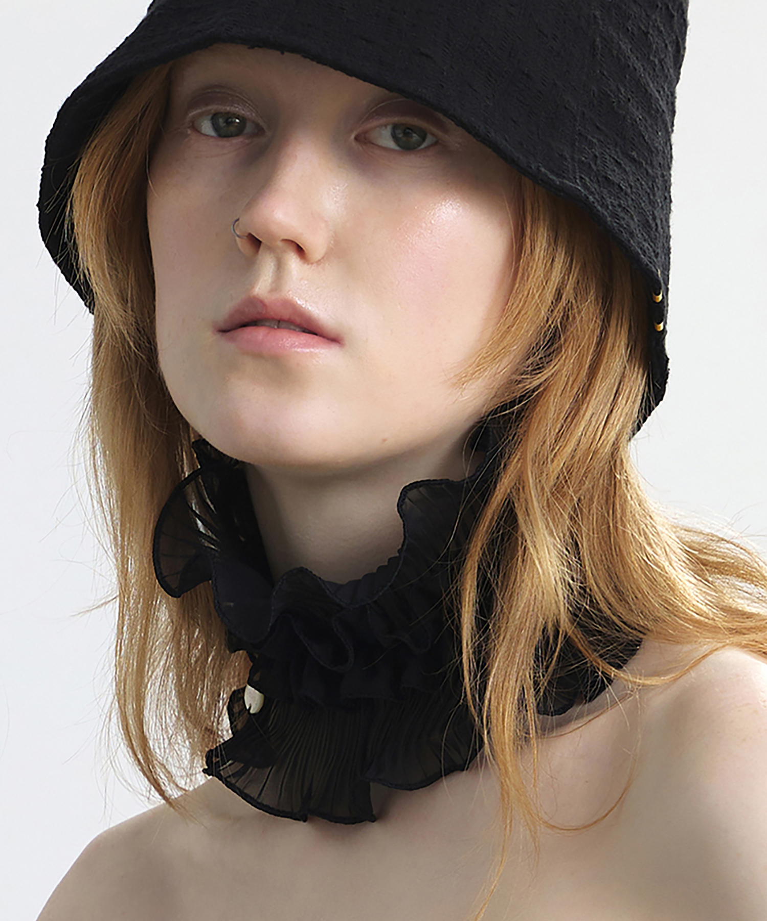 NECK TUBE / DOUBLE PLEATED LACE / BLACK(夏ノ首ノアクセサリー)