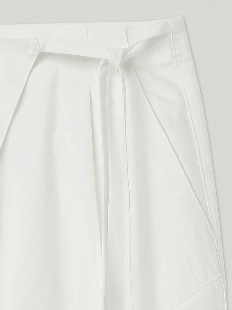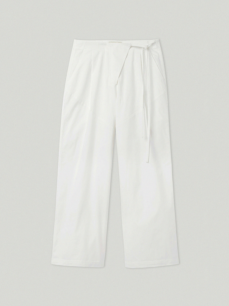 ワイドストレートシルエットㆍウエストストラップデザインㆍ斜め切替ディテール