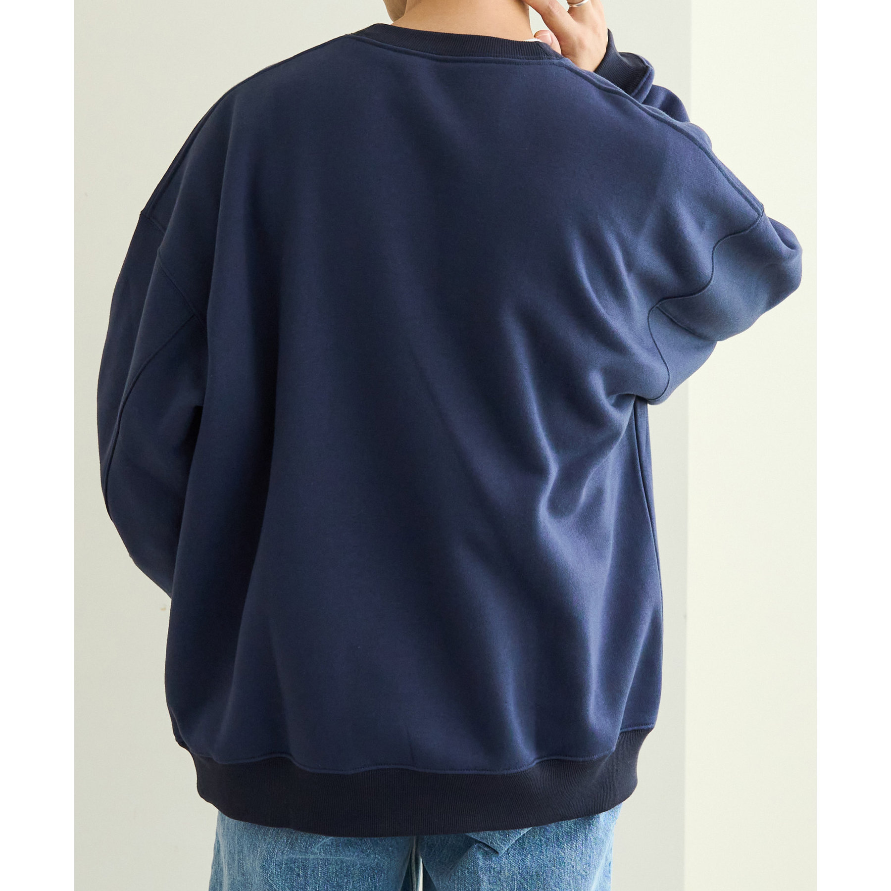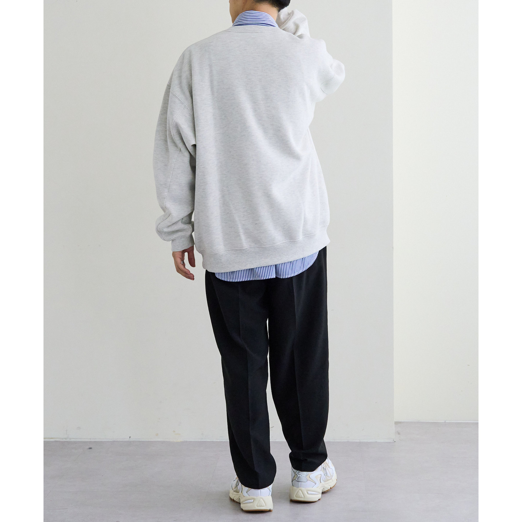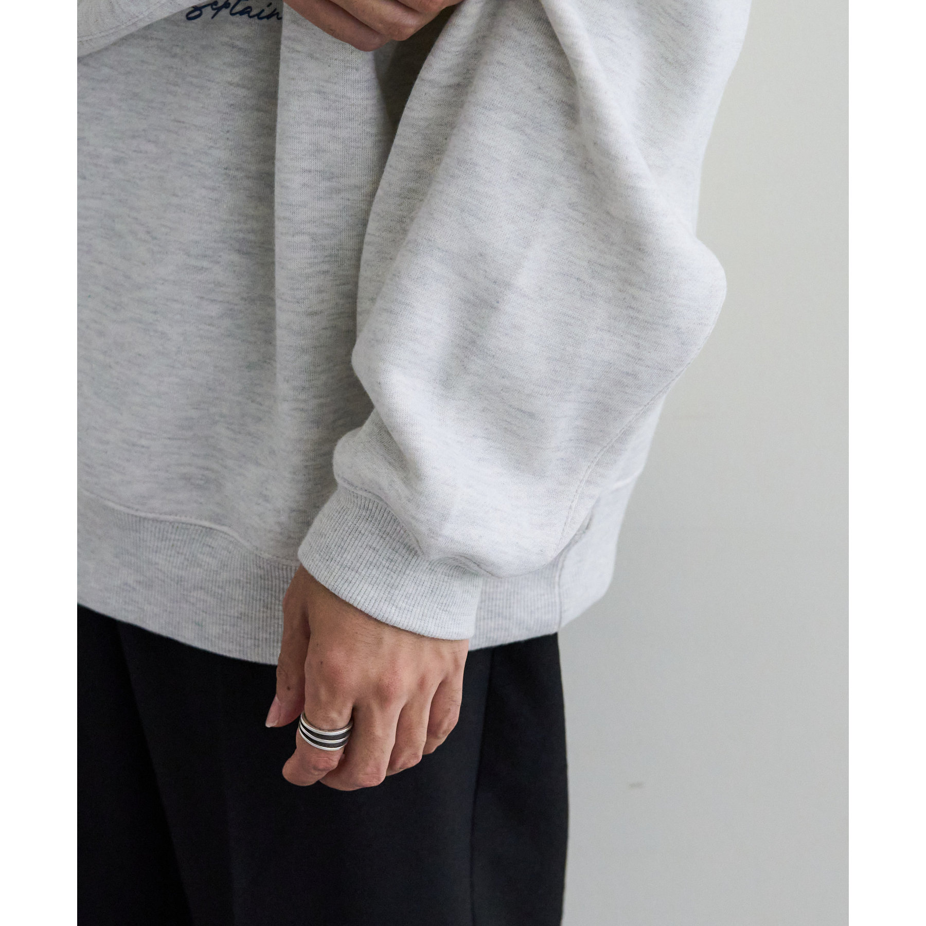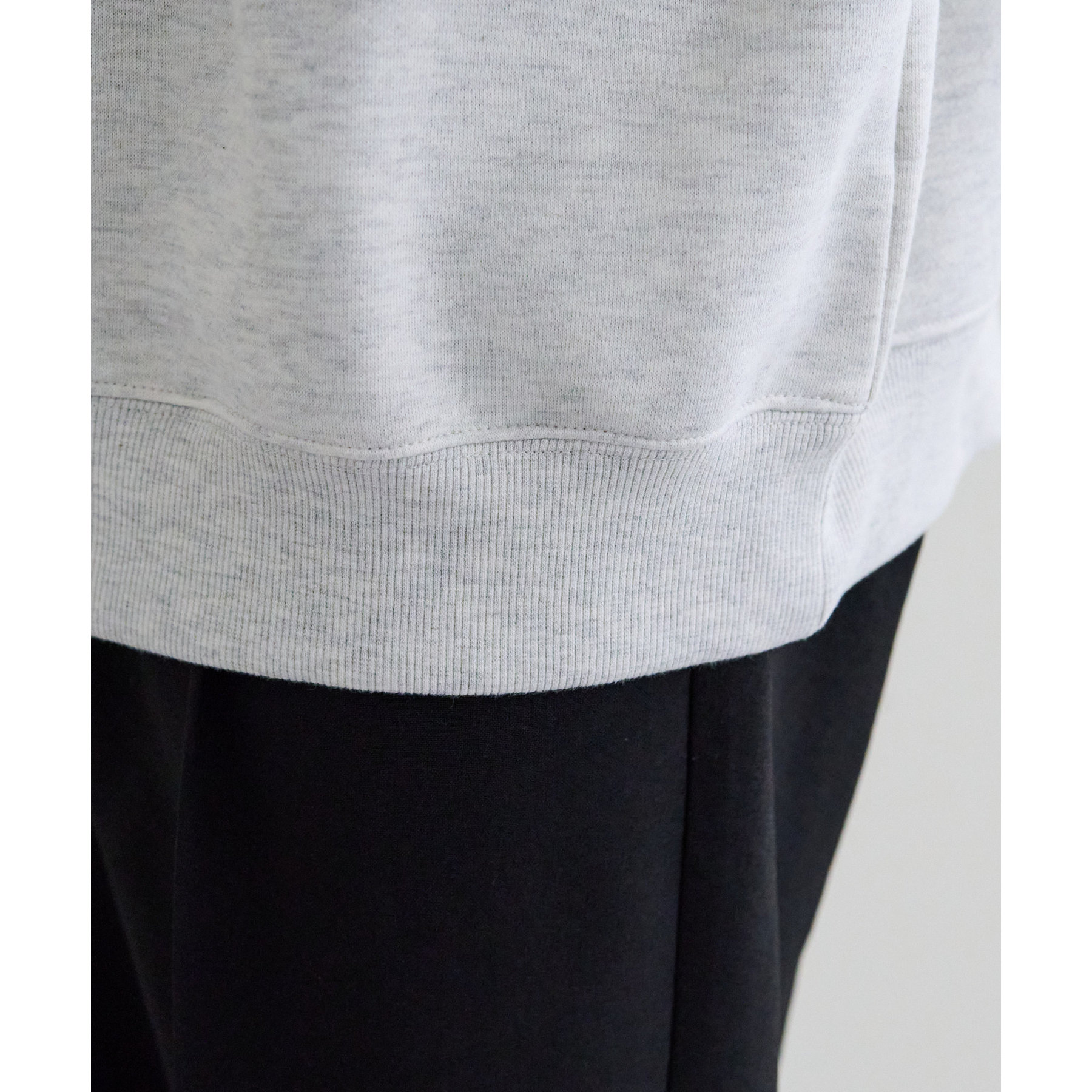 ヘヴィウェイトで柔らかなスウェット生地は一枚でも暖かい裏起毛仕様に、ラインを拾いにくいたっぽりとしたスリーブや、ヒップ辺りまであるゆるっとしたビッグシルエットは男女兼用のユニセックスサイズに仕上げました。
