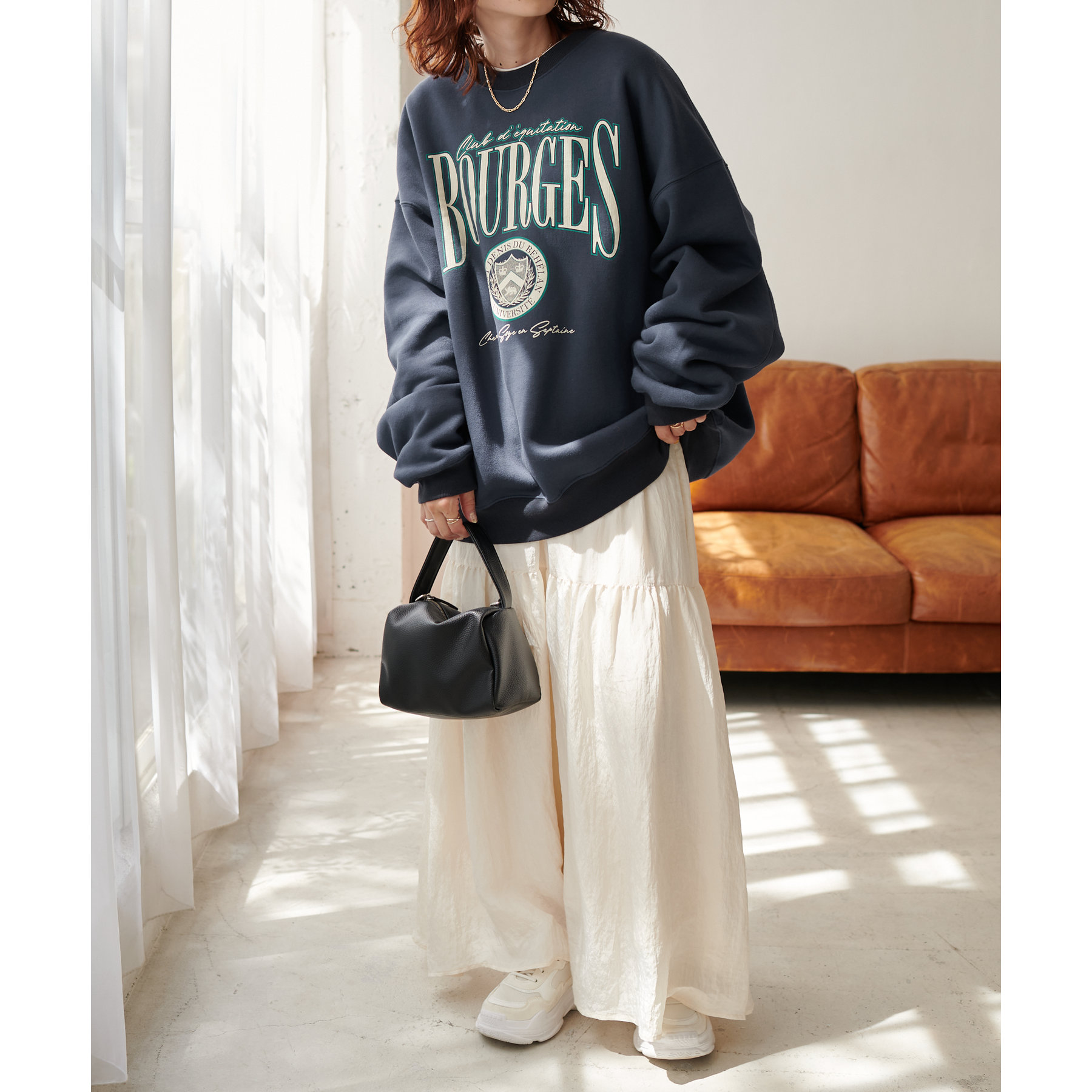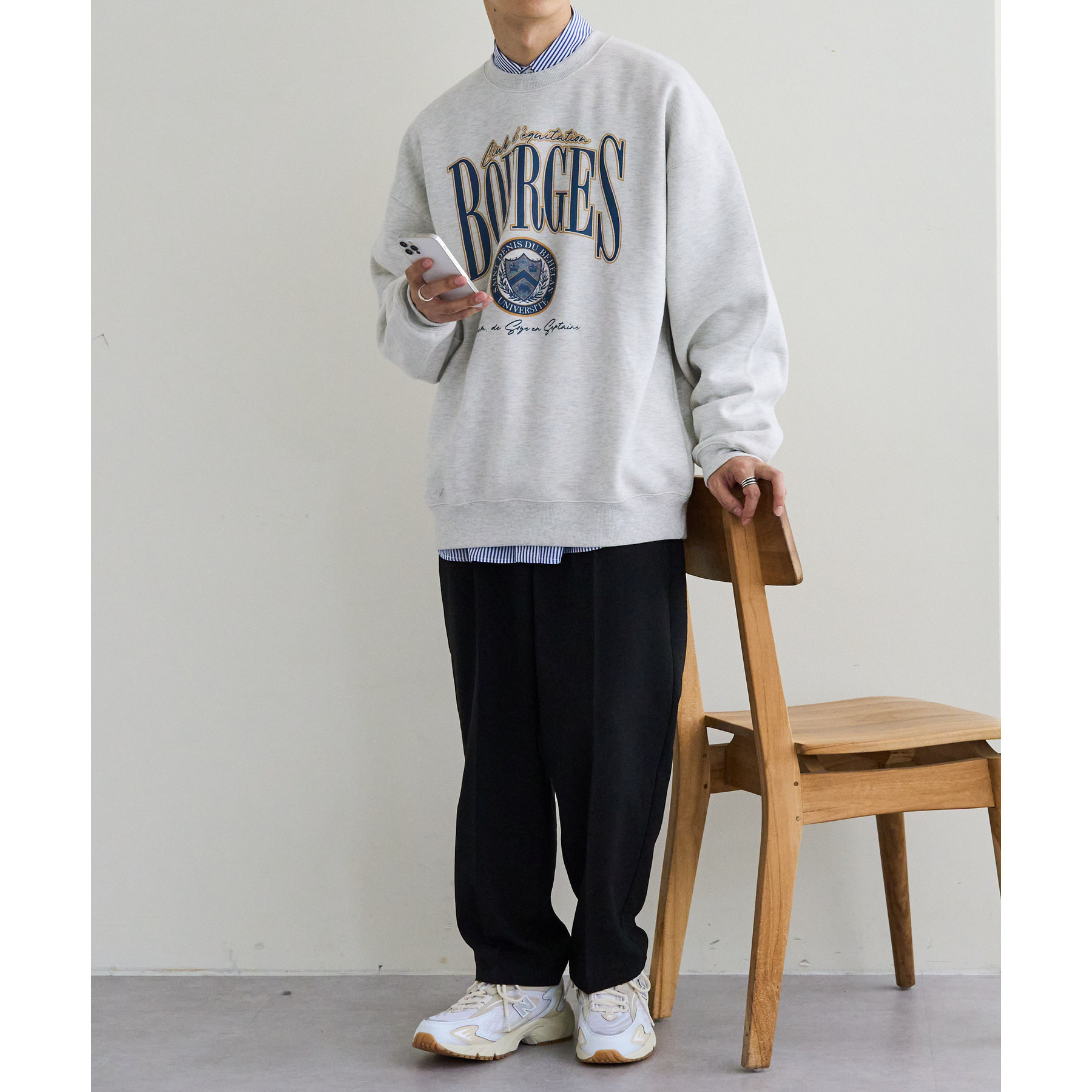 合わせるアイテムを選ばず定番のコーディネートにこなれたカジュアルダウンをプラスしてくれる、人気のカレッジロゴスウェットシャツ。