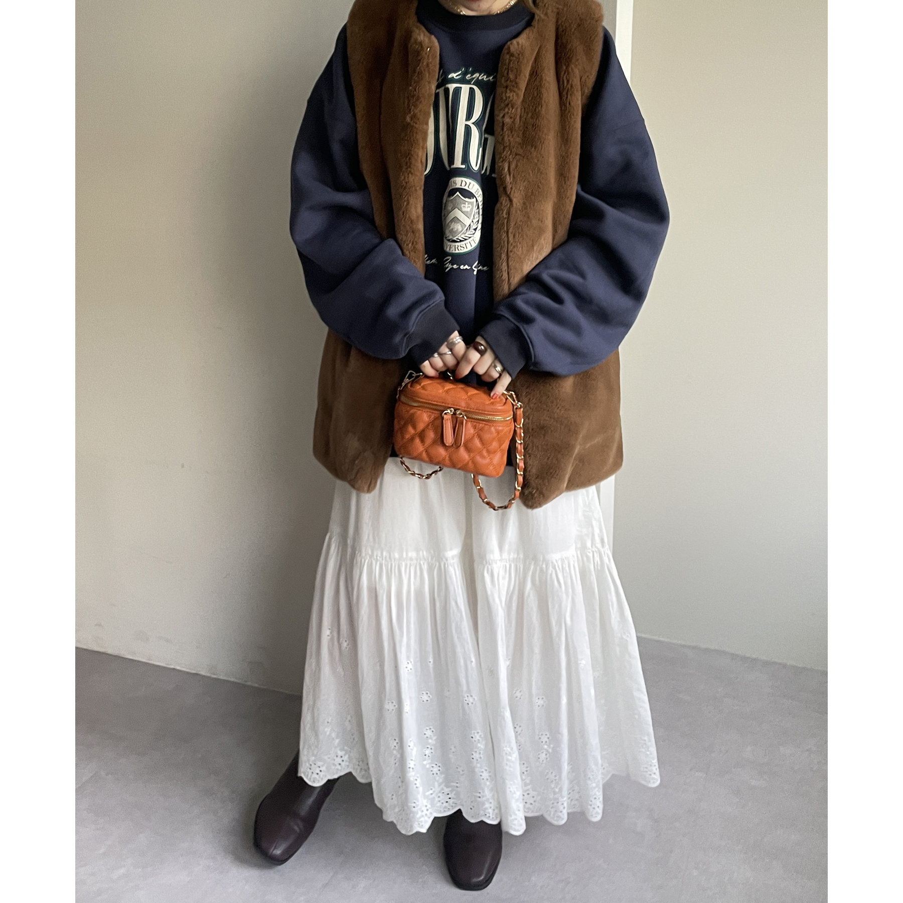 レディースは女性らしくロングスカートを、パンツは合わせるアイテムを選ばず着回しが可能ですが、トレンドのカラーアイテムや季節らしいシーズンアイテムを取り入れるのがおすすめです。