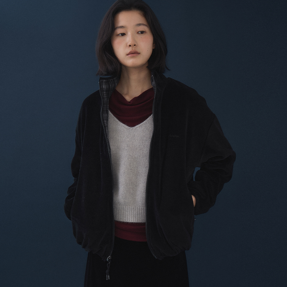 [Influencer pick] BELL CHECK REVERSIBLE ZIP-UP (CHARCOAL BLACK)