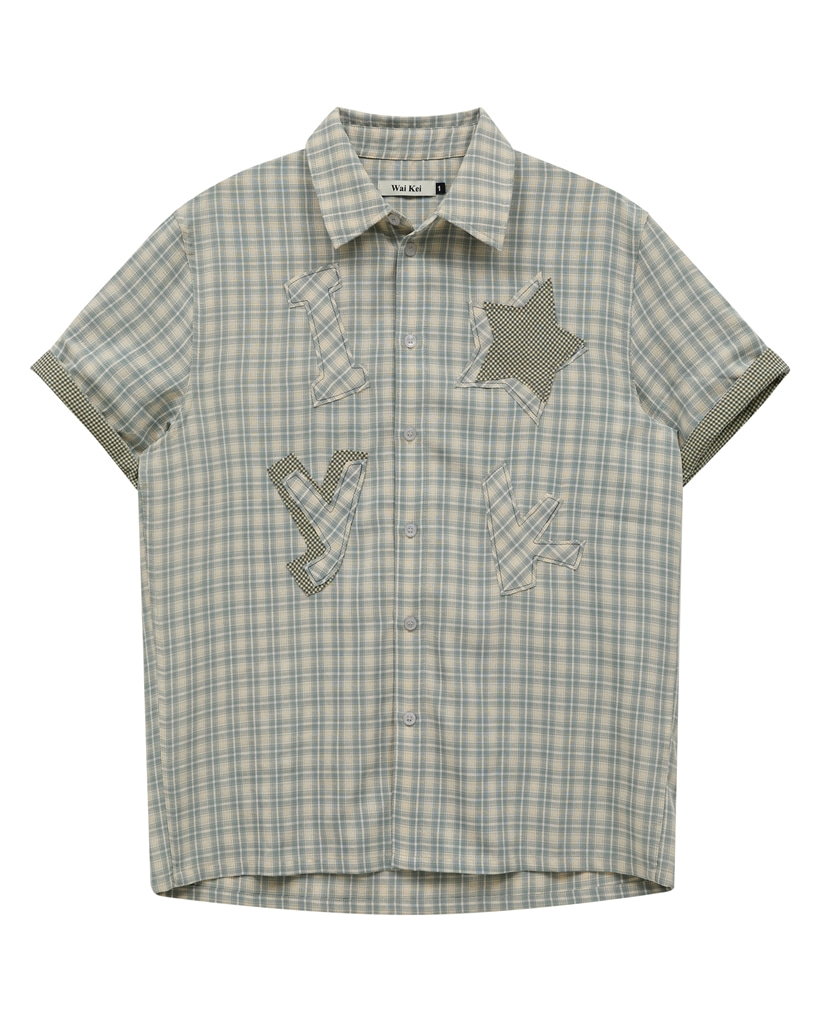 [K-POPアイドル着用] YK Star Applique Check Half Sleeve Shirt MINT